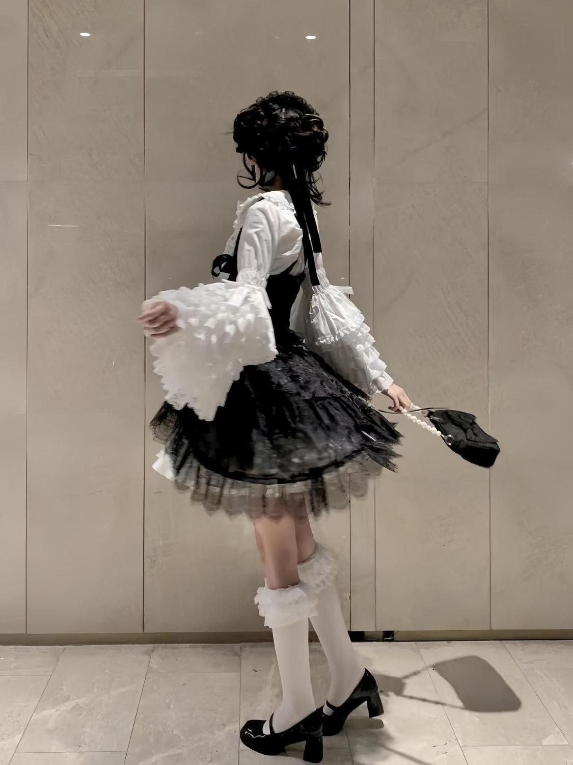 Lace doll-like original Lolita style shirt with princess sleeves, suitable for layering as an inner layer, long-sleeved and versatile Lolita style.