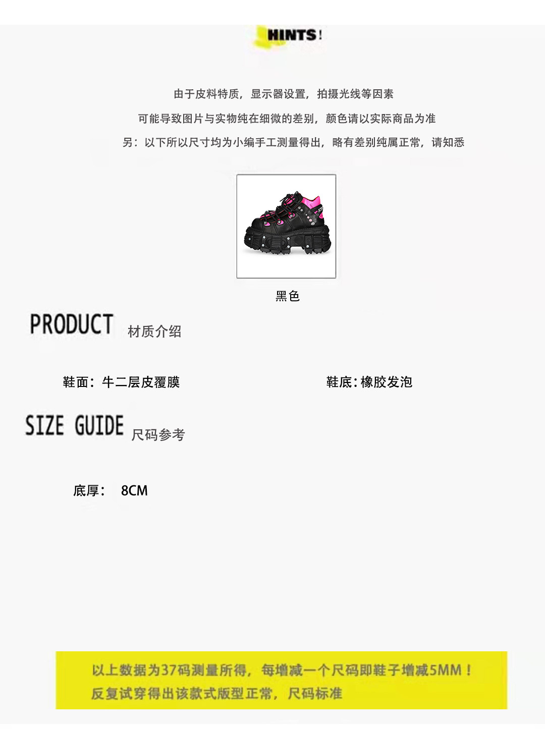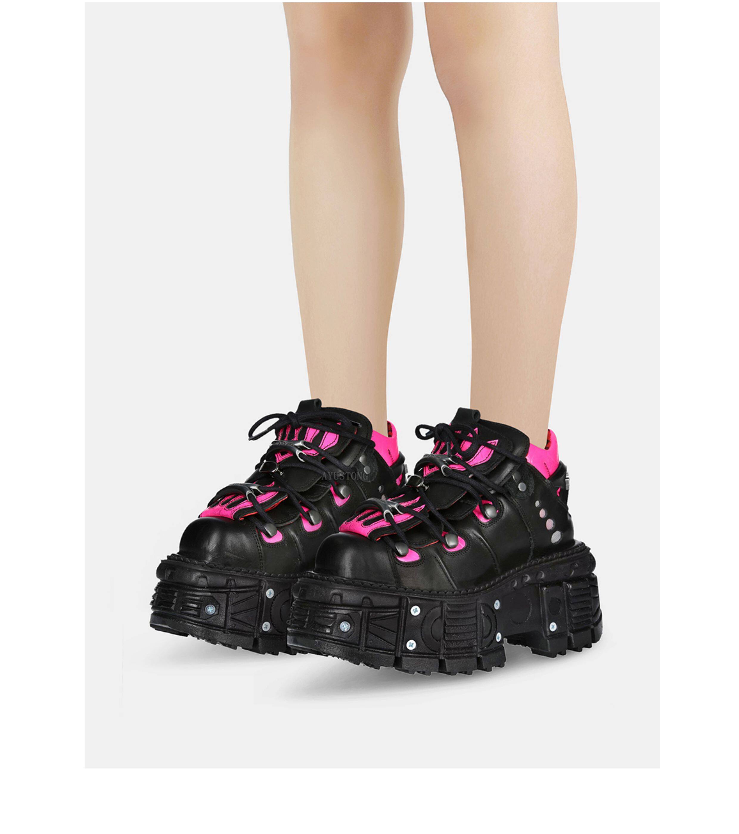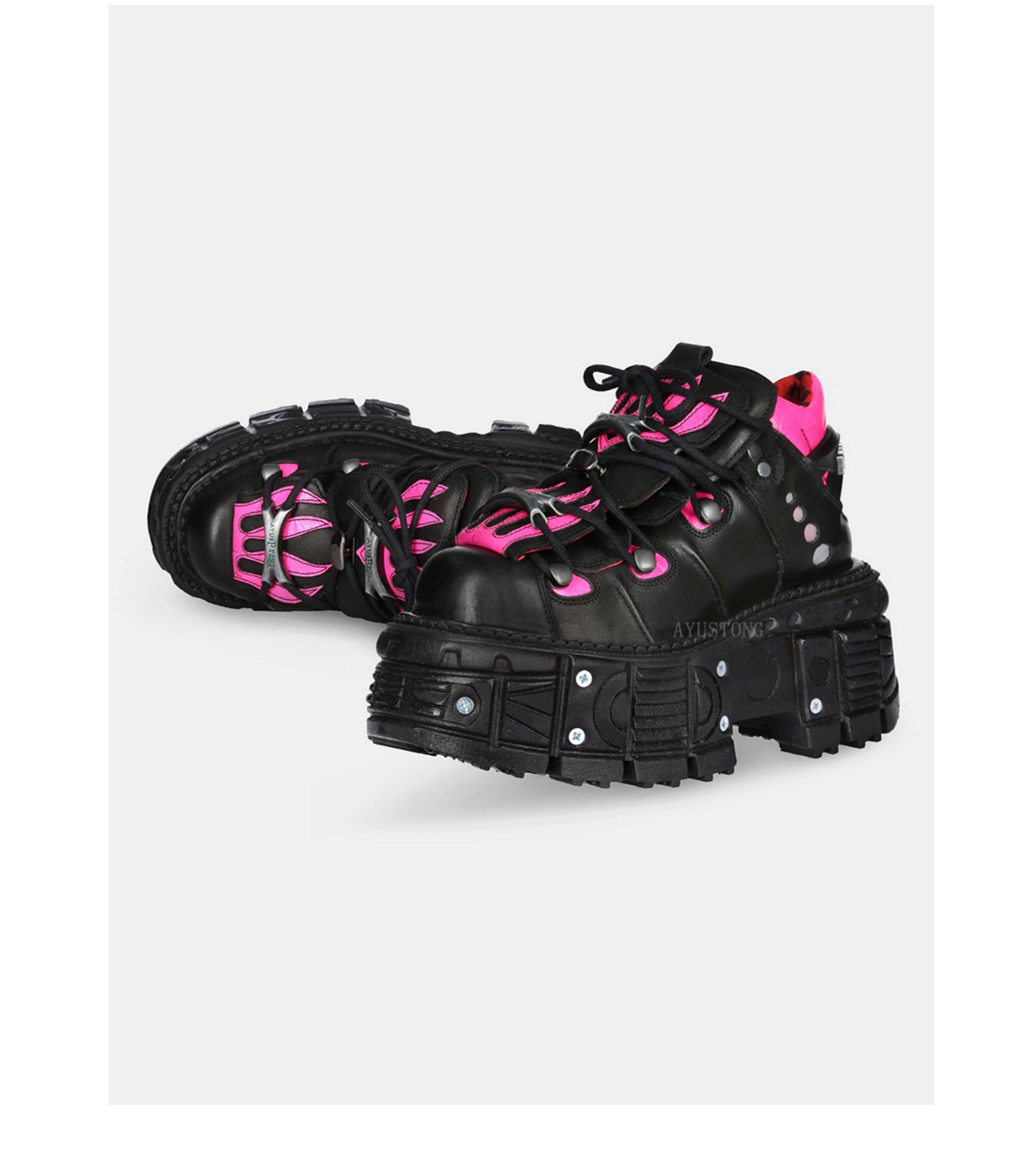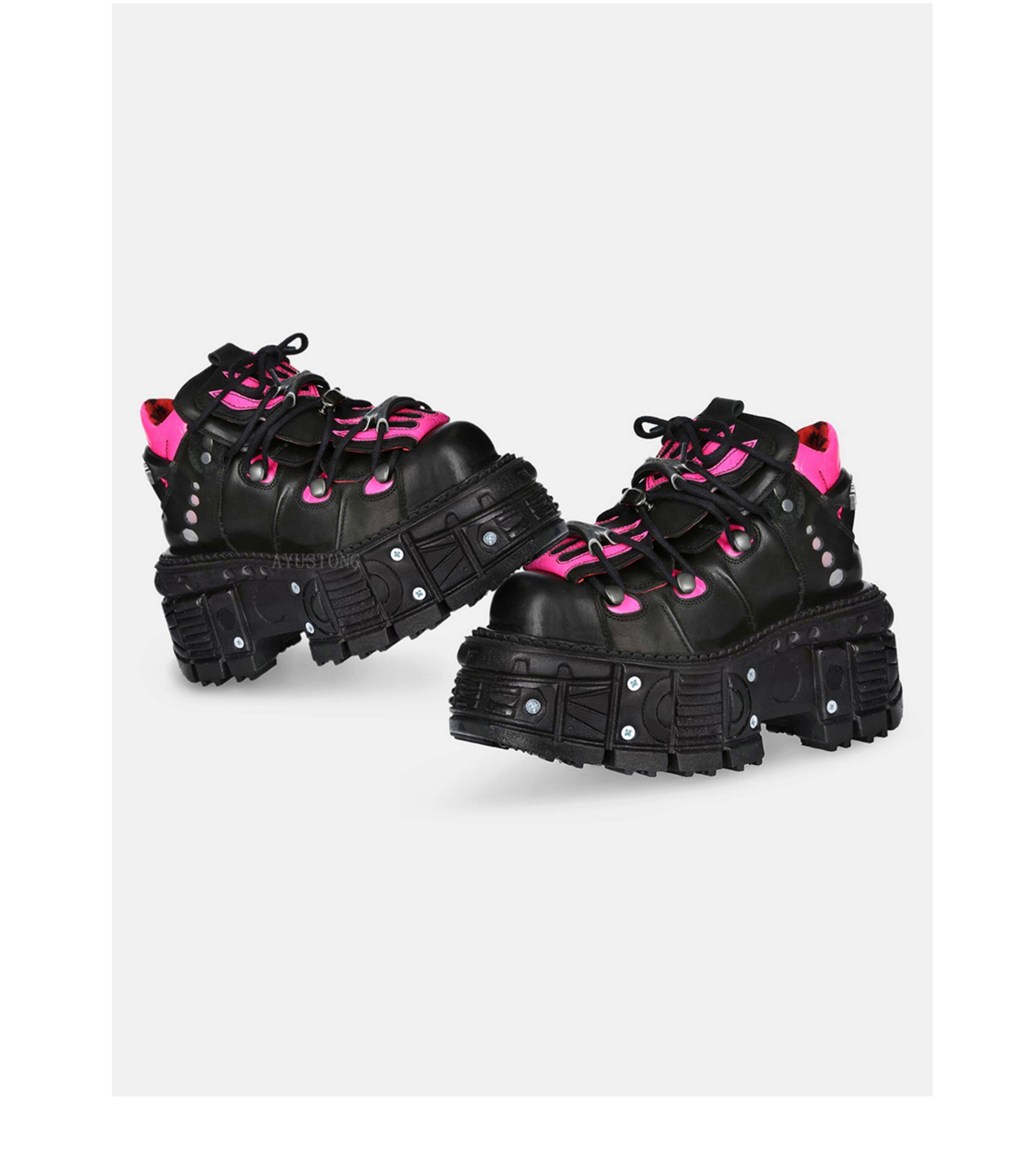 Spanish streetwear brand, metal punk style, high-top platform shoes, niche dark flame Y2K unisex height-increasing leather shoes