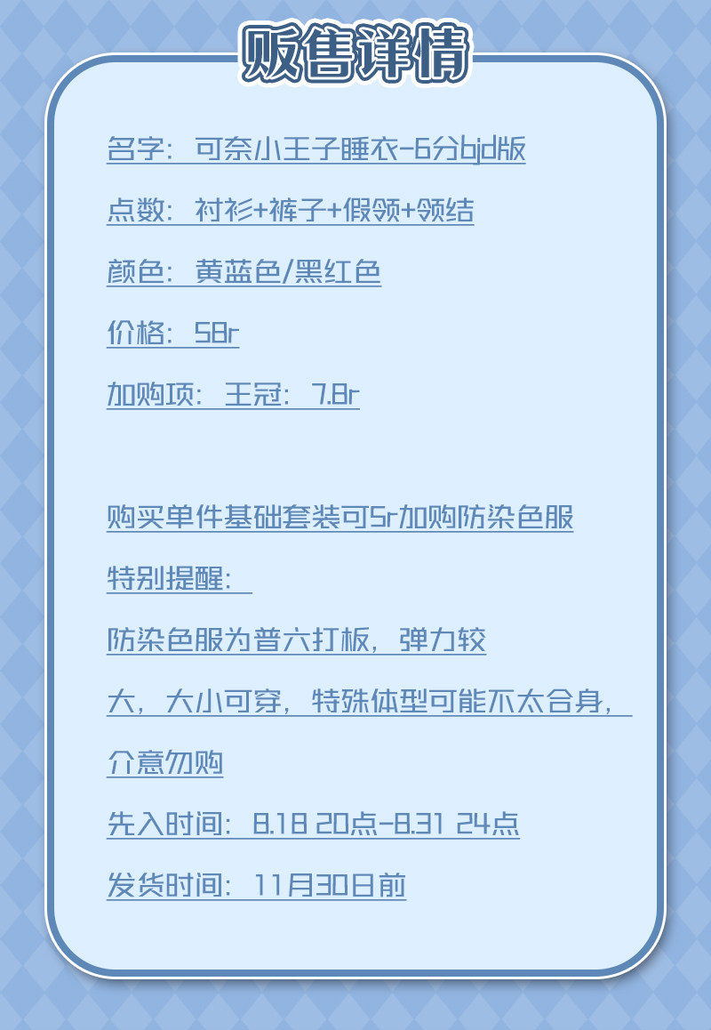 可奈造物小王子睡衣六分bjd版套装无属性可爱华丽风娃衣换装玩具 [Original Page Link]
