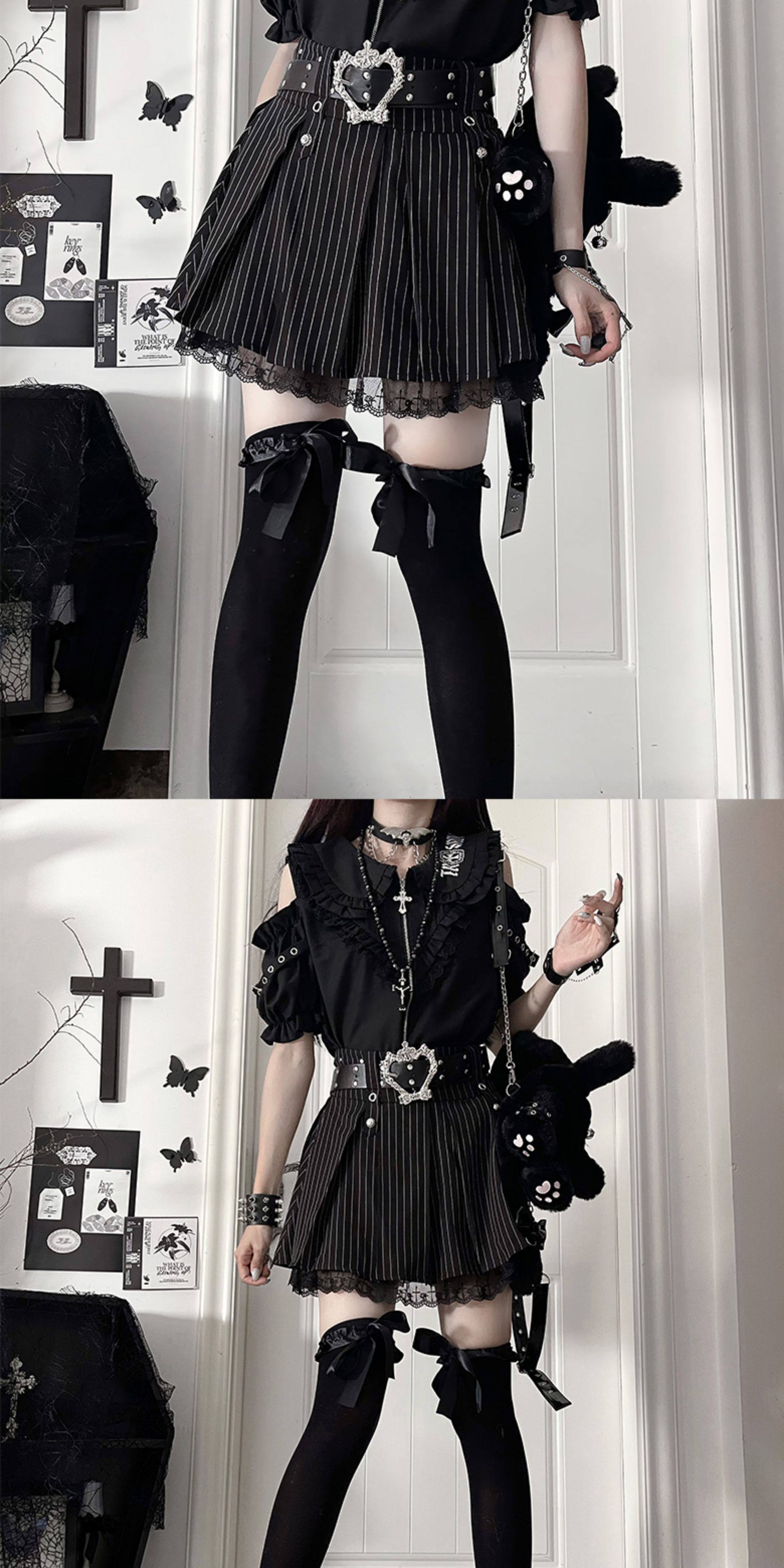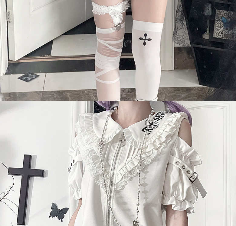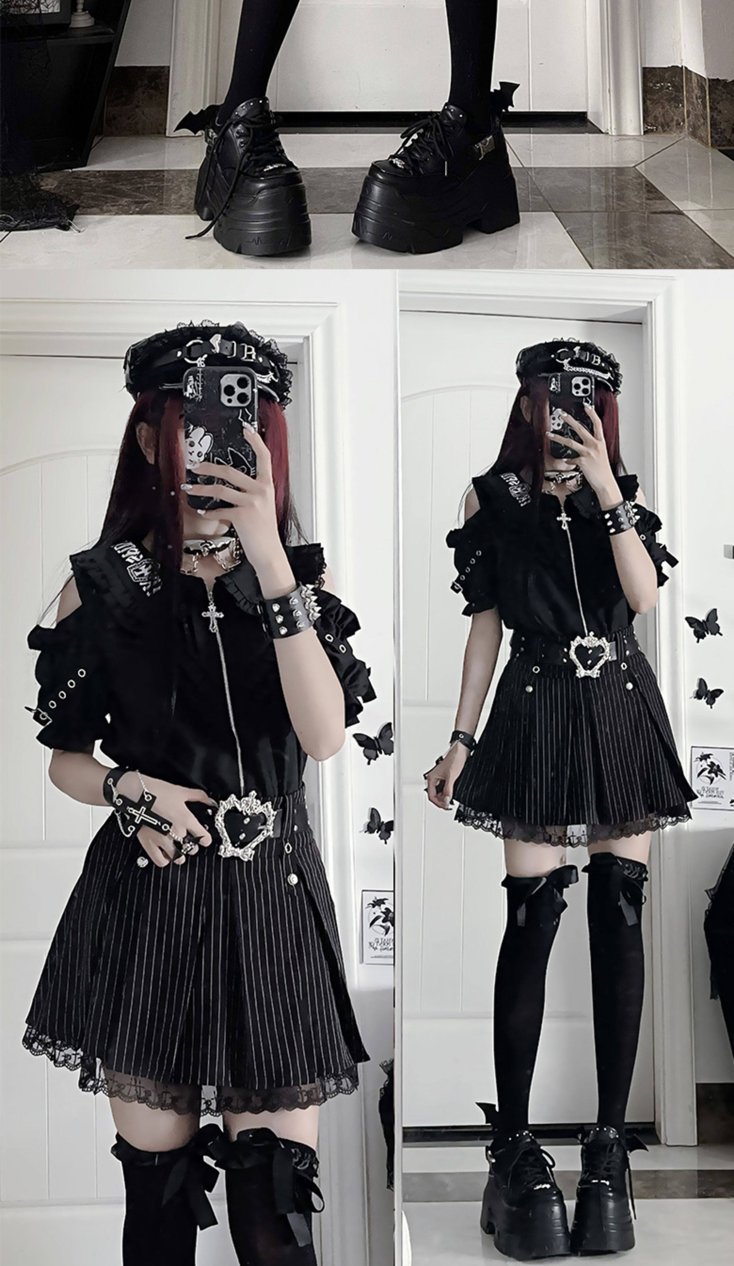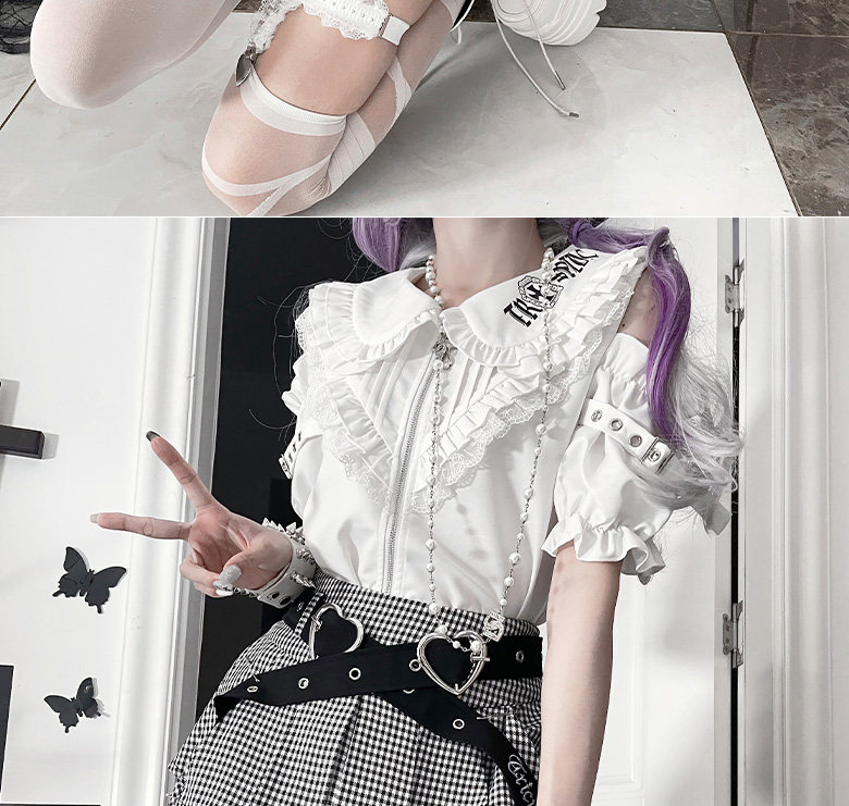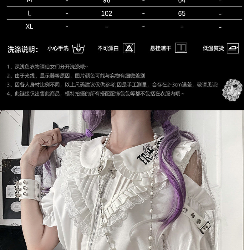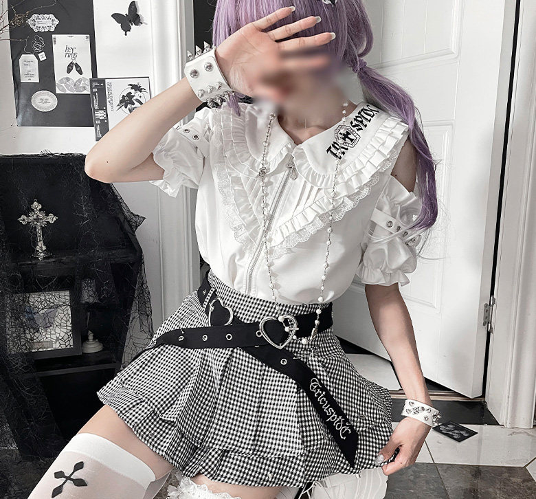 *苦乐溺线*柘枝引TC原创印花轻亚百搭暗黑拉链露肩短袖衬衫 [Original Page Link]