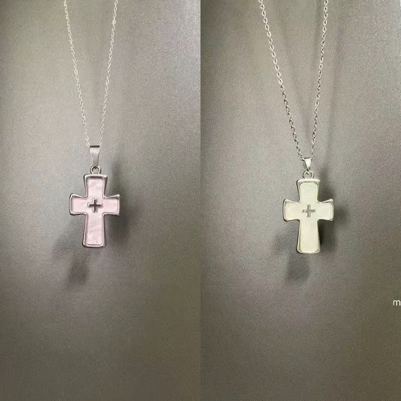 Vintage Maiden's Prayer necklace, pink sweet and cool cross pendant necklace, clavicle chain.