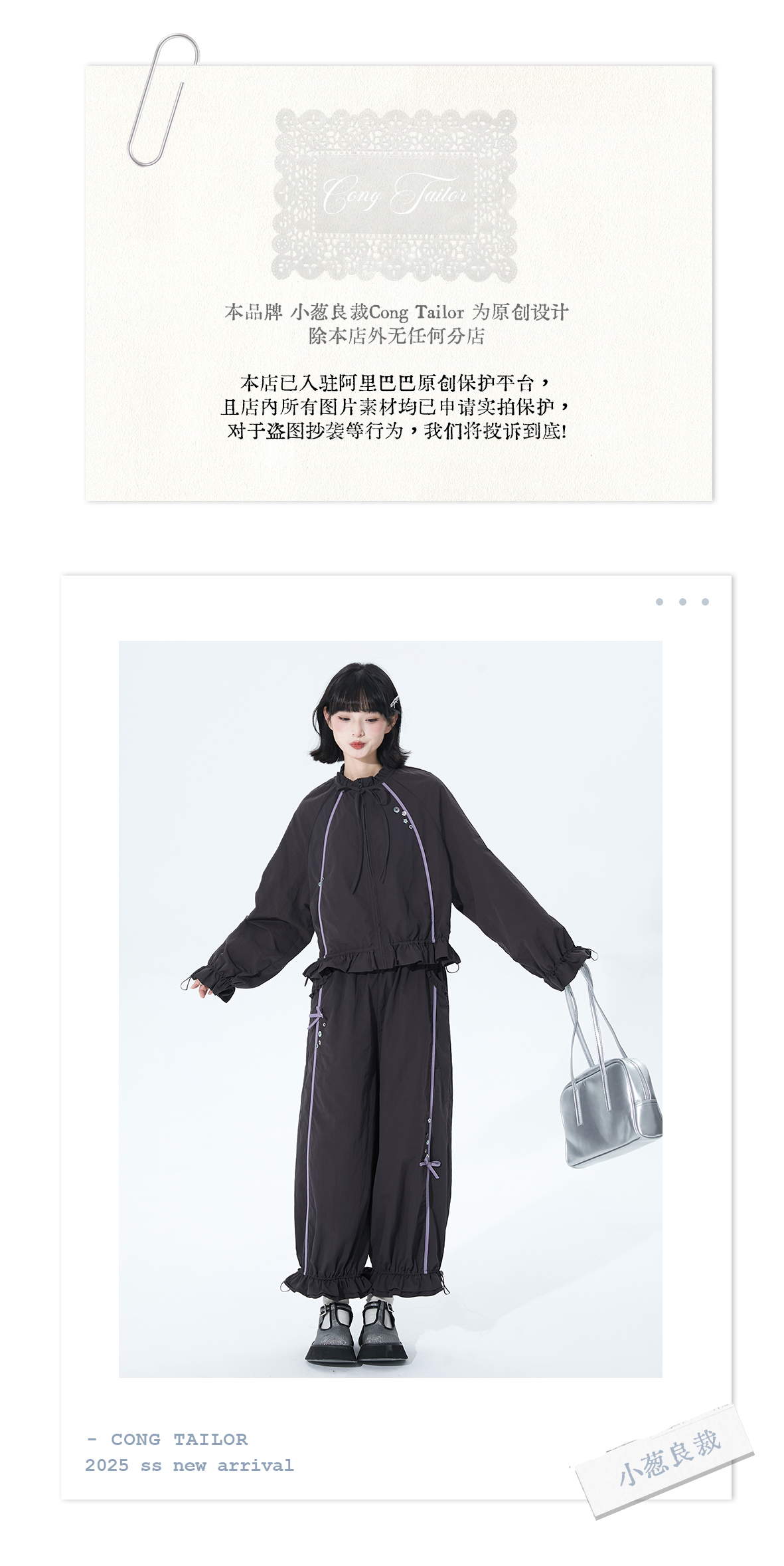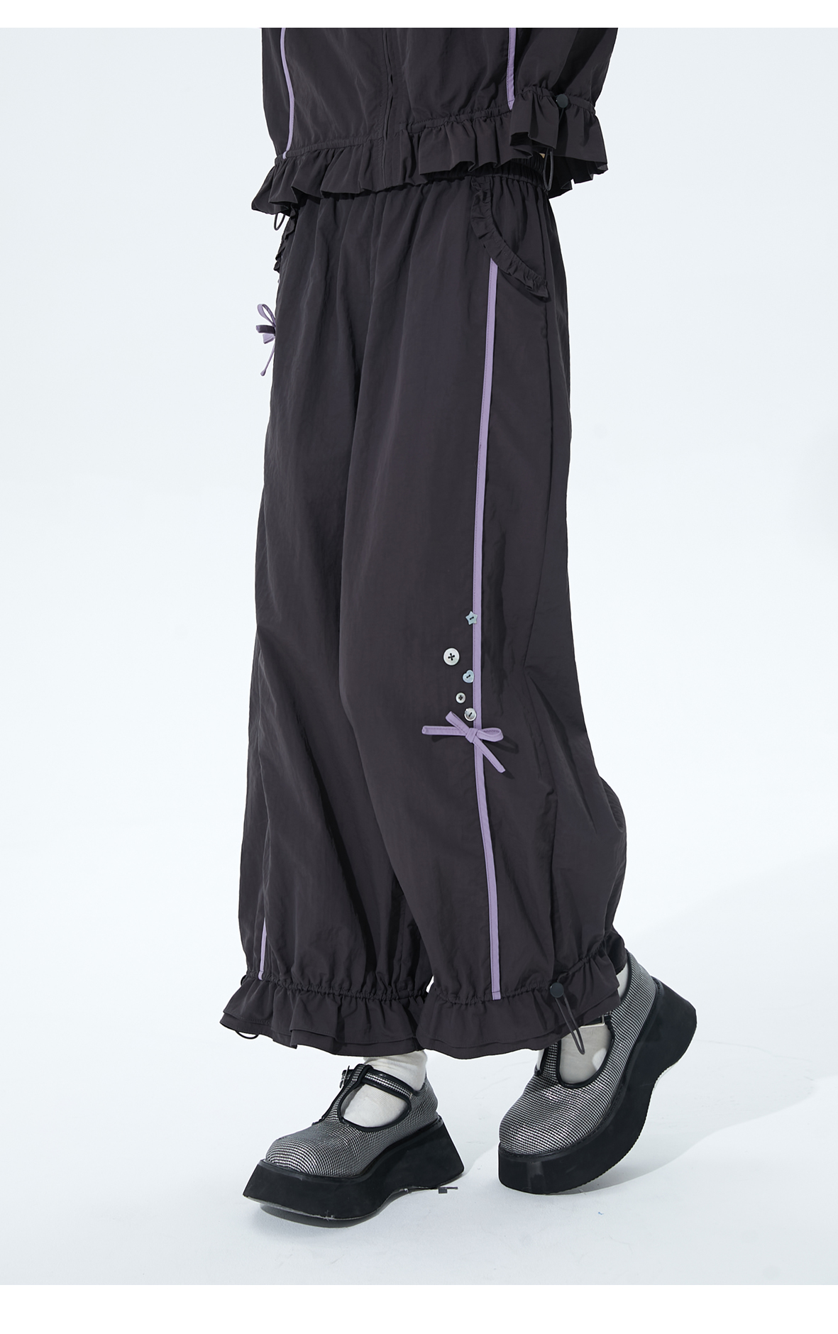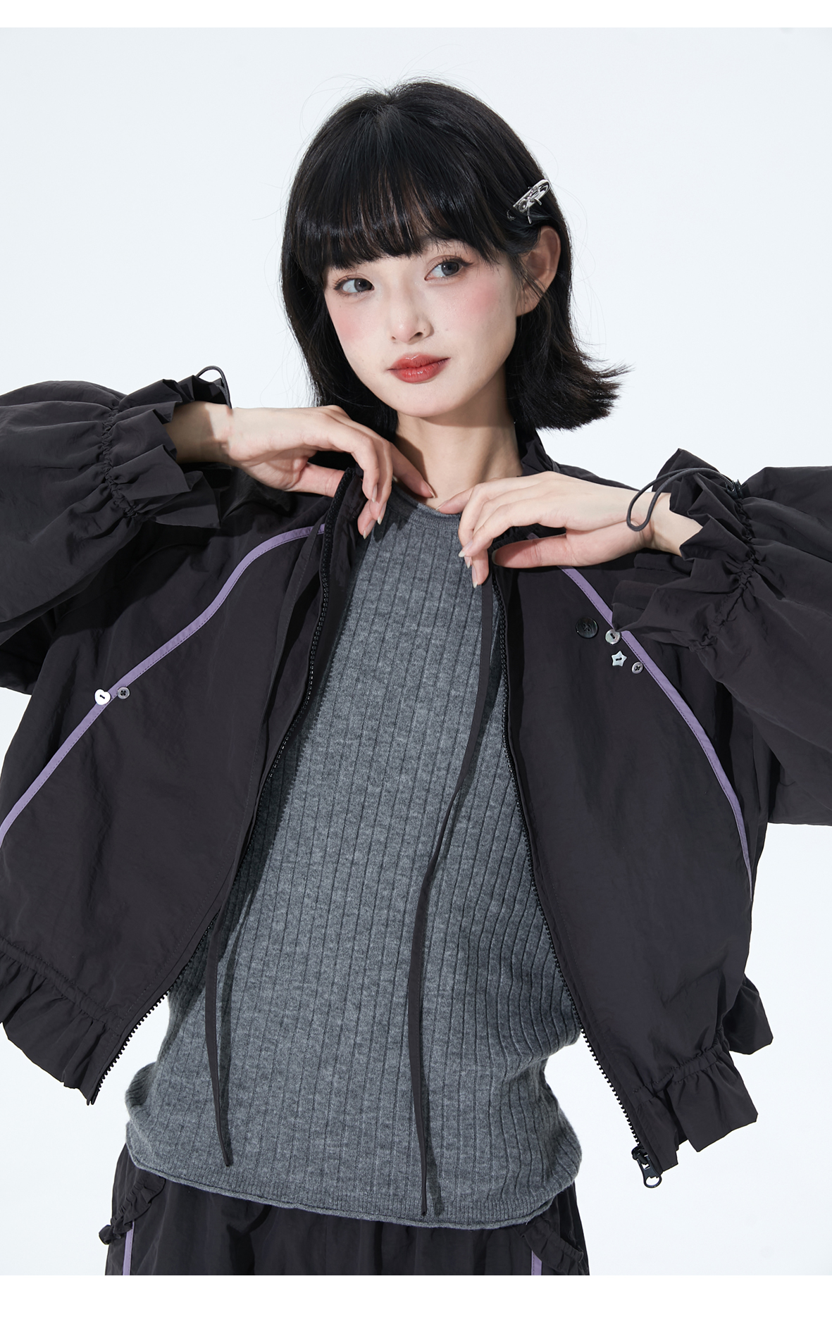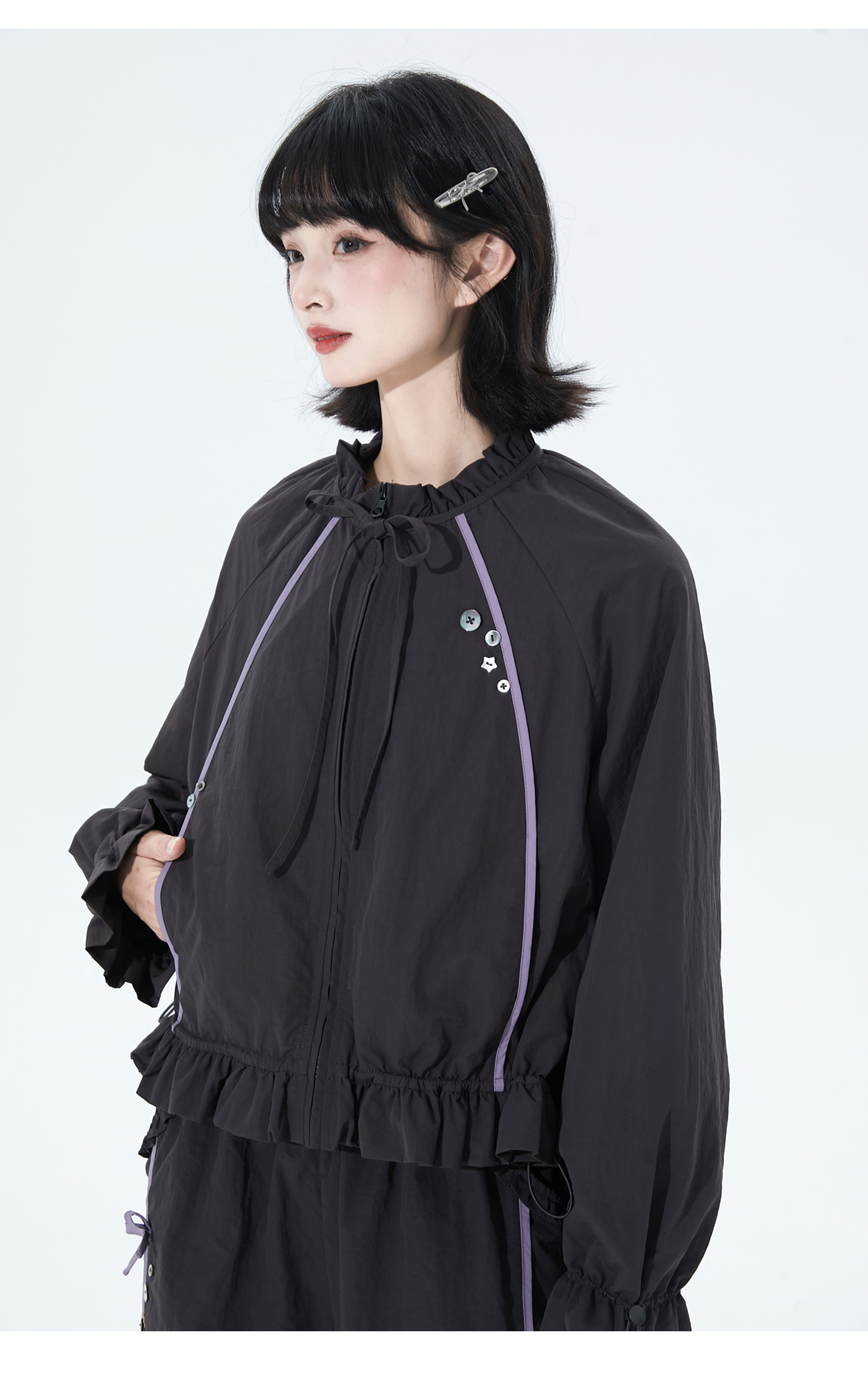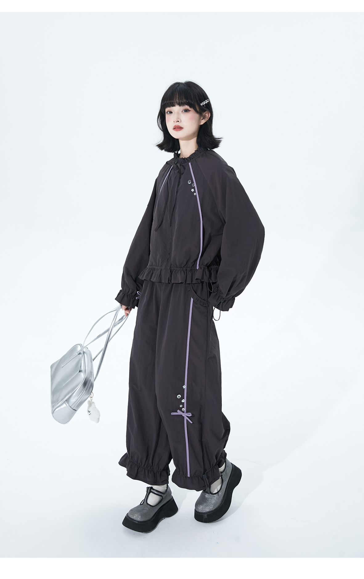 小葱良裁 紫线星轨 甜酷风早秋工装短外套女荷叶边阔腿裤两件套 [Original Page Link]