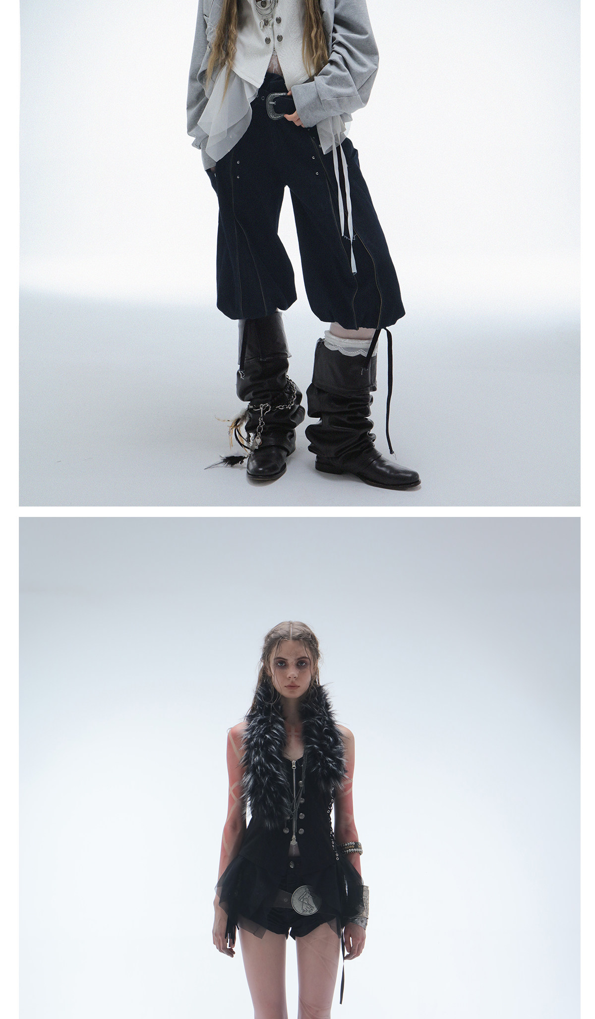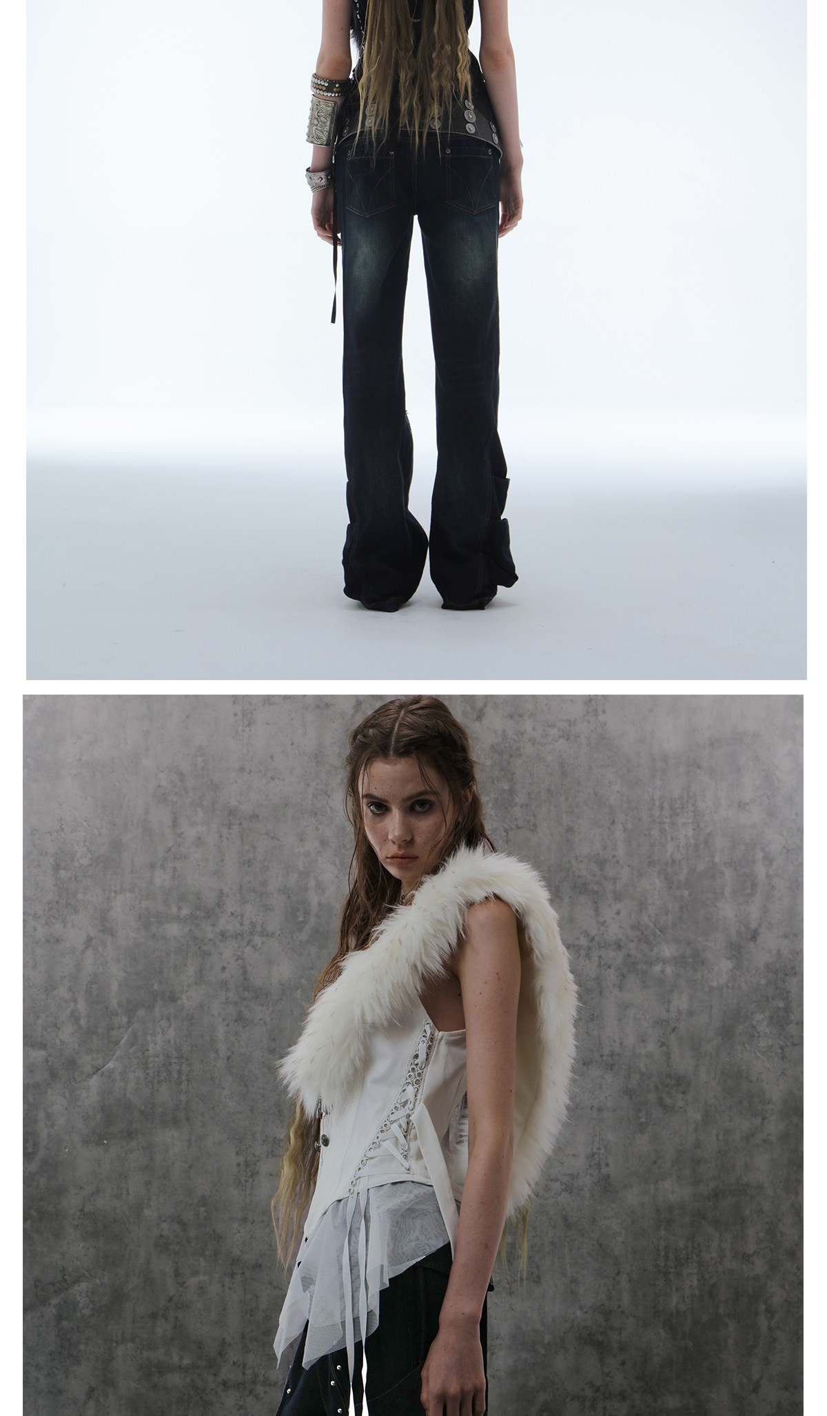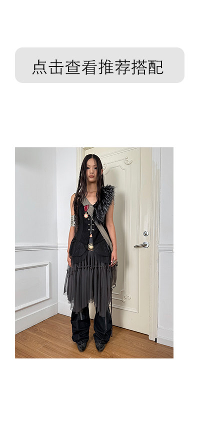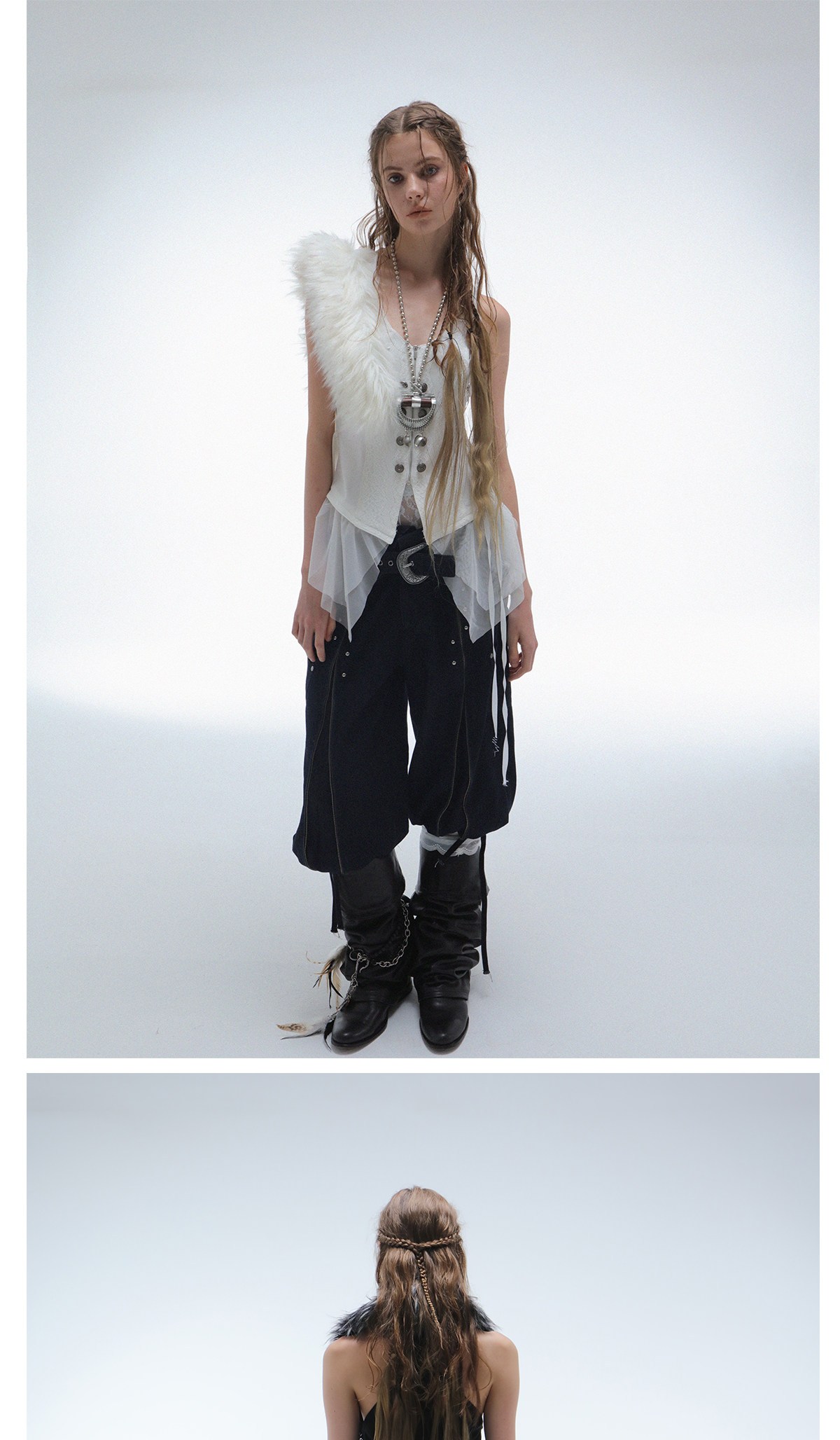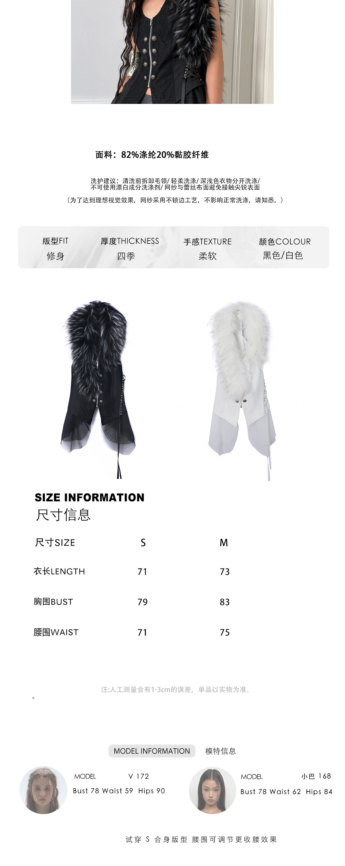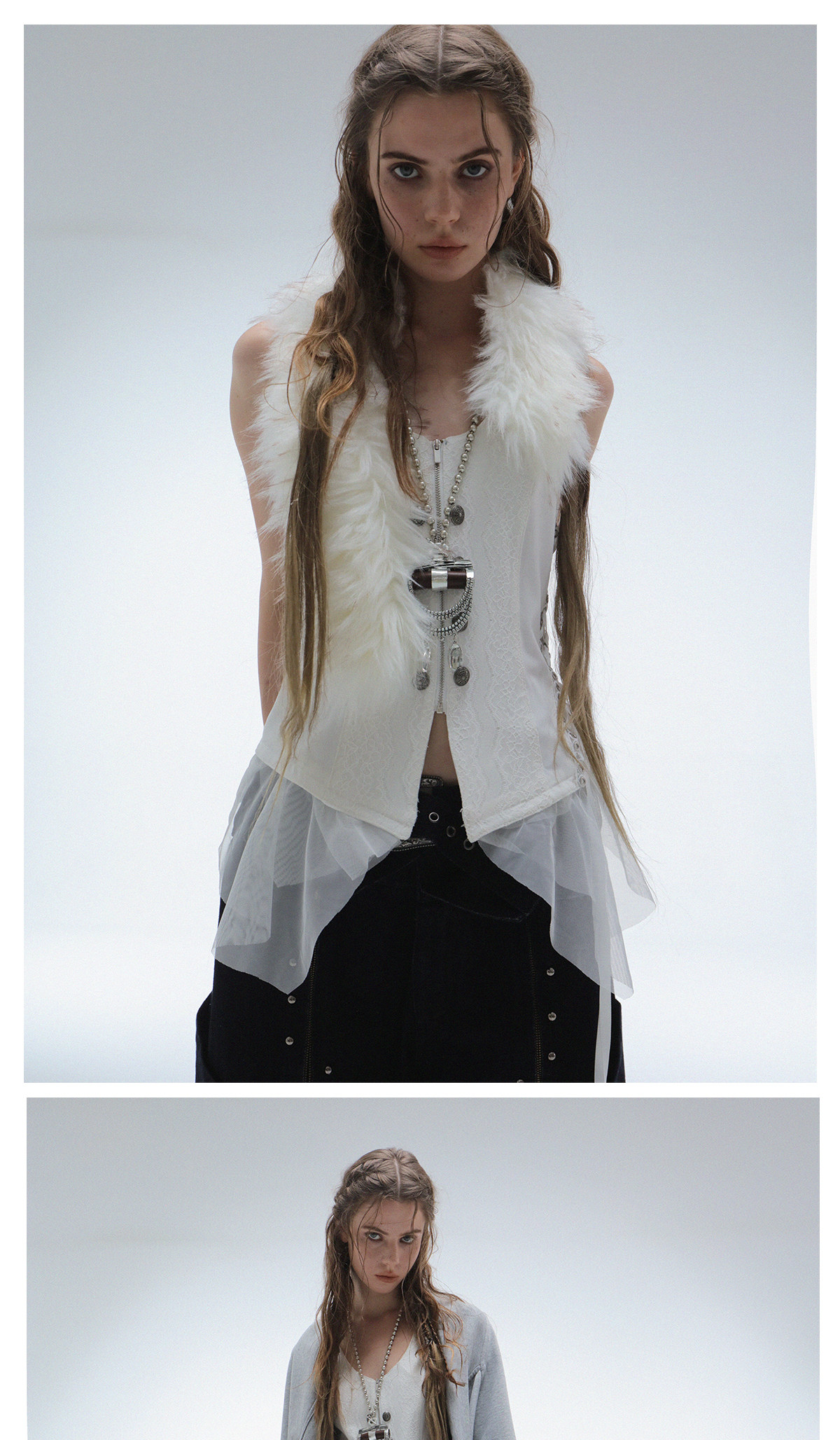 DoublePunch早秋原创蕾丝提花纱拼接复古金属扣毛领海盗无袖外搭背心 [Original Page Link]