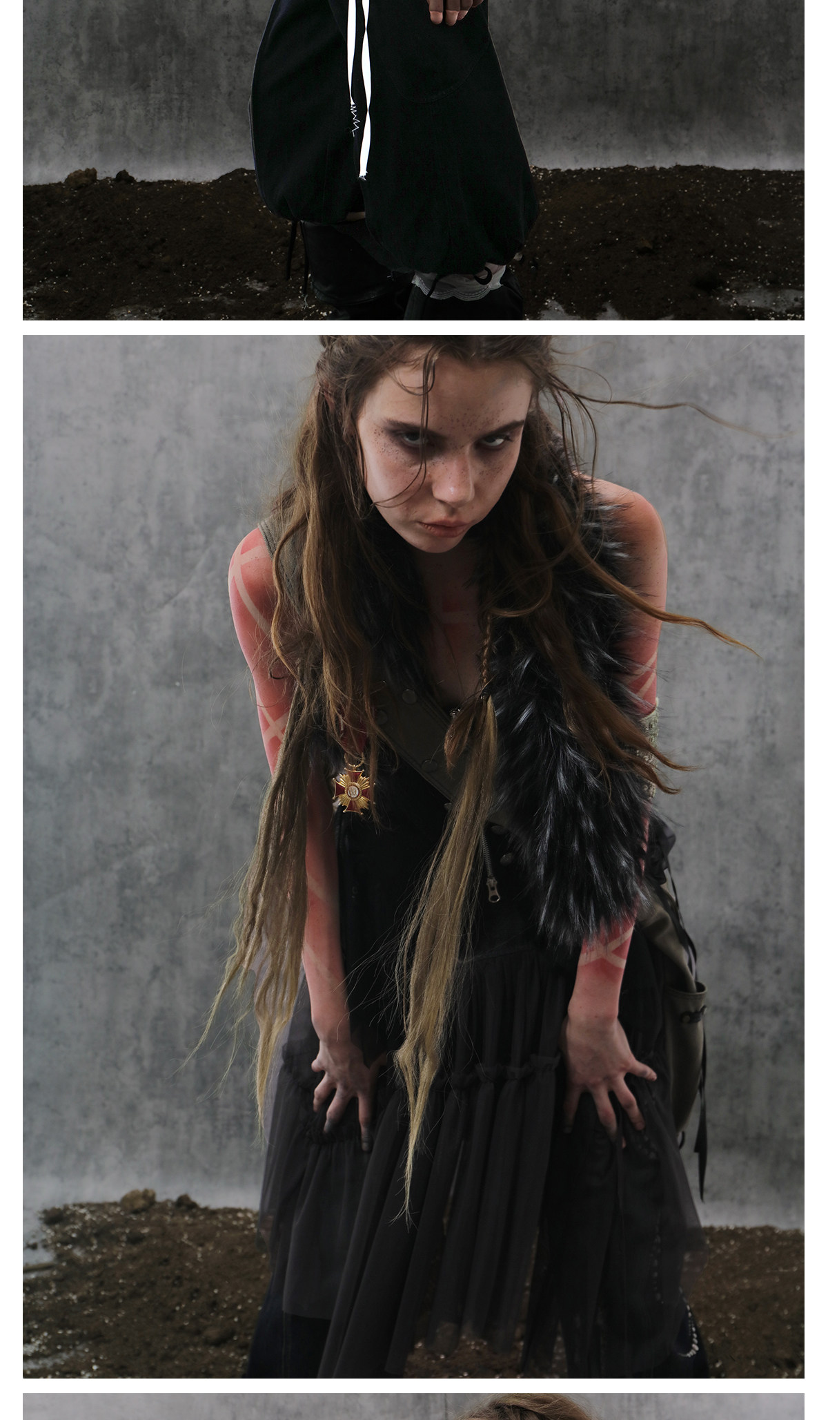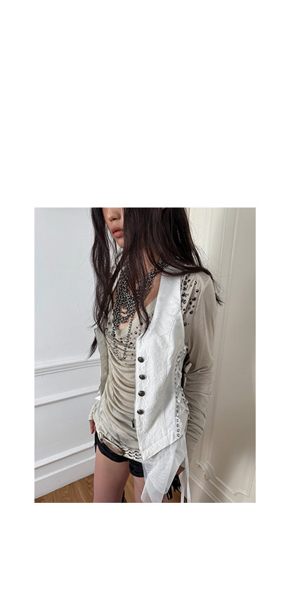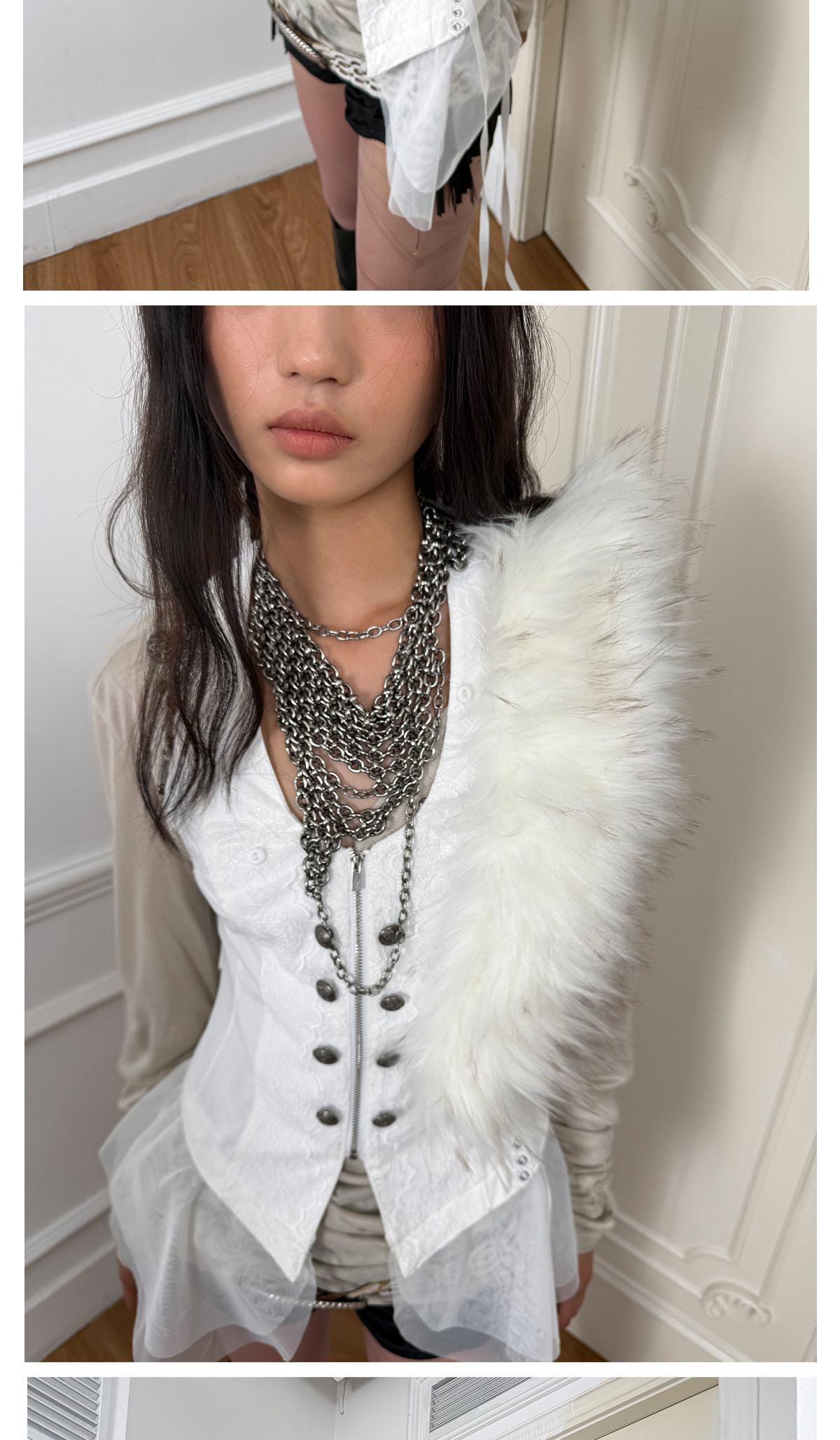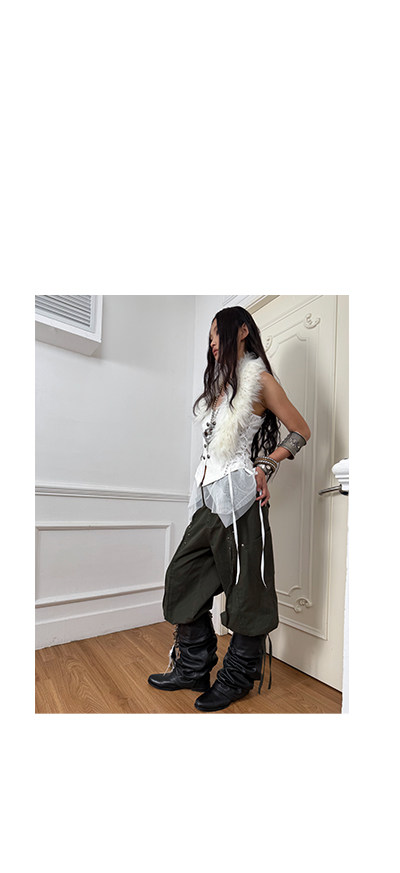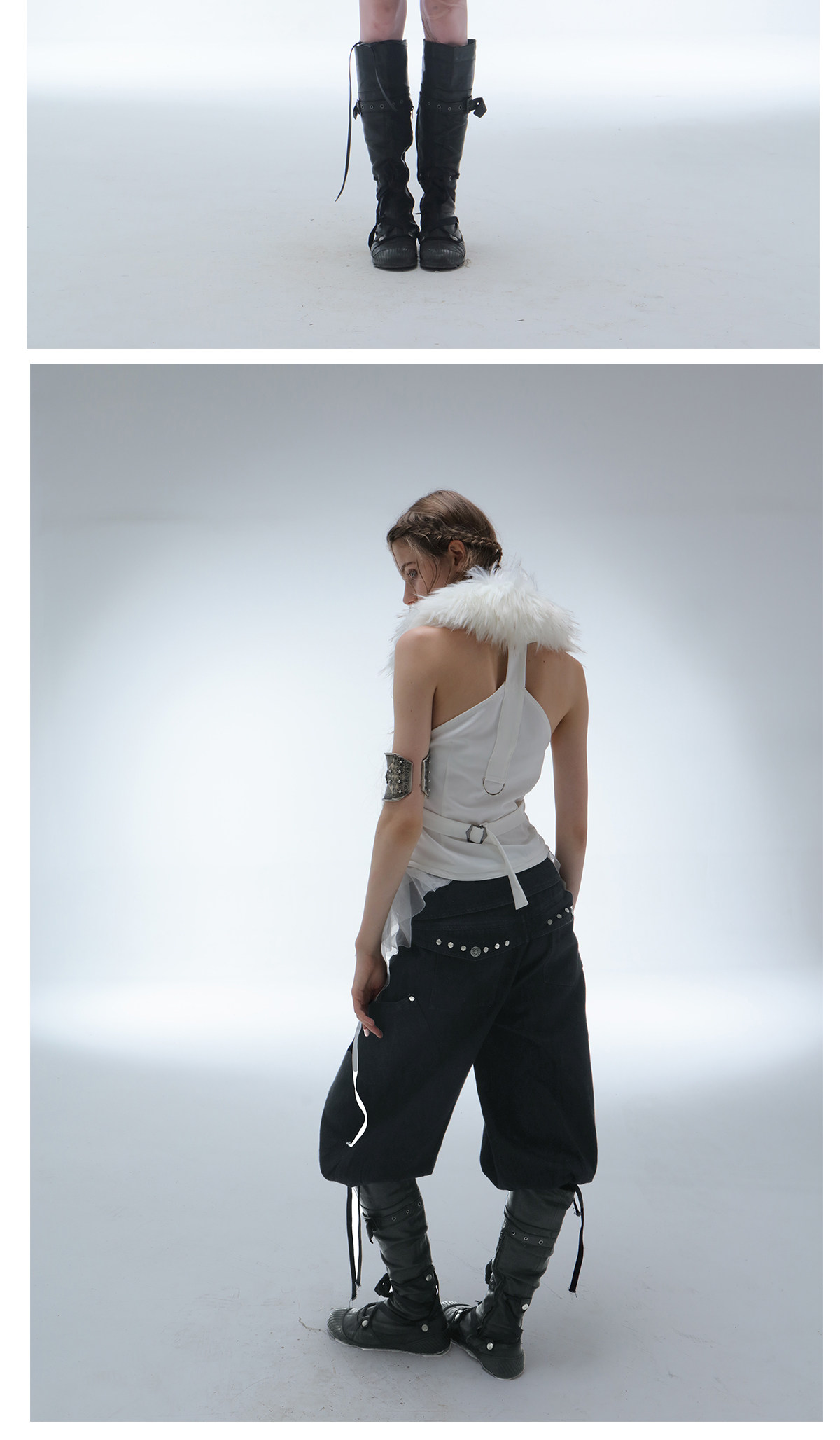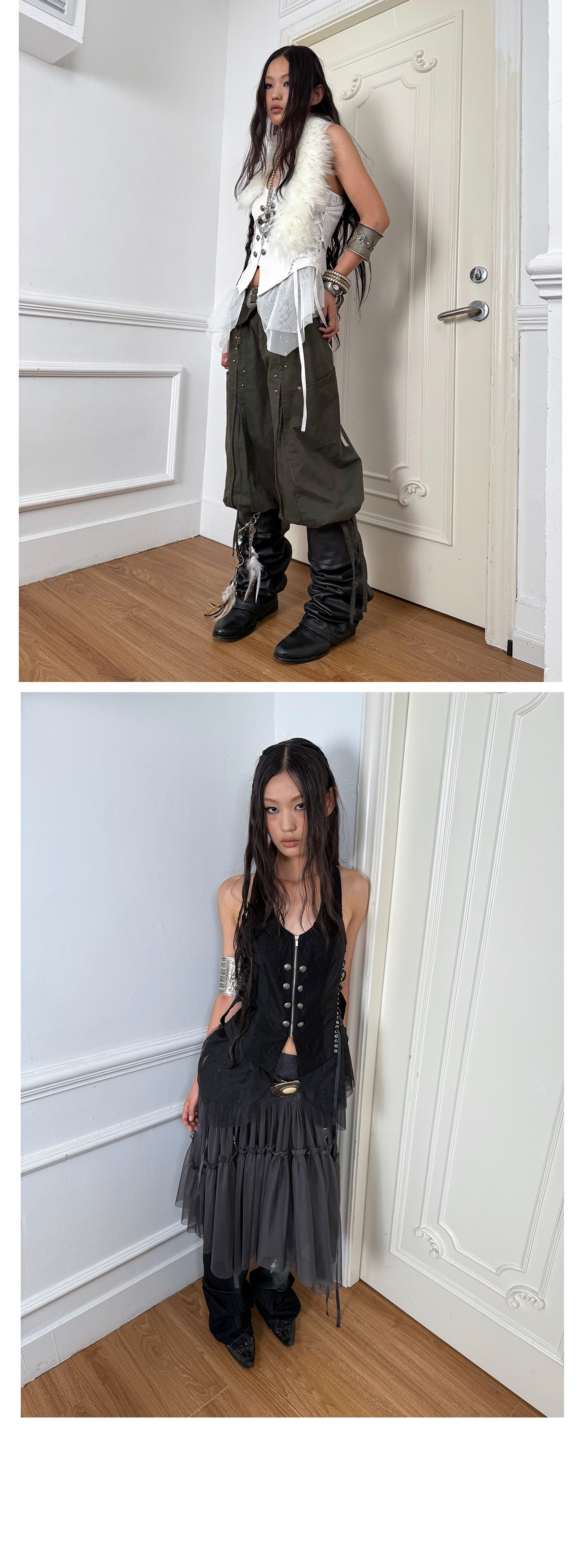 DoublePunch早秋原创蕾丝提花纱拼接复古金属扣毛领海盗无袖外搭背心 [Original Page Link]