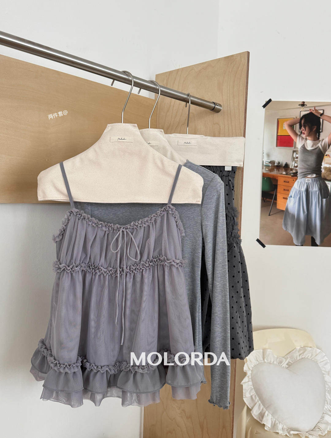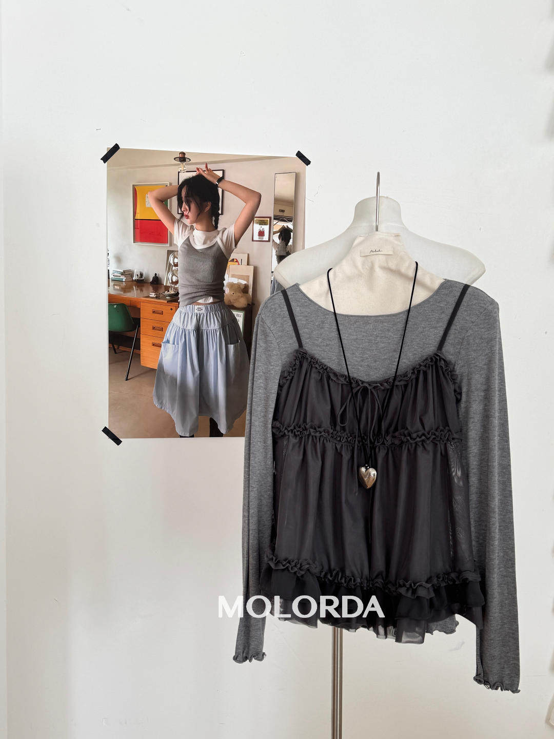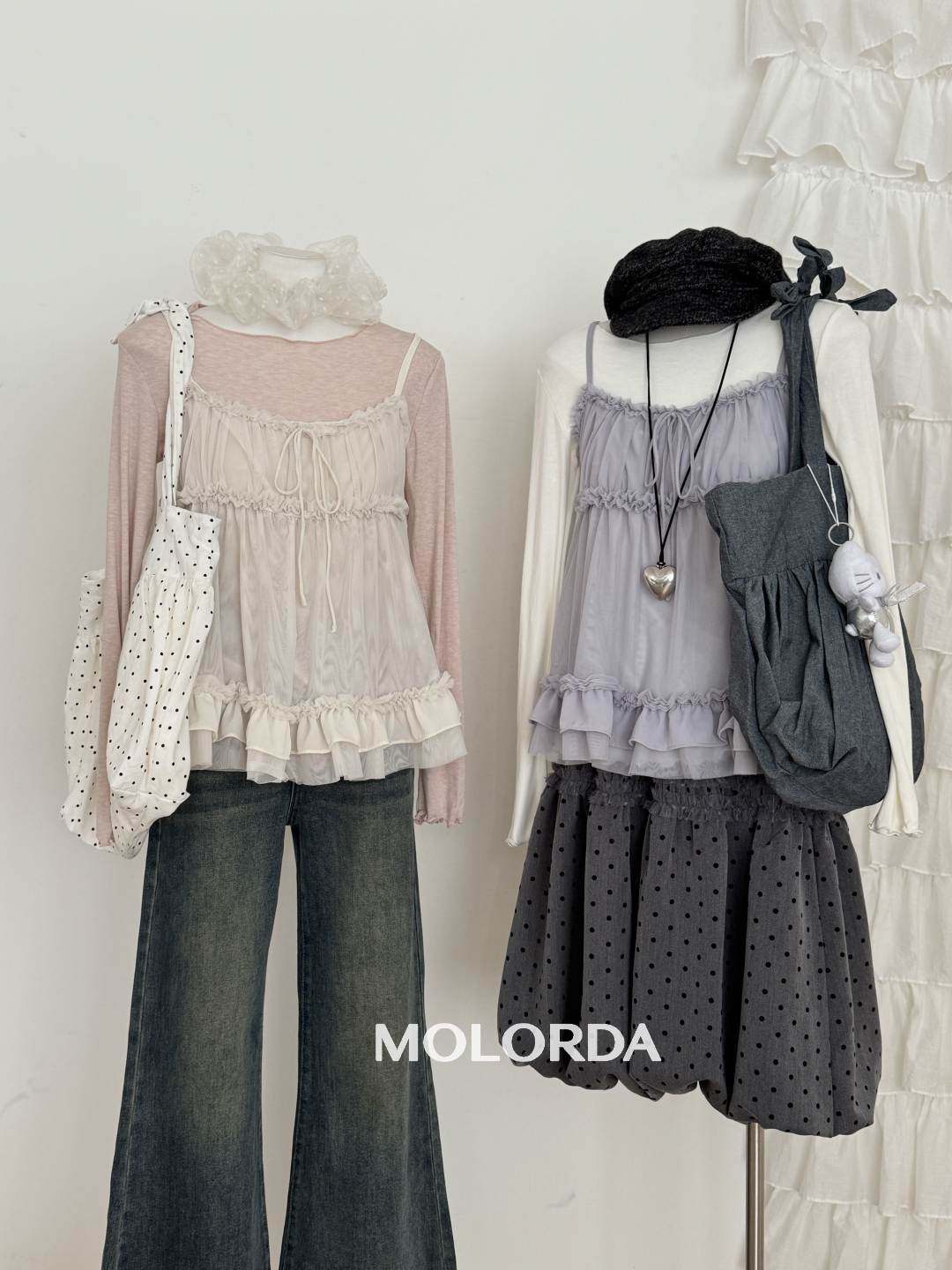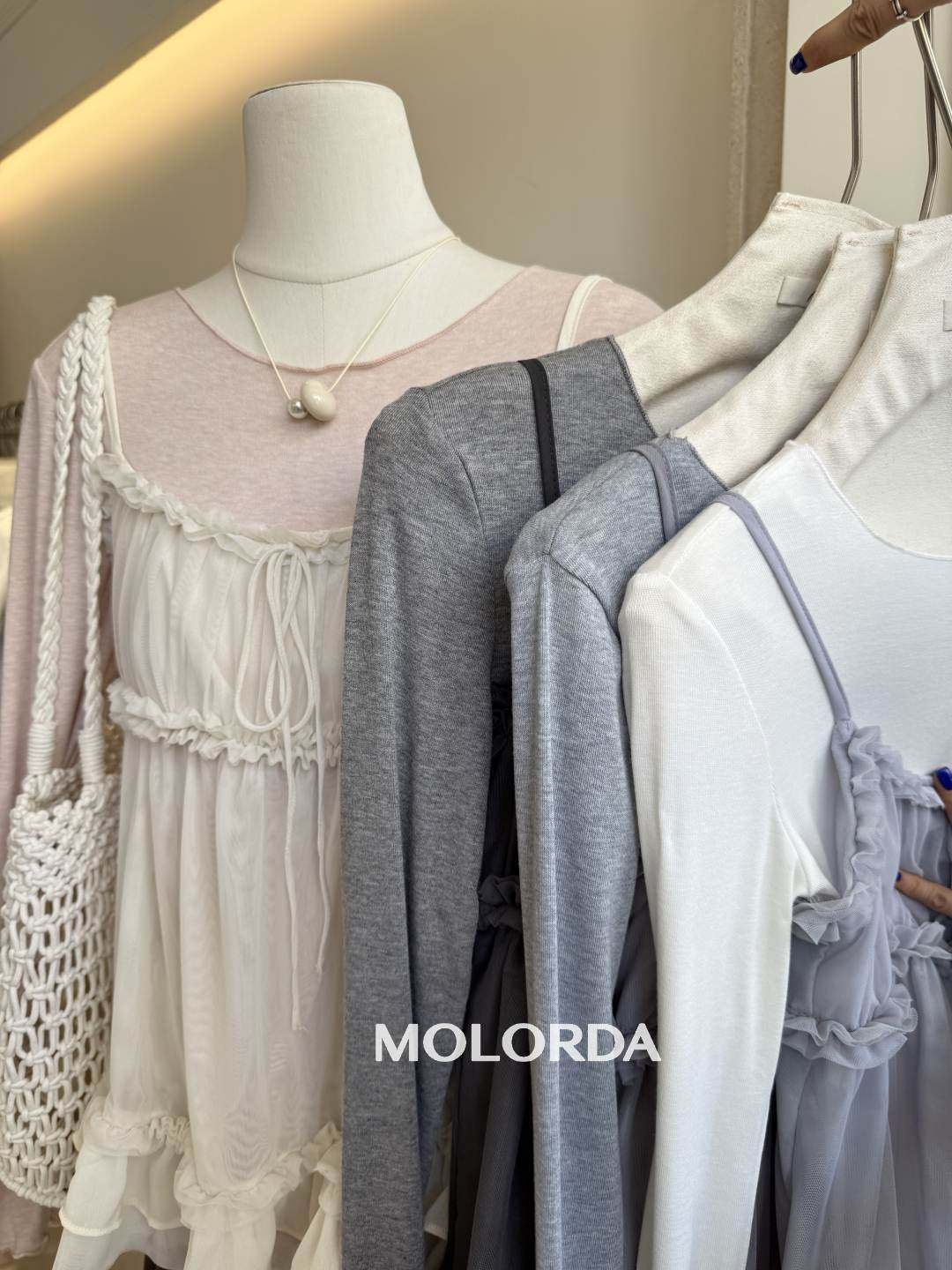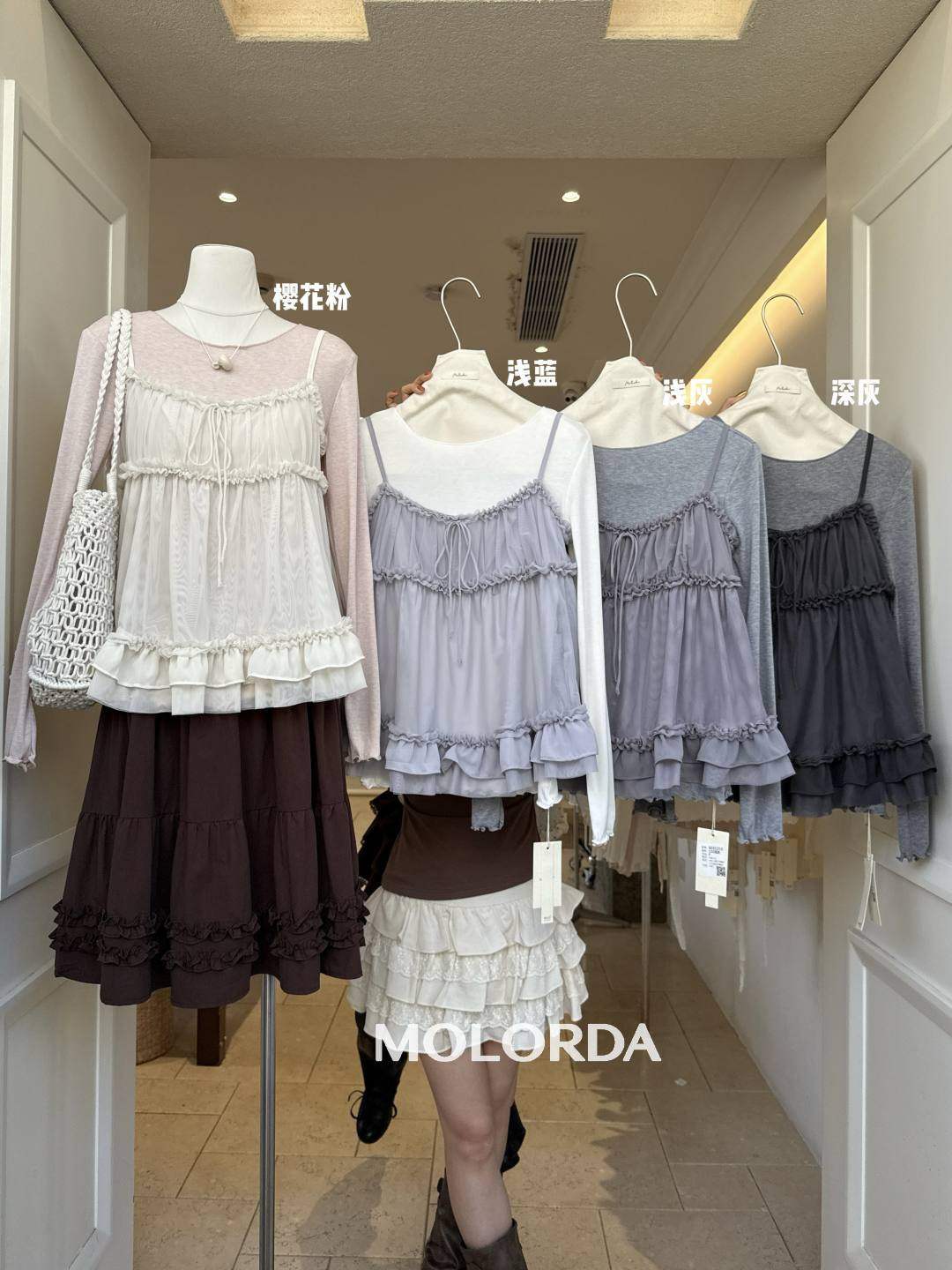 MOLORDA 木耳边吊带长袖T恤两件套女2025秋季新款甜美上衣 [Original Page Link]