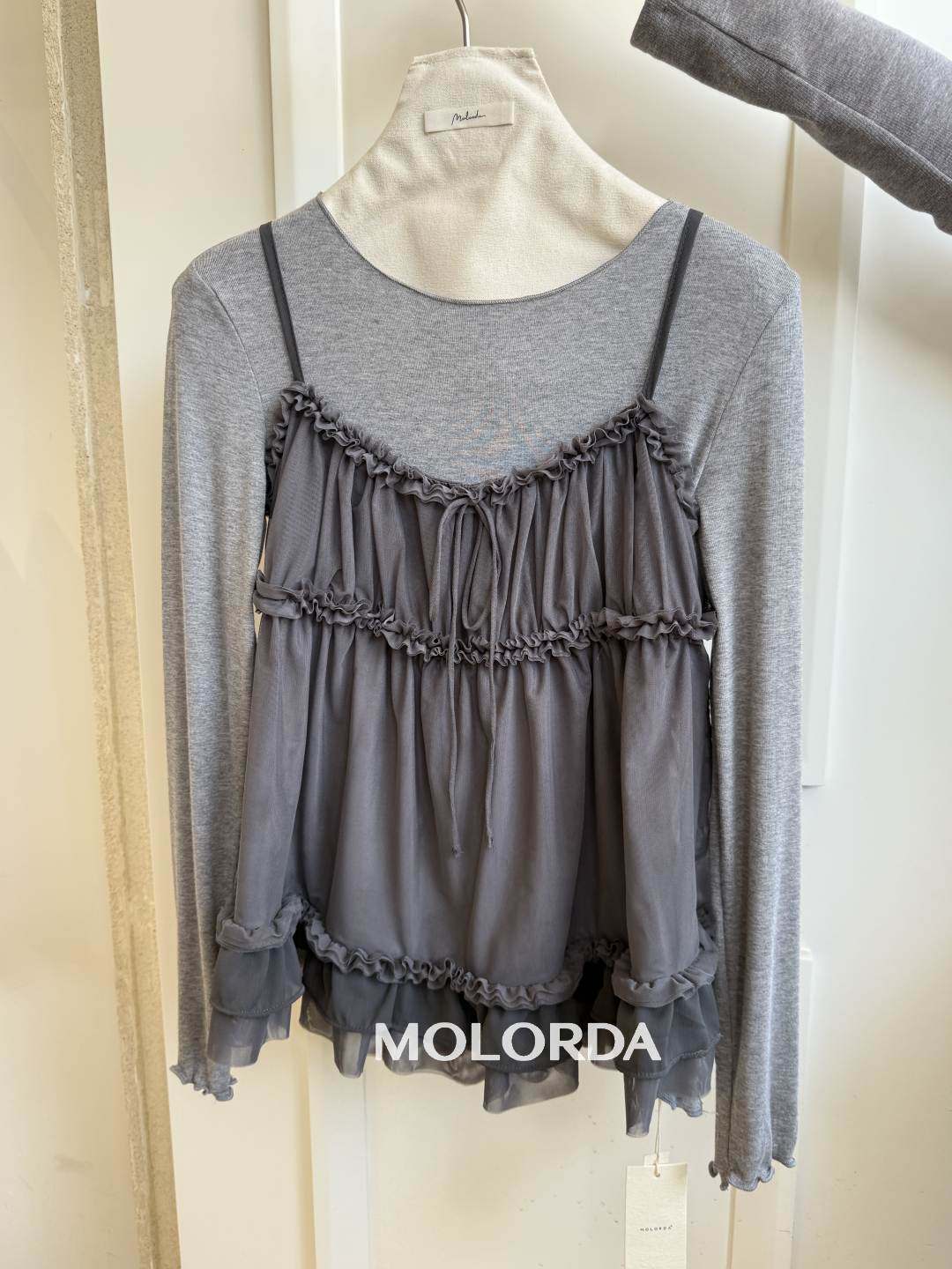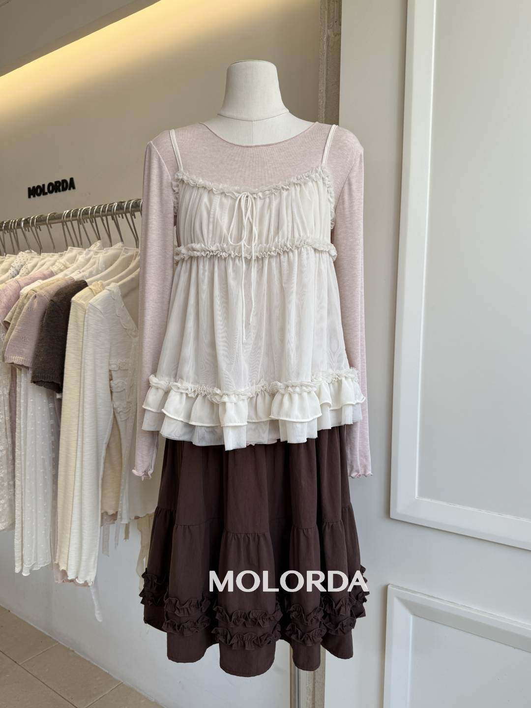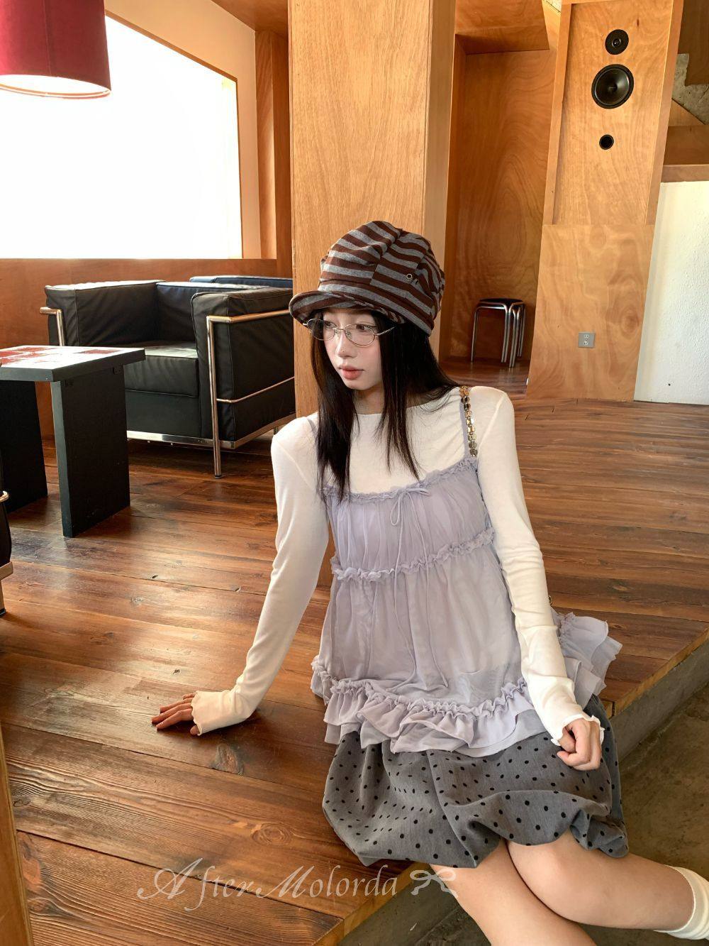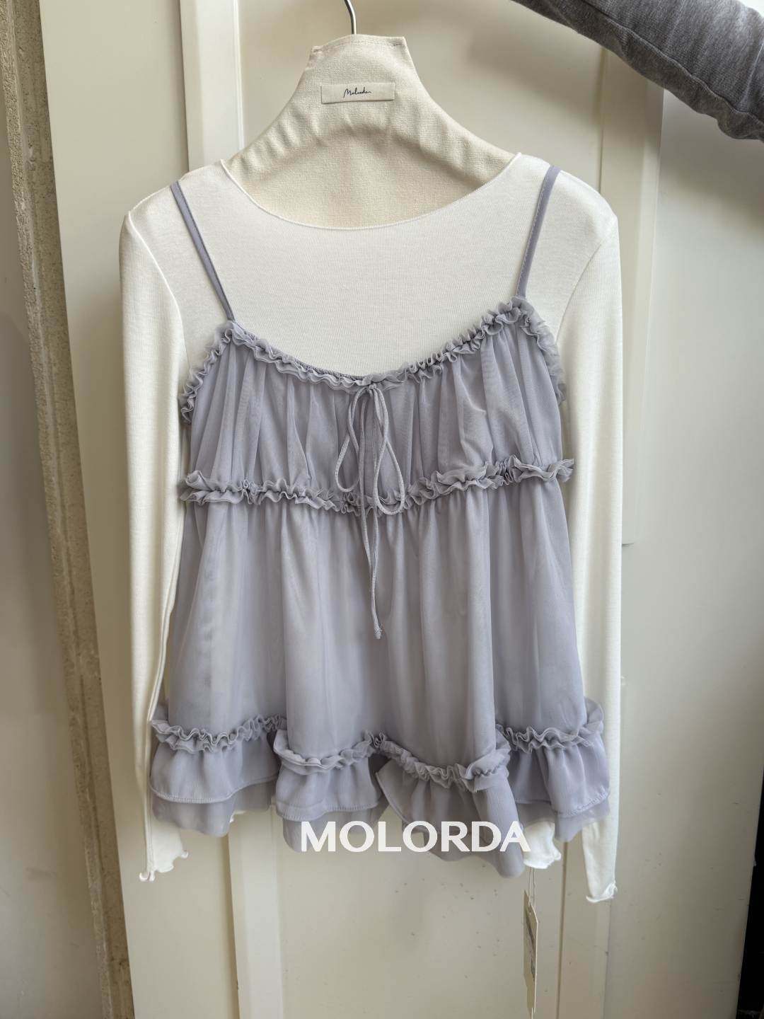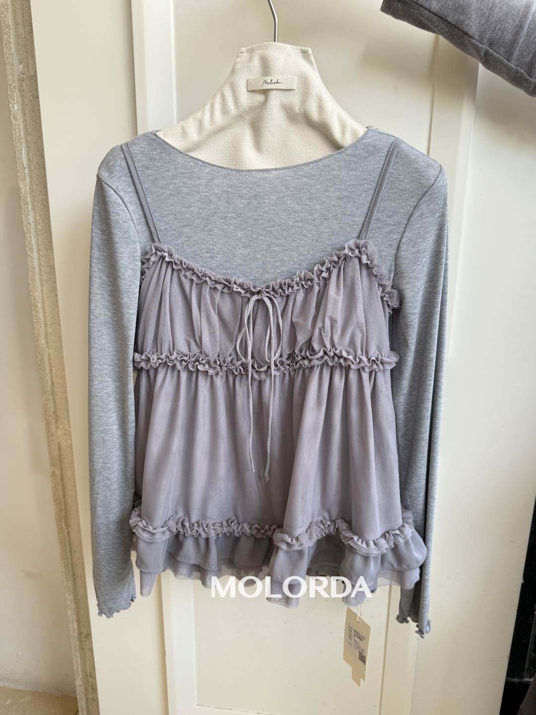 MOLORDA 木耳边吊带长袖T恤两件套女2025秋季新款甜美上衣 [Original Page Link]