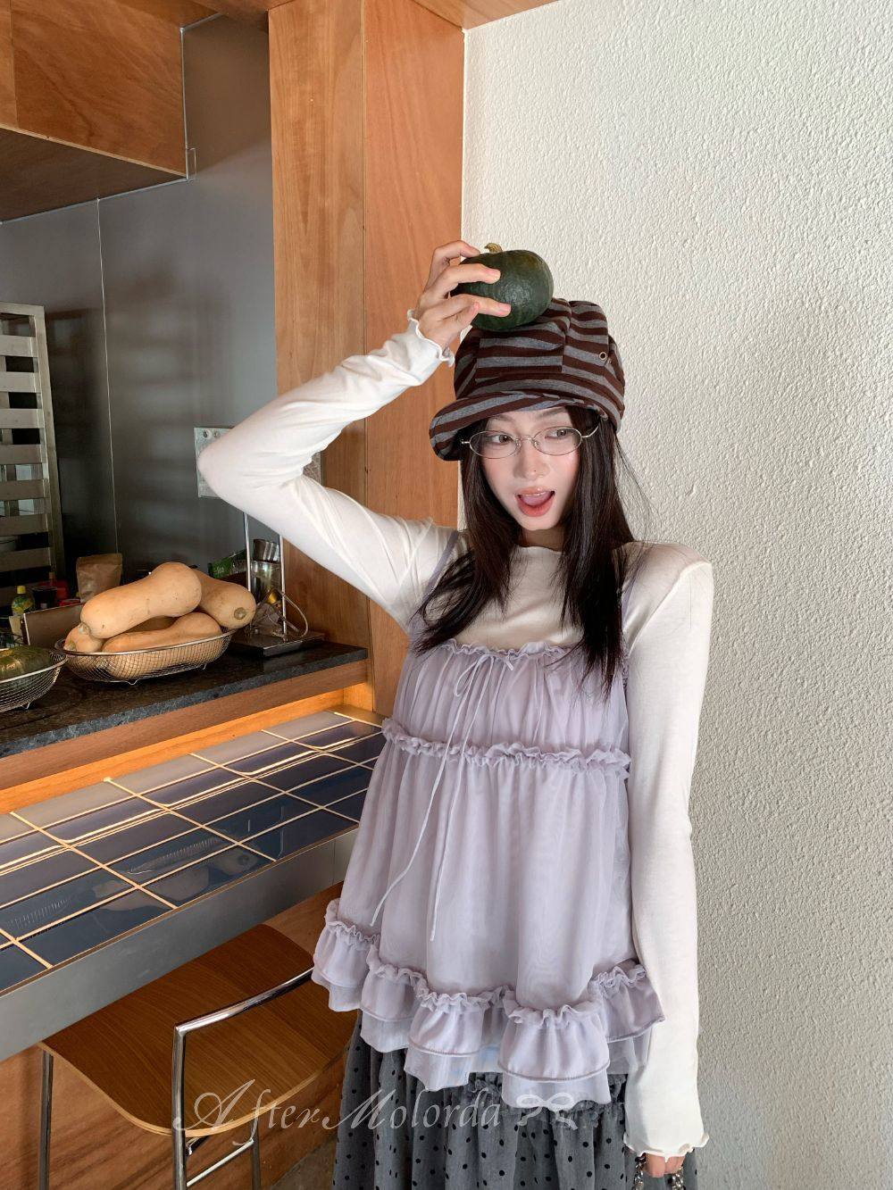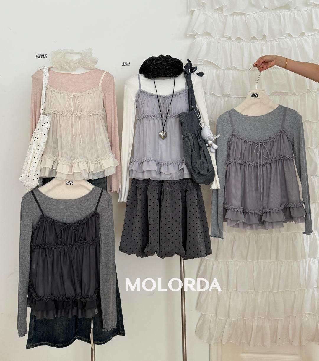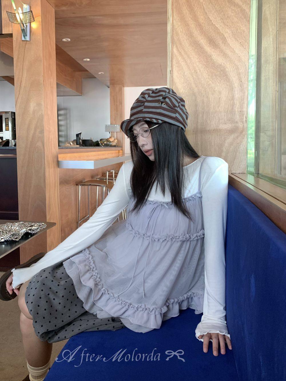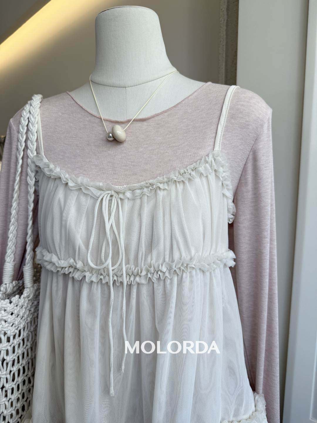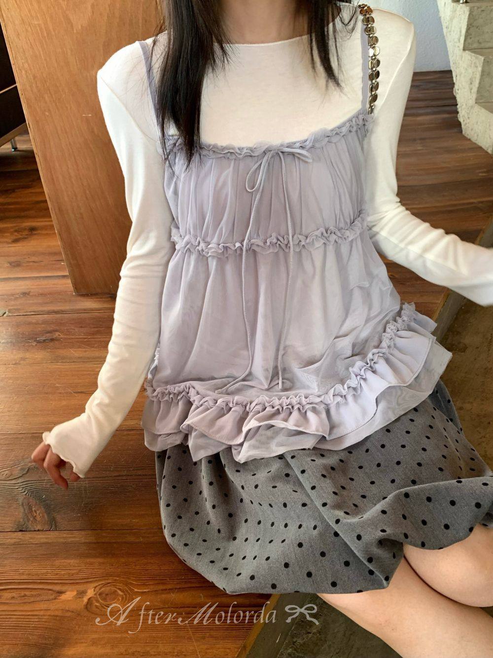 MOLORDA 木耳边吊带长袖T恤两件套女2025秋季新款甜美上衣 [Original Page Link]