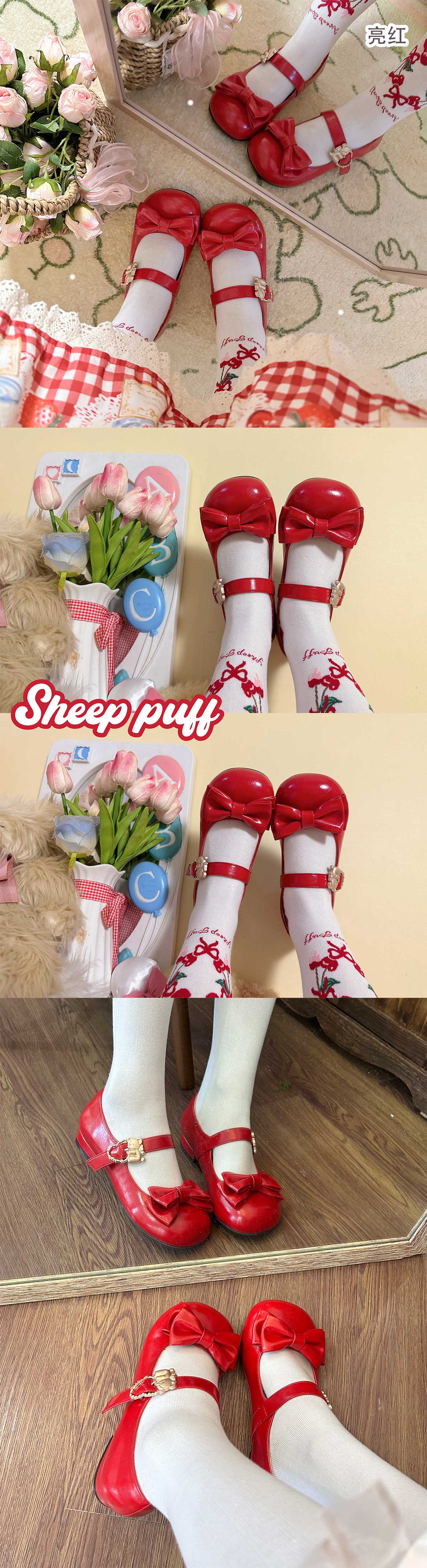 【现货十团】抱抱熊光泽色中低跟 绵羊泡芙Lolita小熊蝴蝶结单鞋 [Original Page Link]