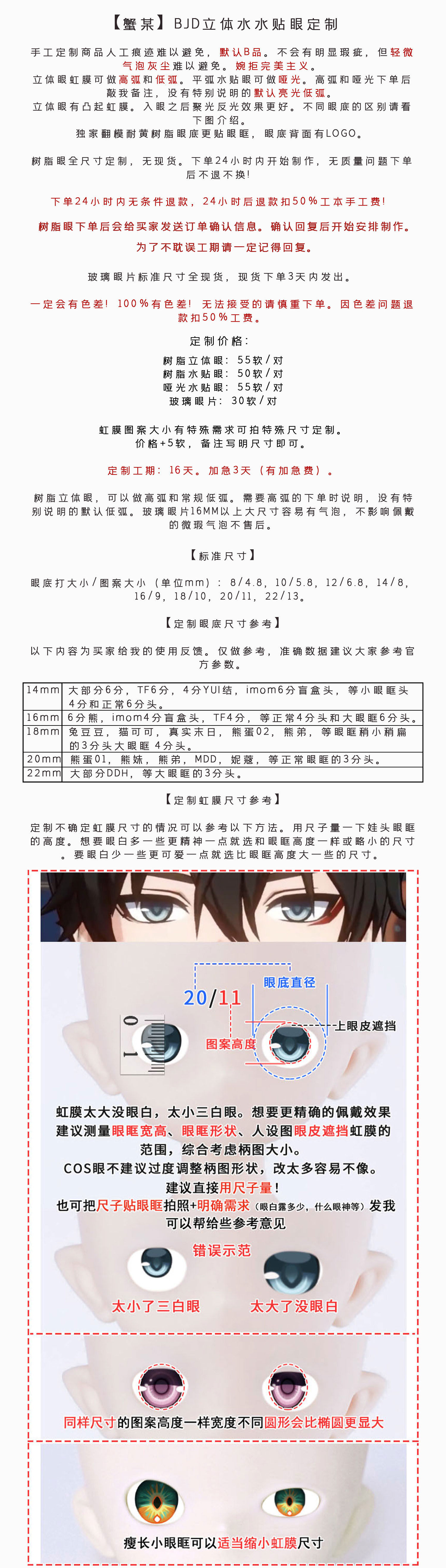 [Crab] Zero-zone COS eye BJD OB 2D resin 3D water decal eye Hugo Yuma