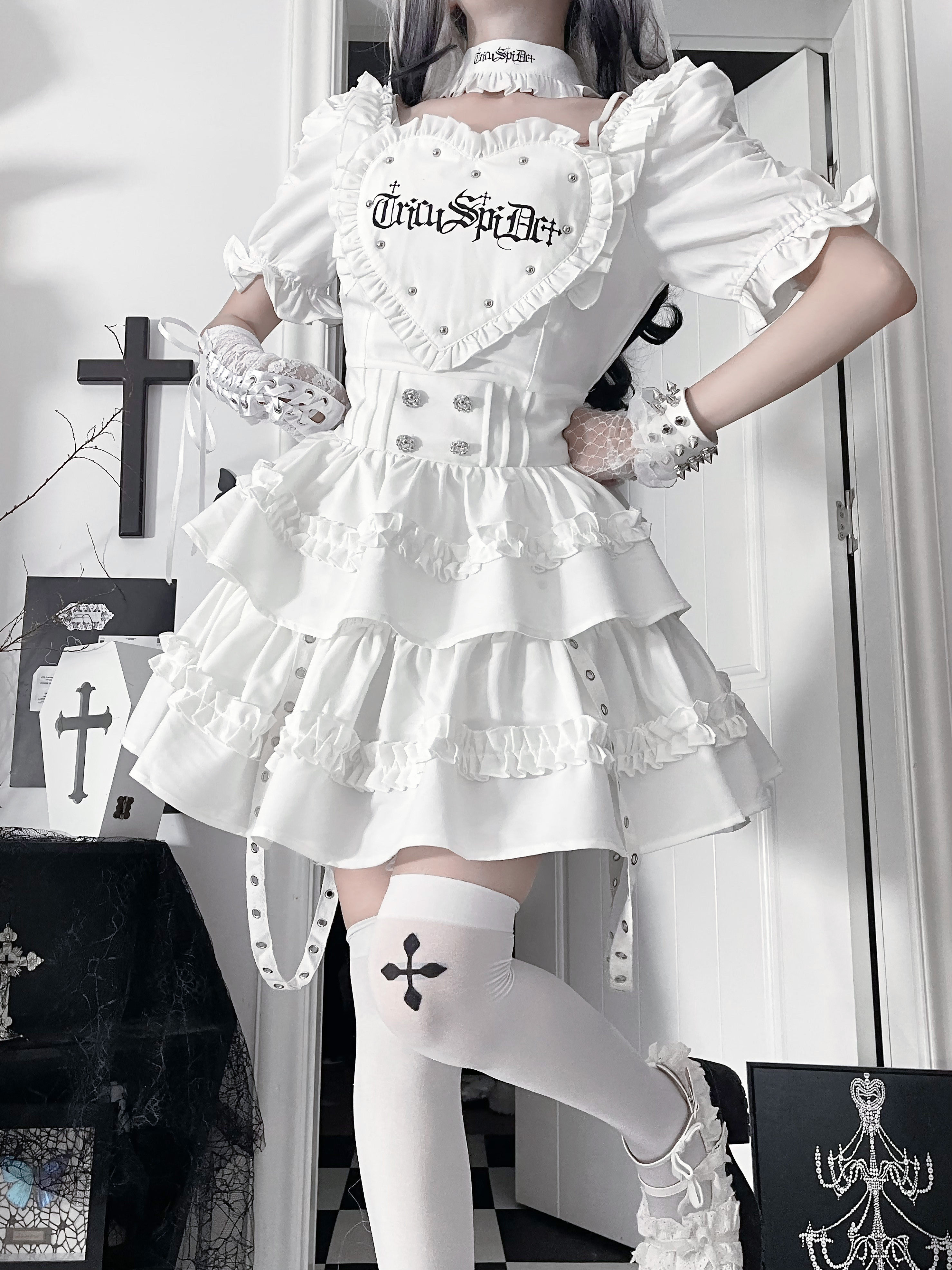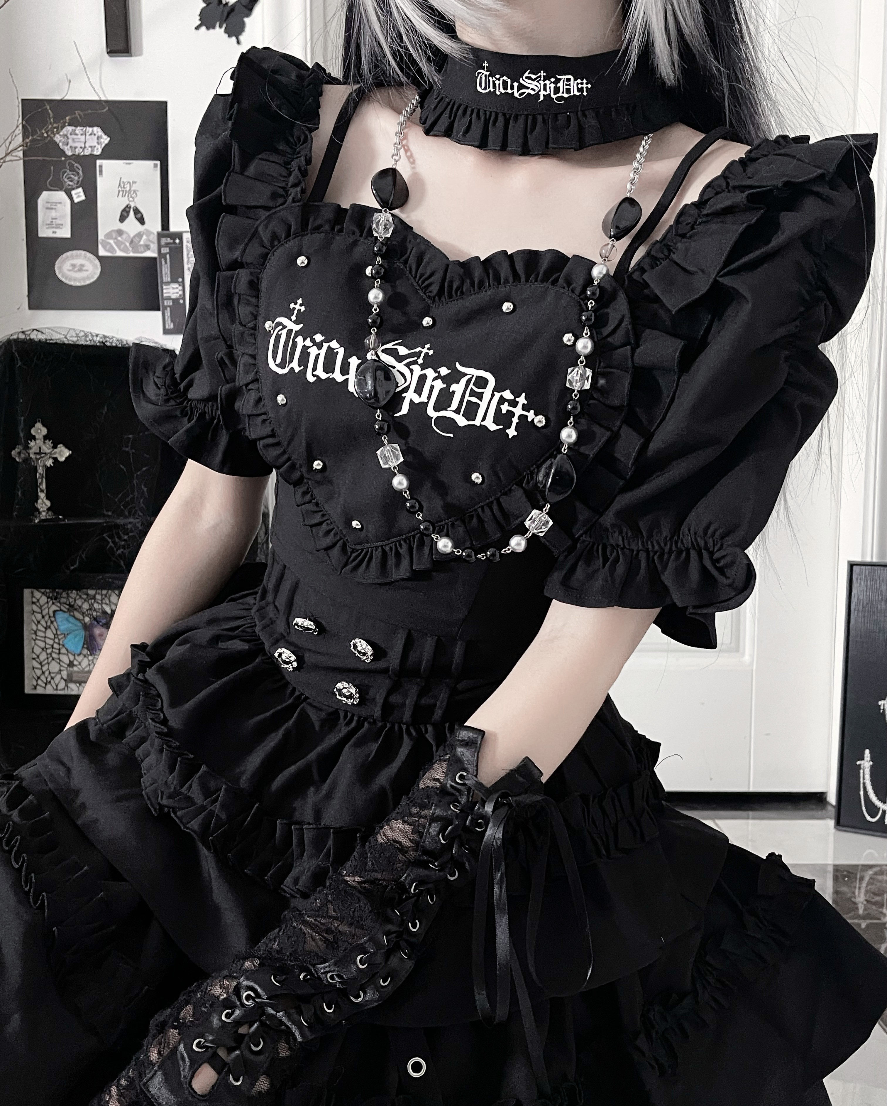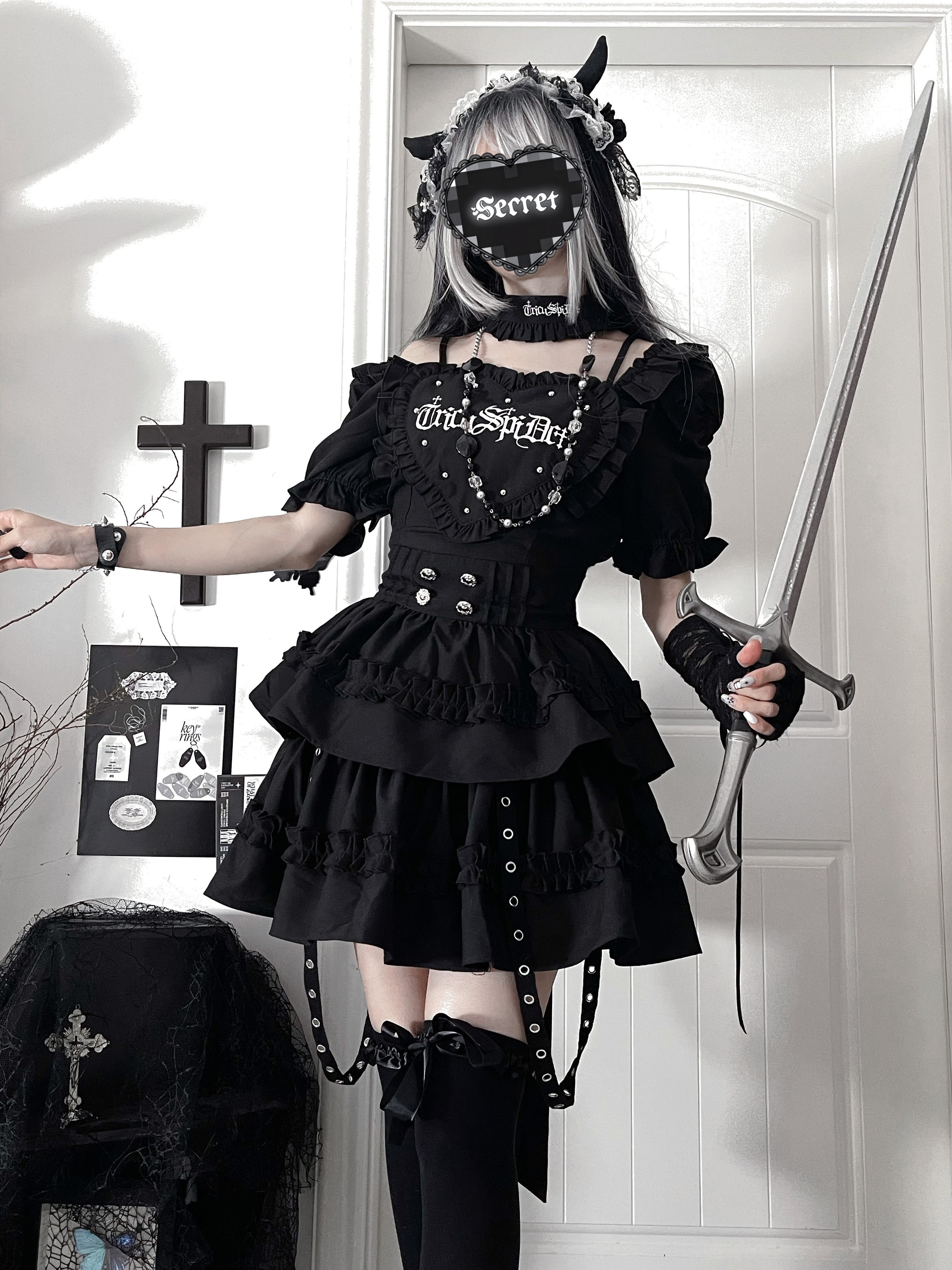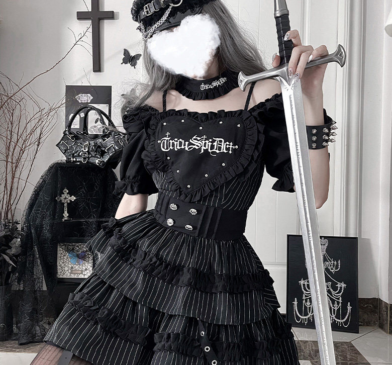 *暗恋手册*柘枝引TC原创印花亚文化哥特暗黑修身短袖连衣裙春夏 [Original Page Link]