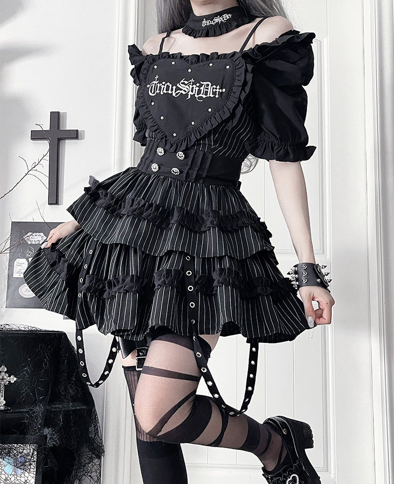 *Secret Love Manual* Zhezhiyin TC Original Printed Subculture Gothic Dark Slim Fit Short Sleeve Dress Spring/Summer