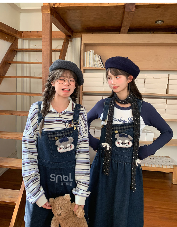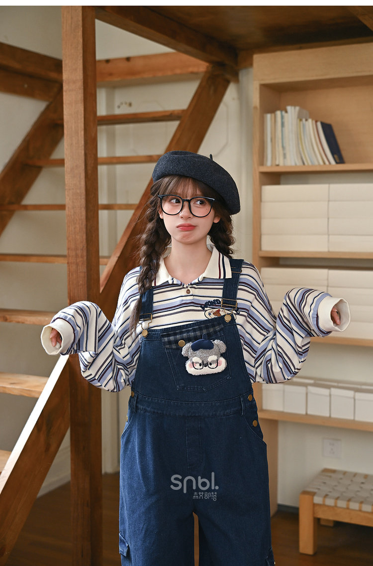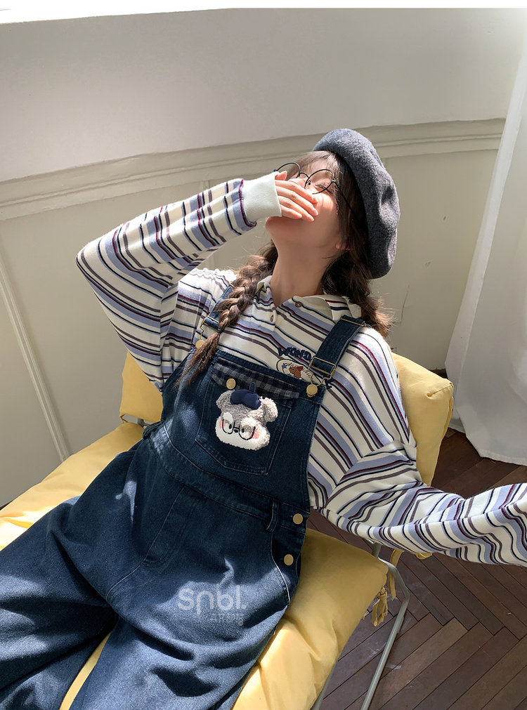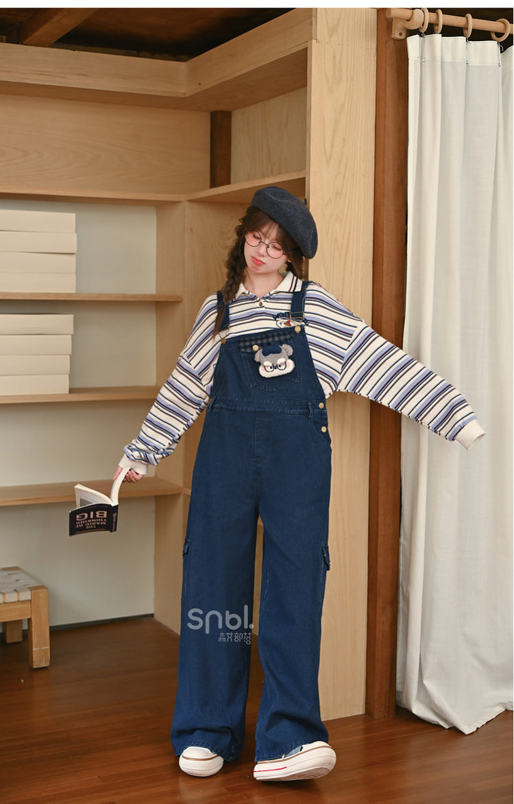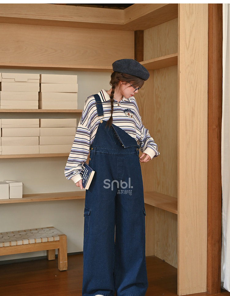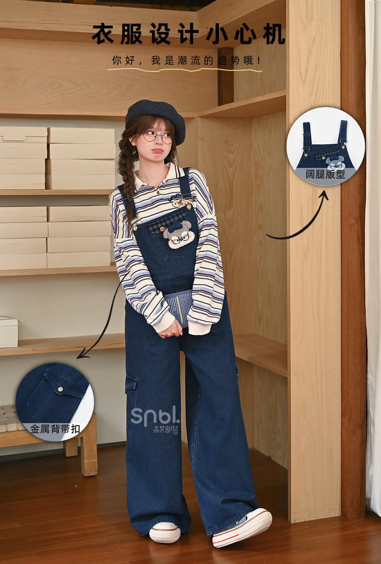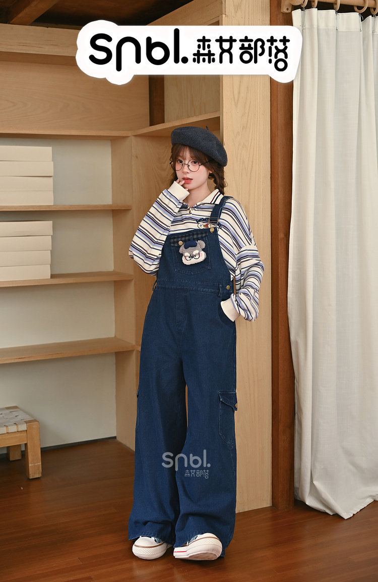 森女部落可爱小个子蓝色背带牛仔裤女2025新款宽松阔腿休闲裤子秋 [Original Page Link]