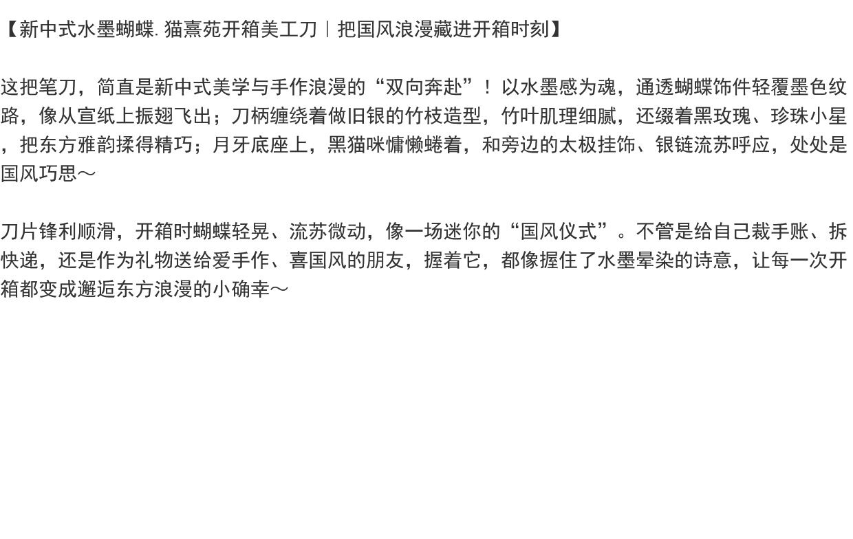 原创新中式国风书法蝴蝶手工学生礼物开箱刀高颜值摆件手作美工刀 [Original Page Link]