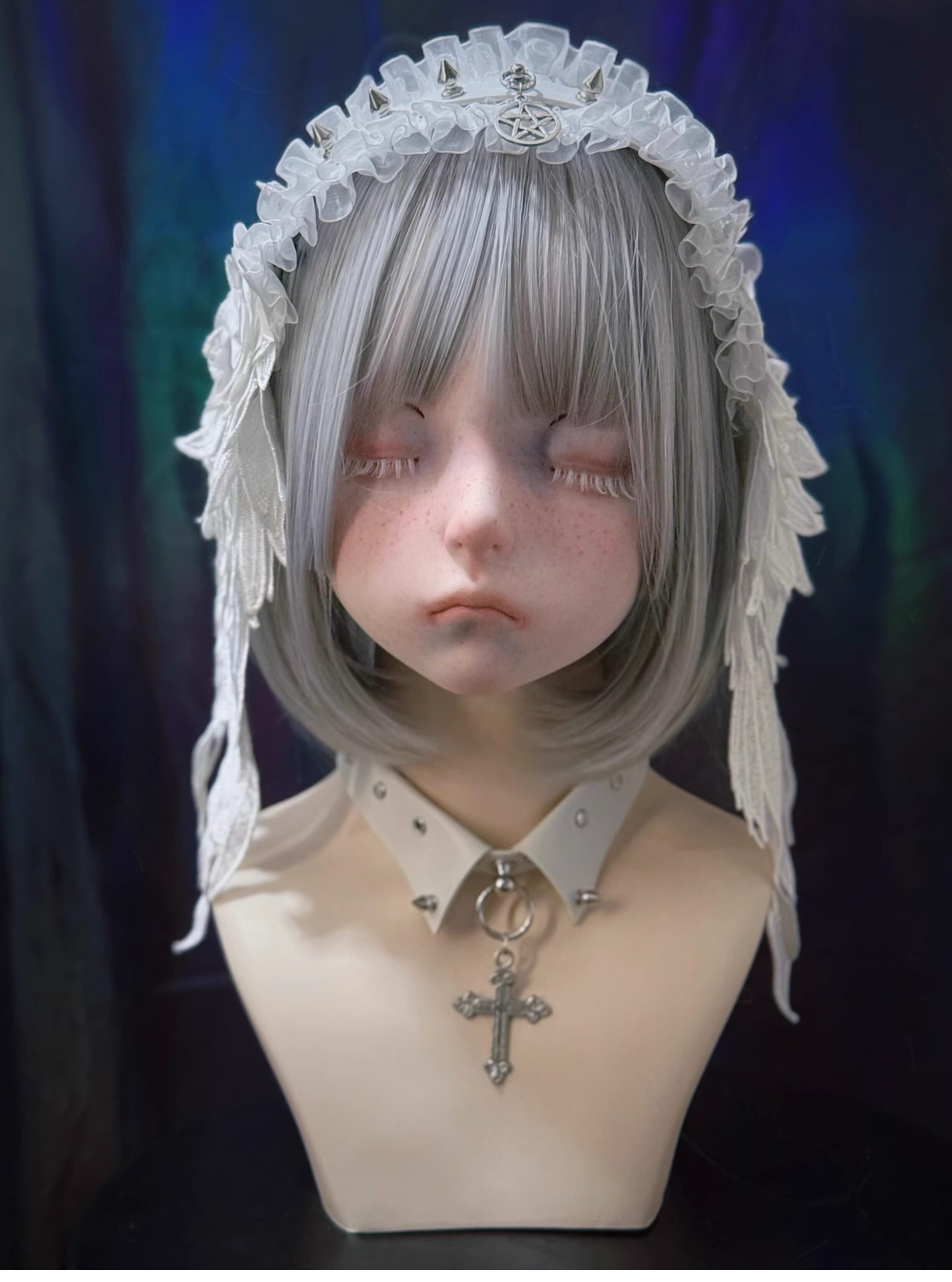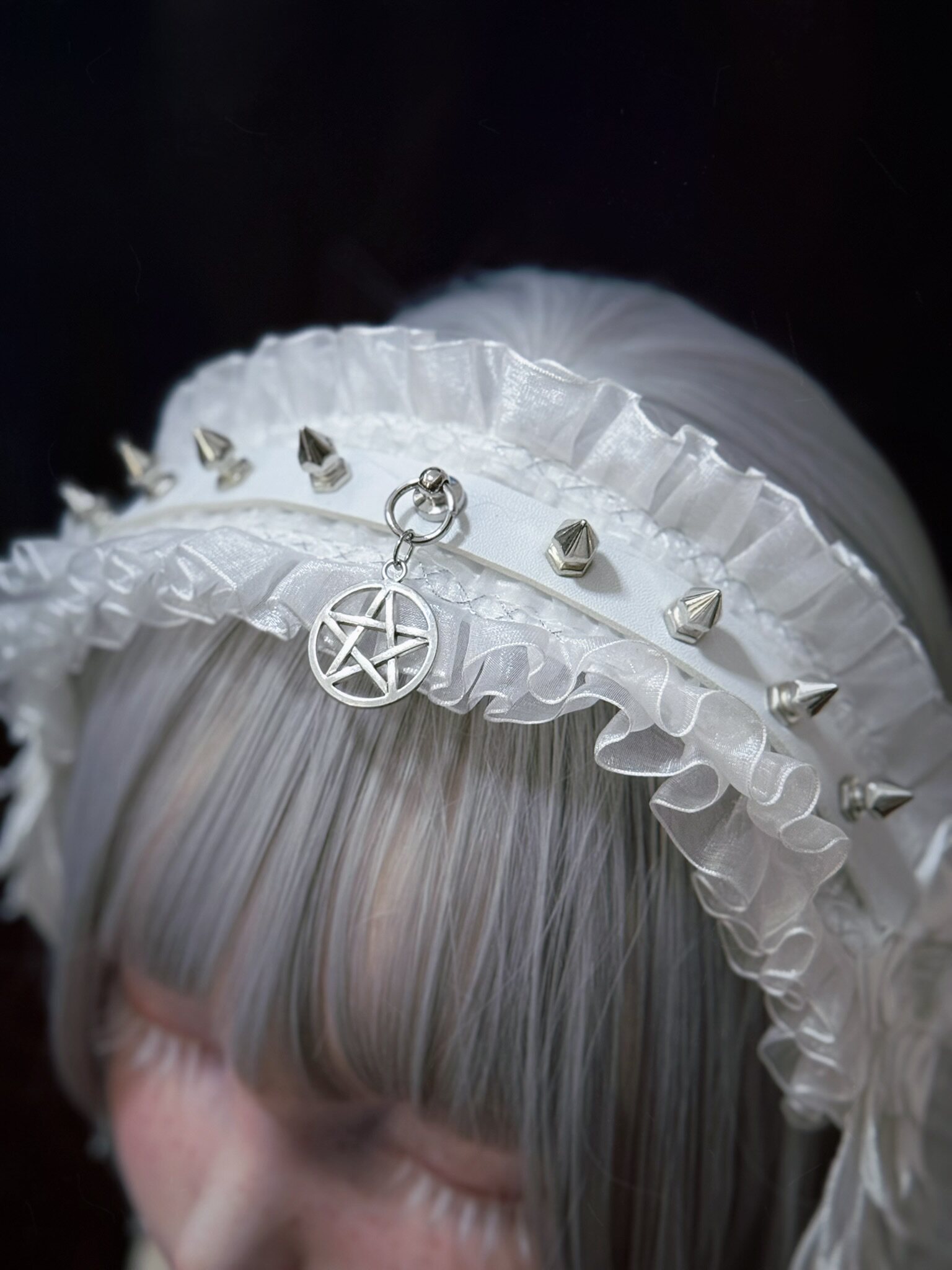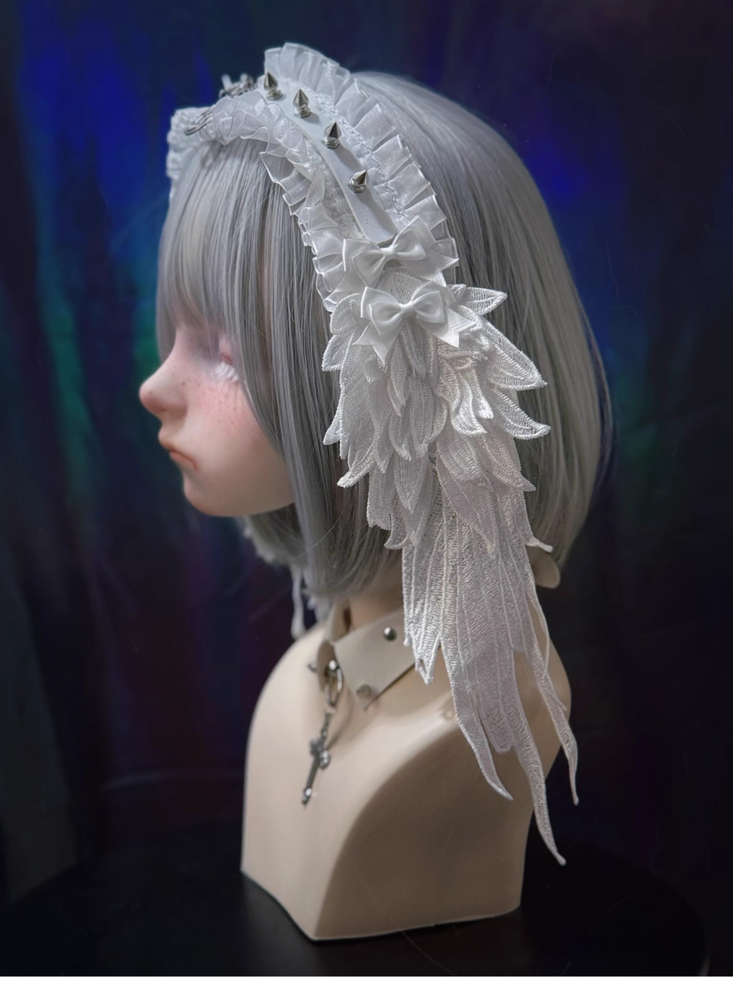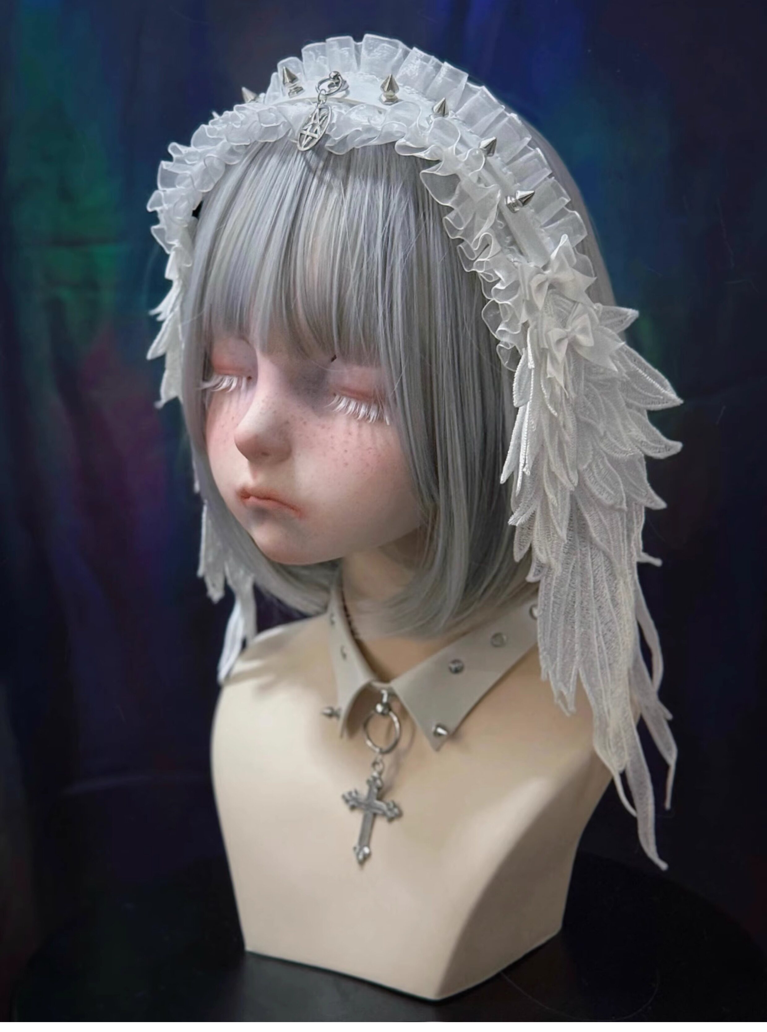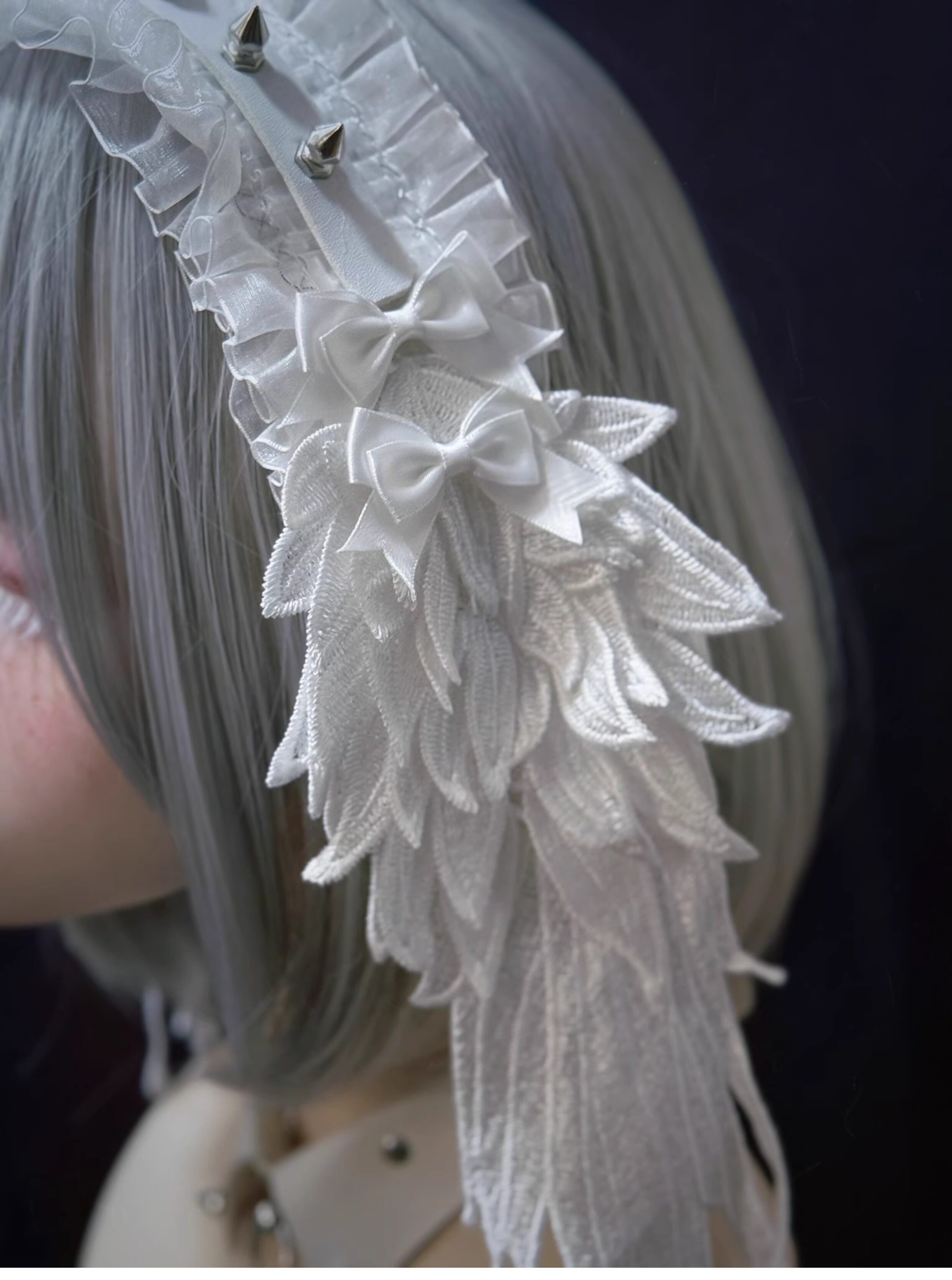 怪糖饰物集原创手工天使翅膀铆钉皮扣蕾丝发带暗黑系亚文化白色 [Original Page Link]