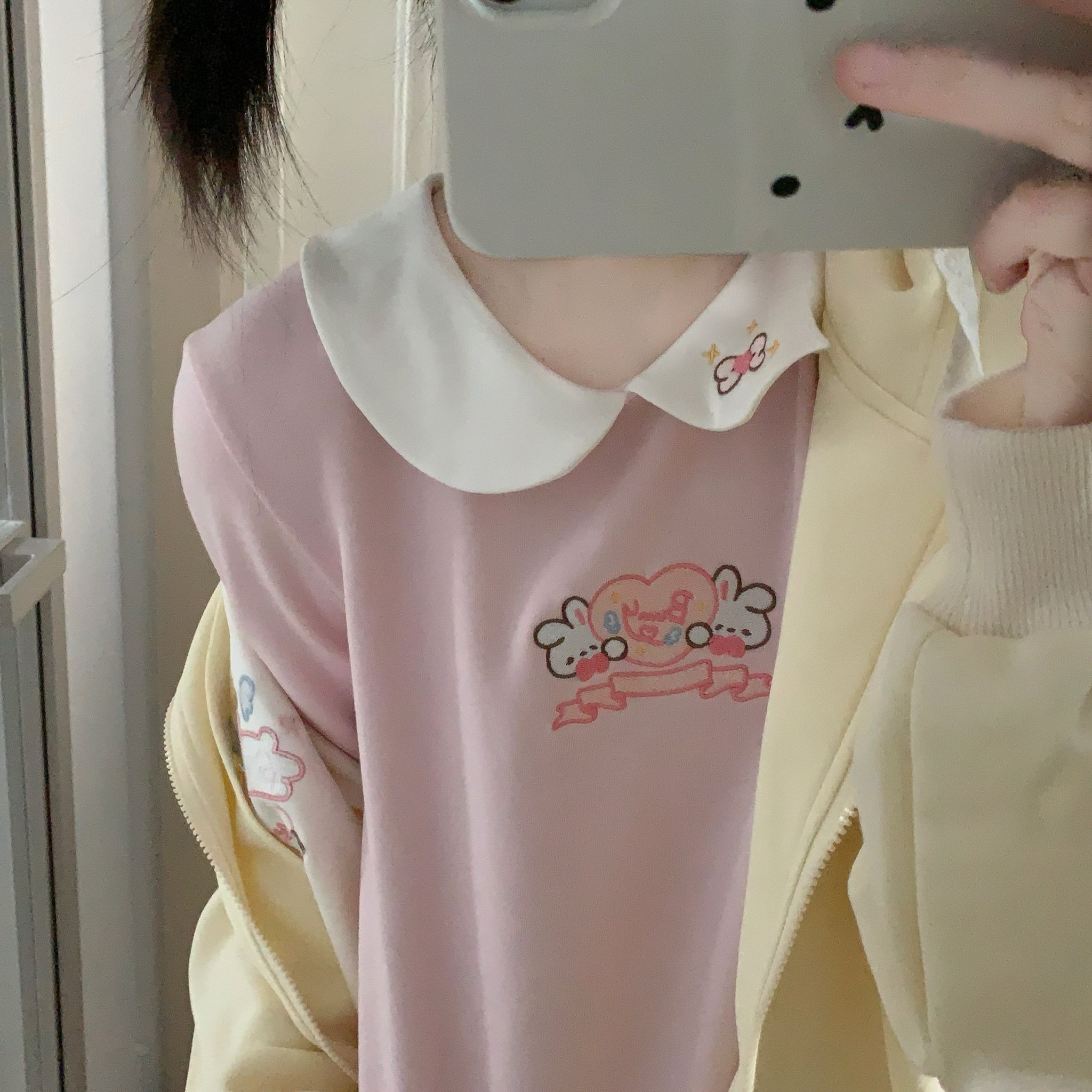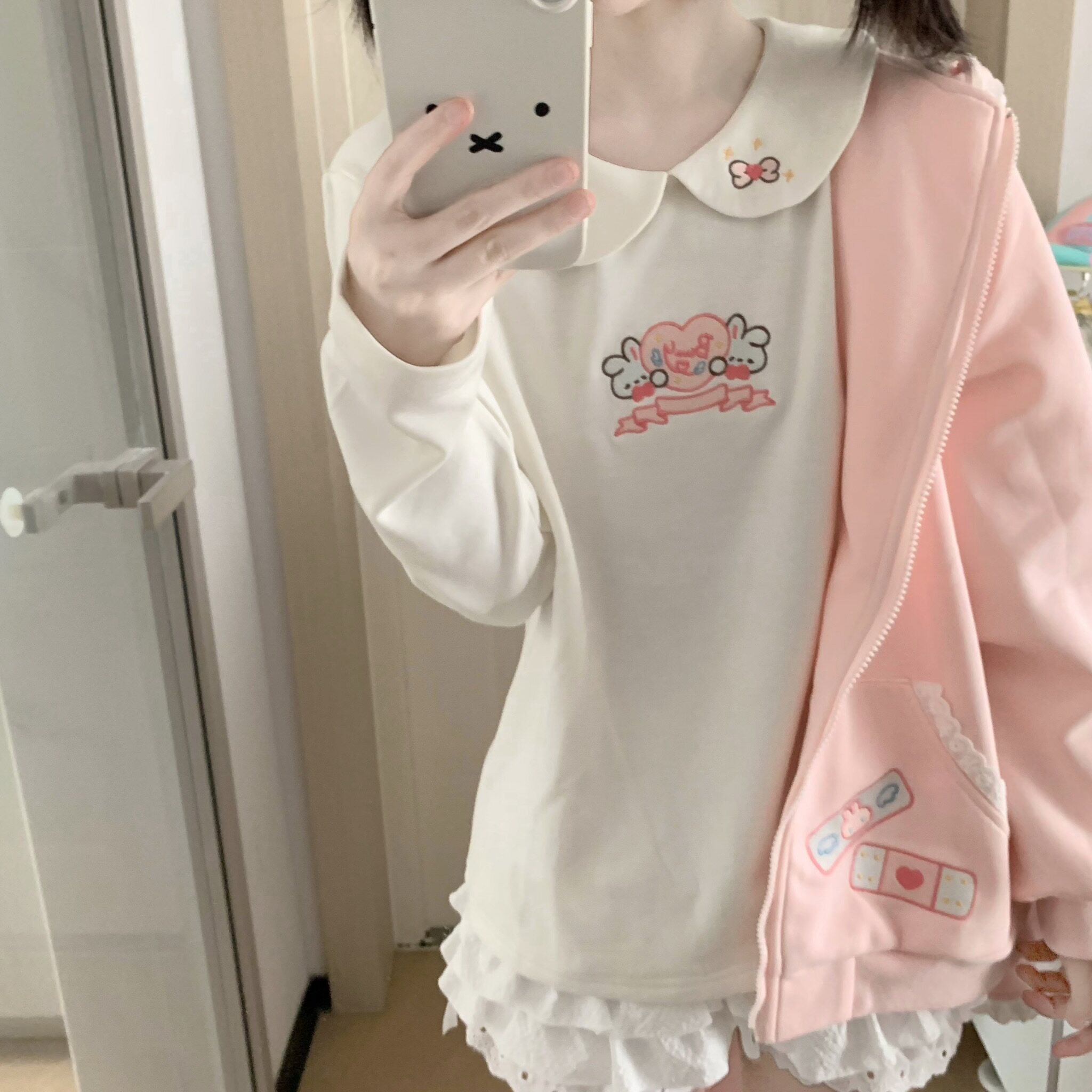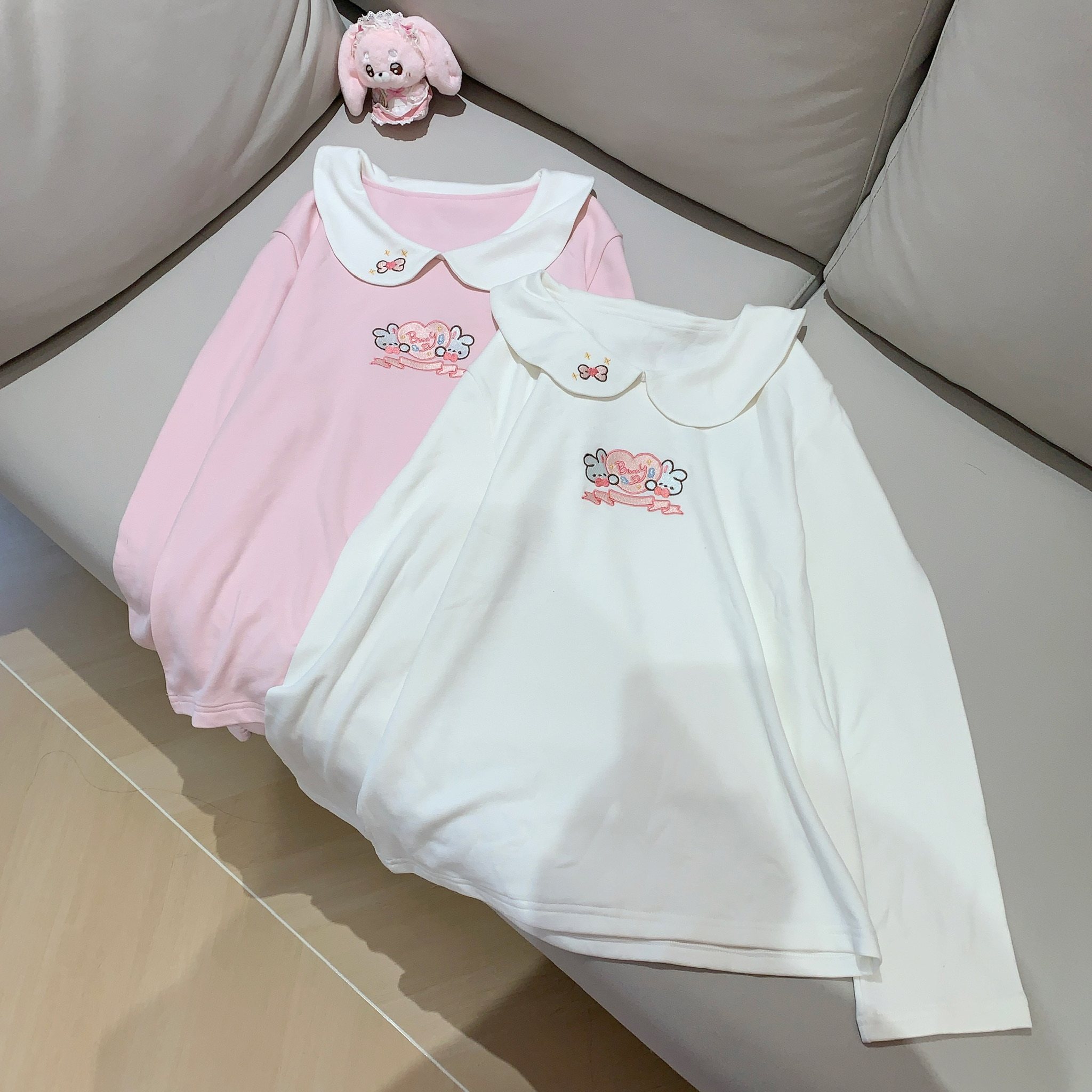 Qiuqiu's self-made versatile everyday Peter Pan collar base layer, fleece-lined for autumn and winter warmth, long-sleeved base layer.