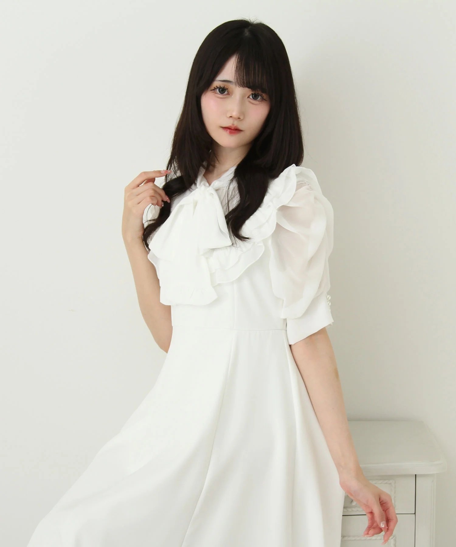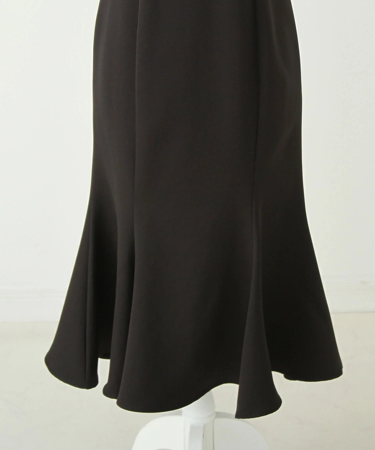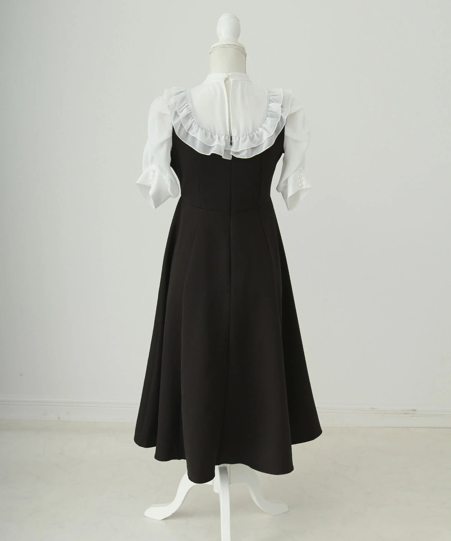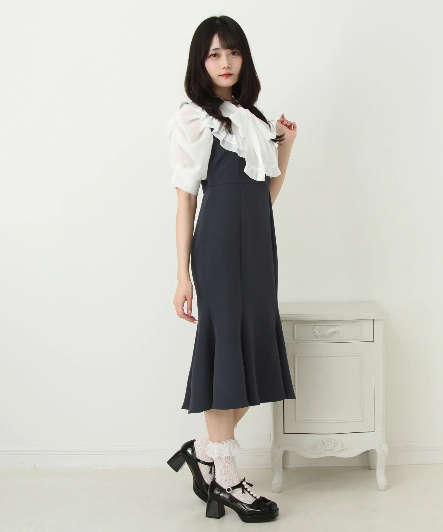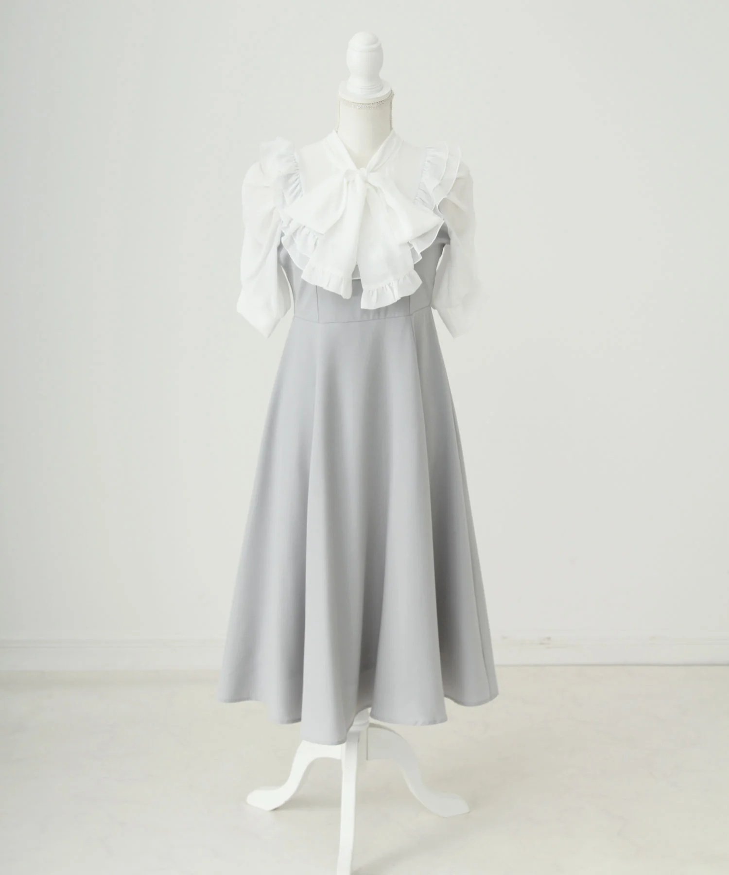 Japanese style new versatile and elegant dress with ruffled trim and large bow, mid-length fishtail dress.