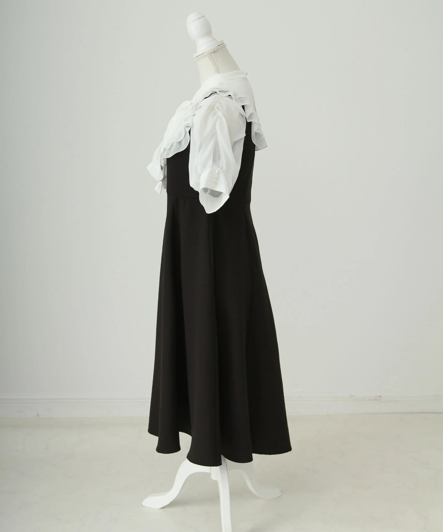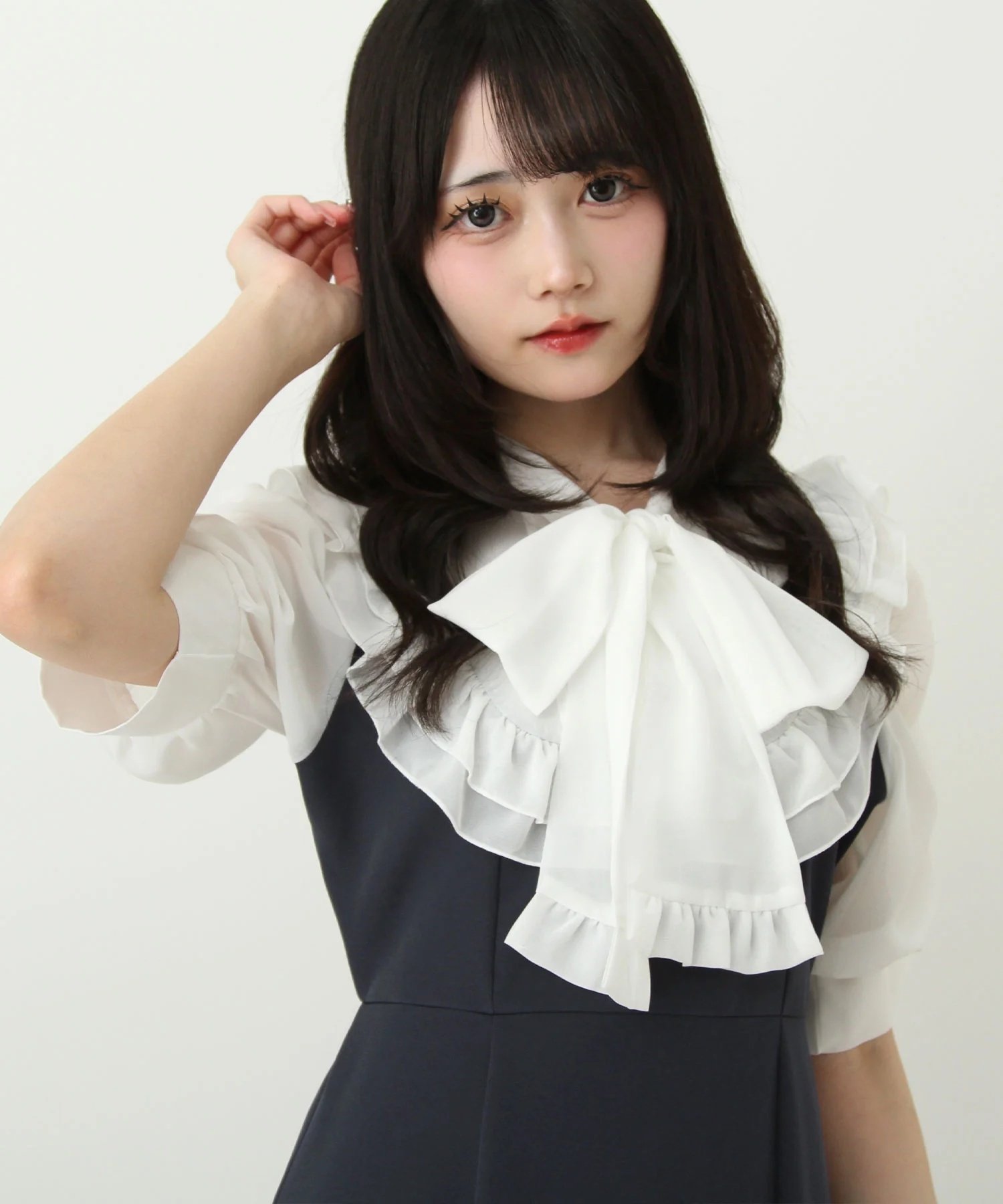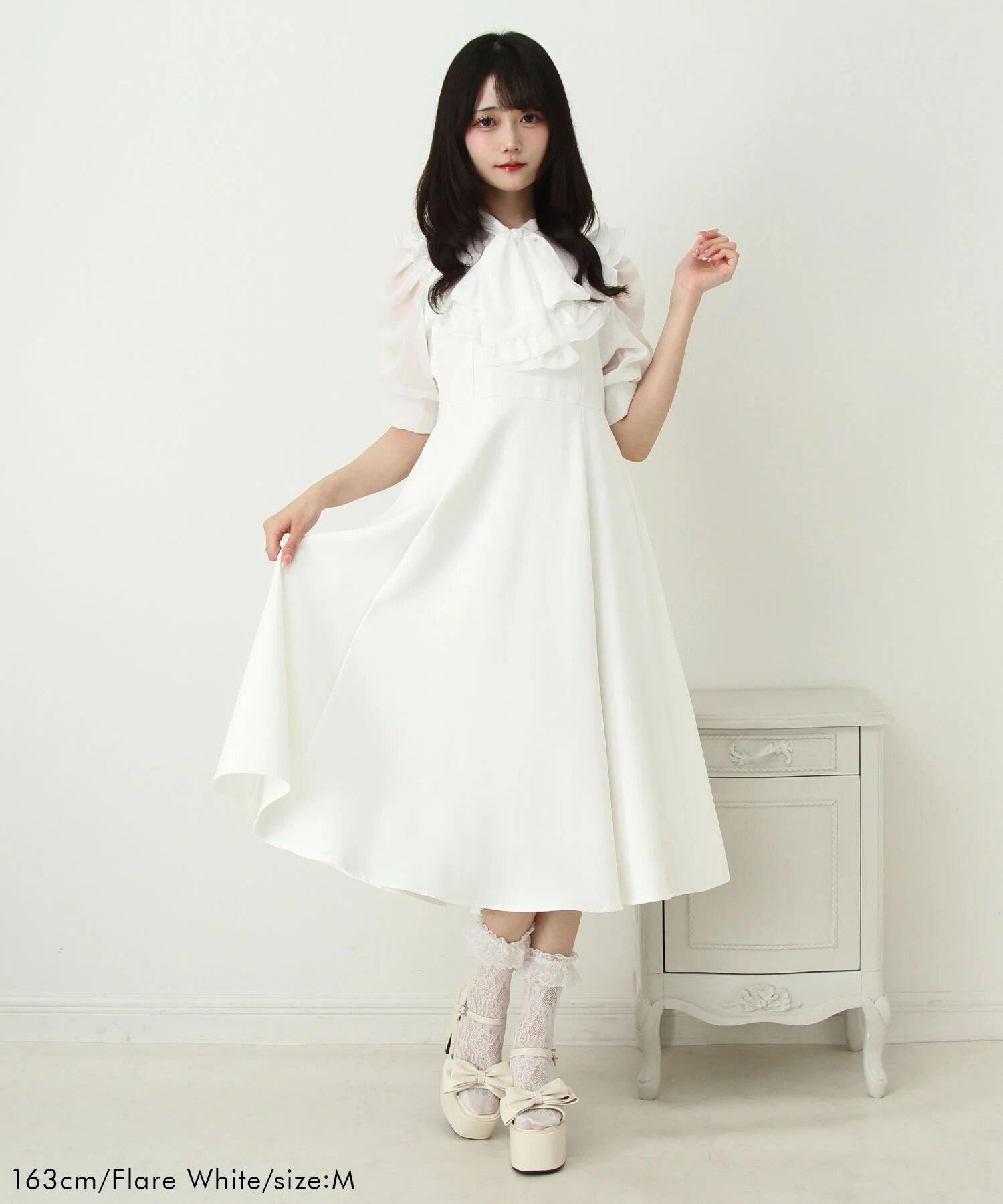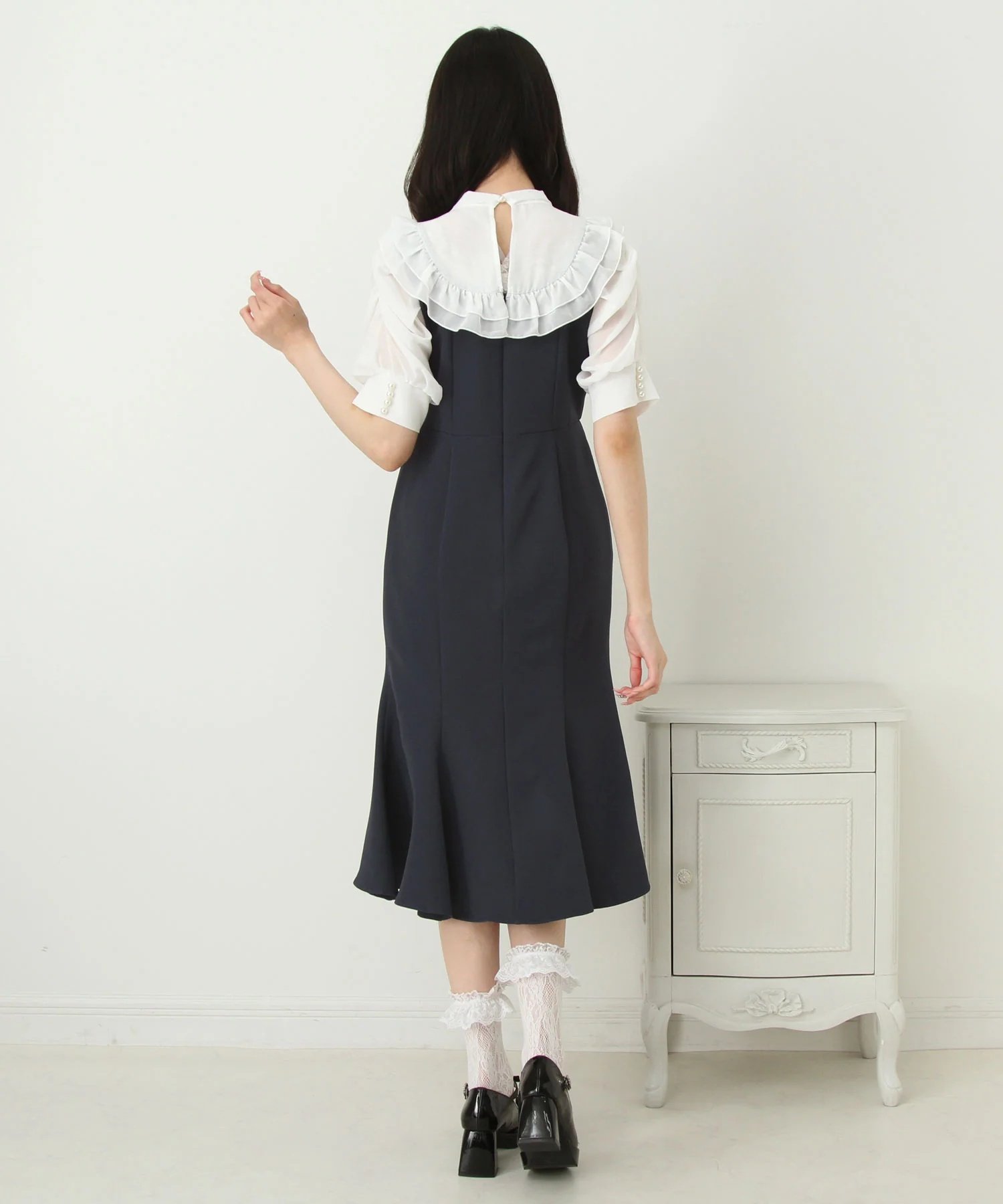 Japanese style new versatile and elegant dress with ruffled trim and large bow, mid-length fishtail dress.