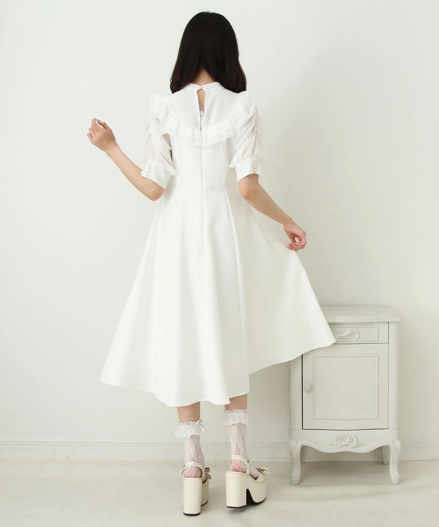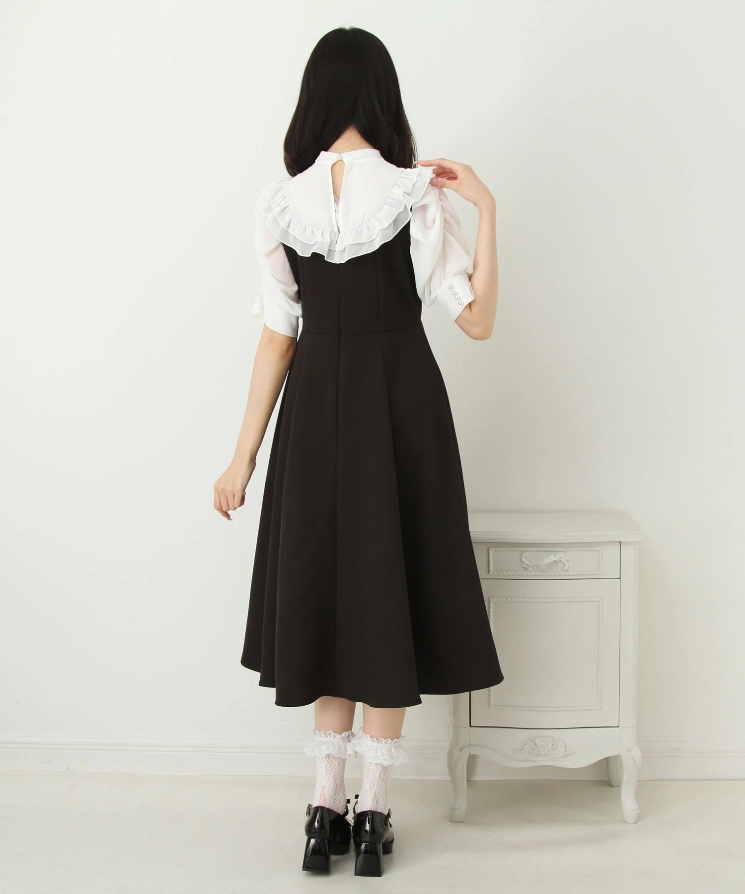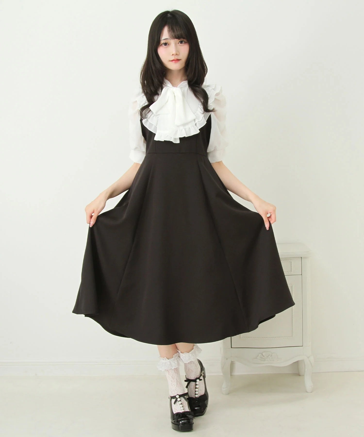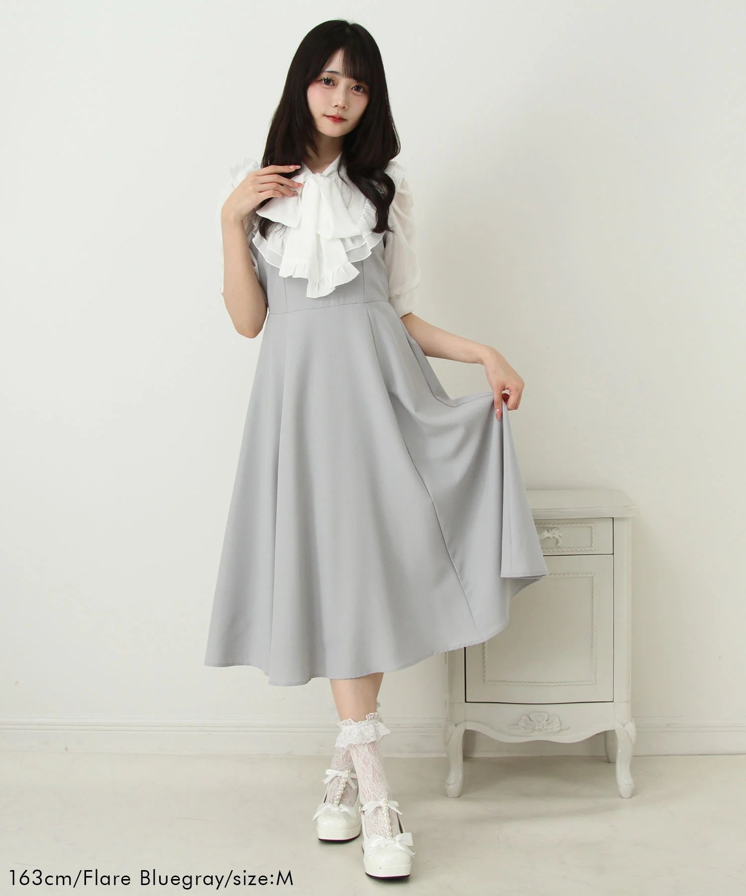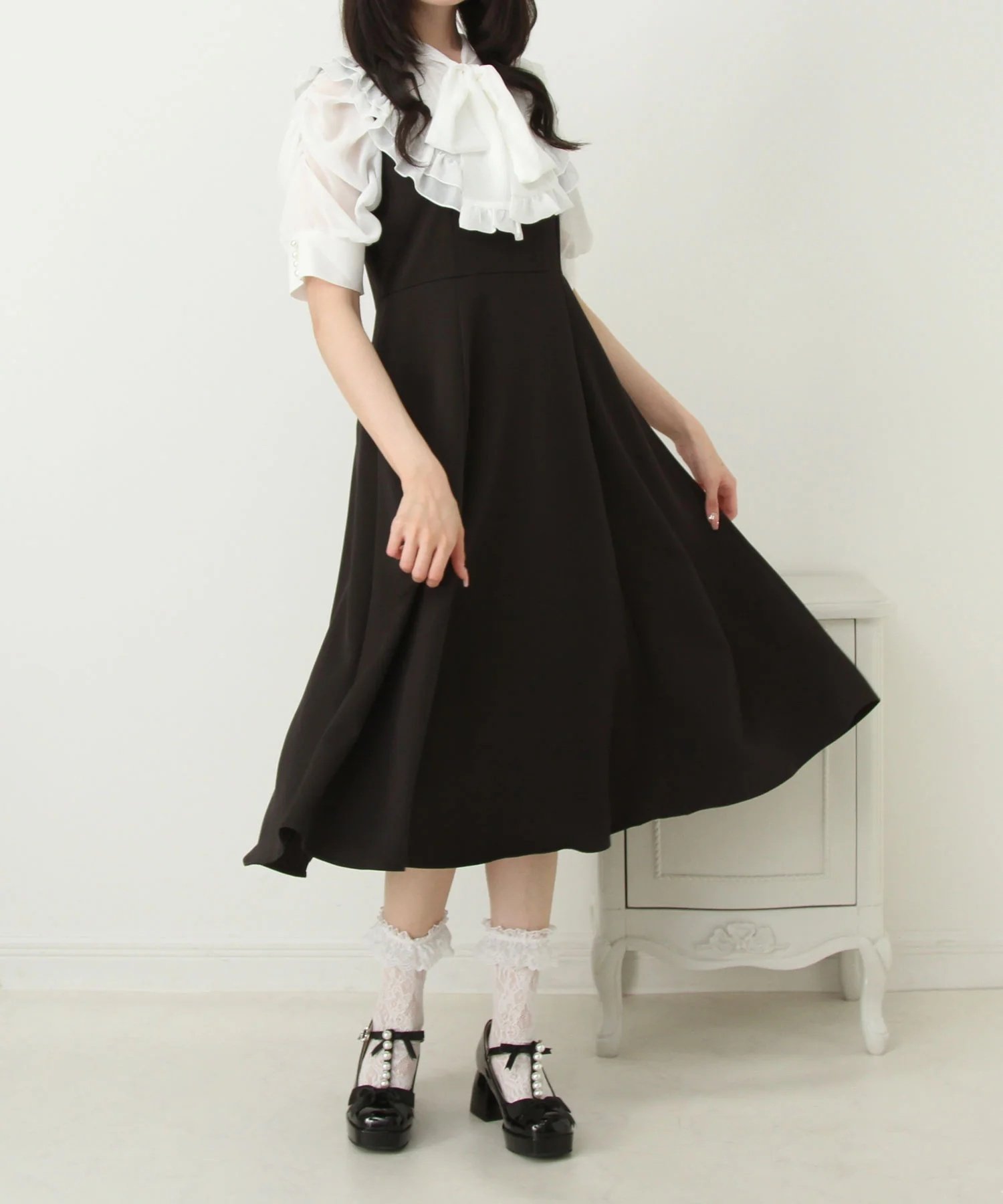 Japanese style new versatile and elegant dress with ruffled trim and large bow, mid-length fishtail dress.