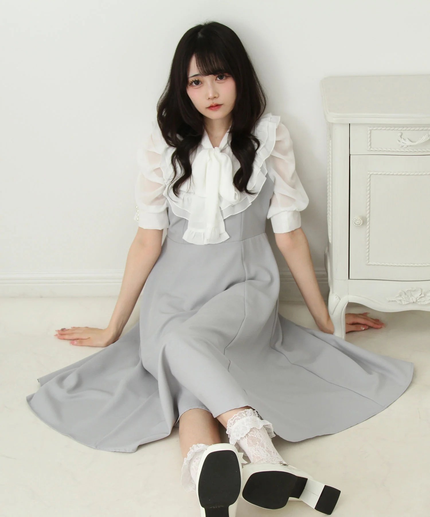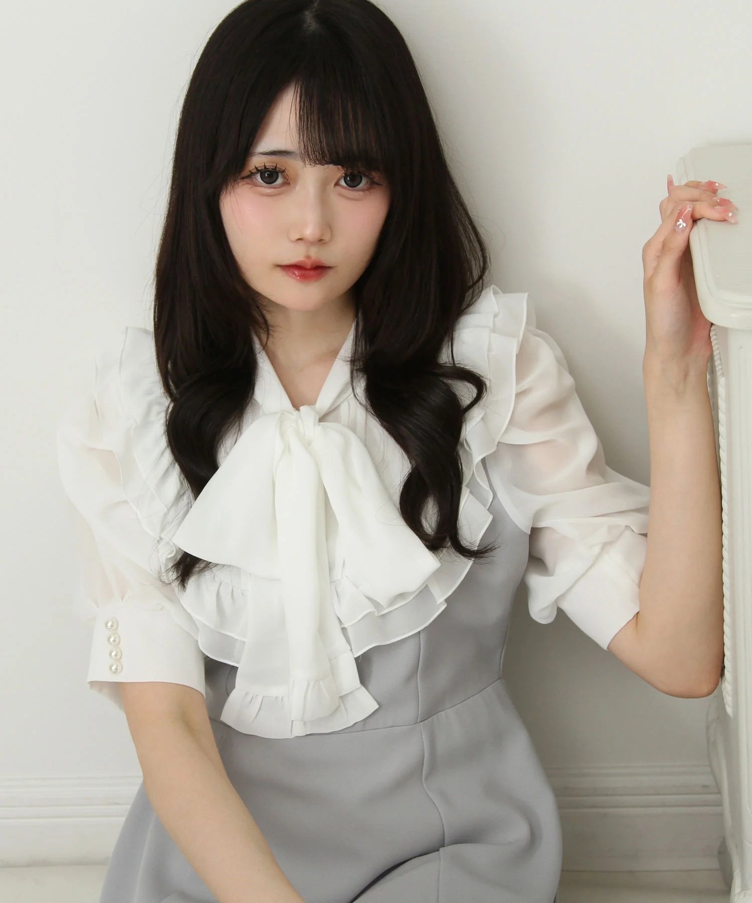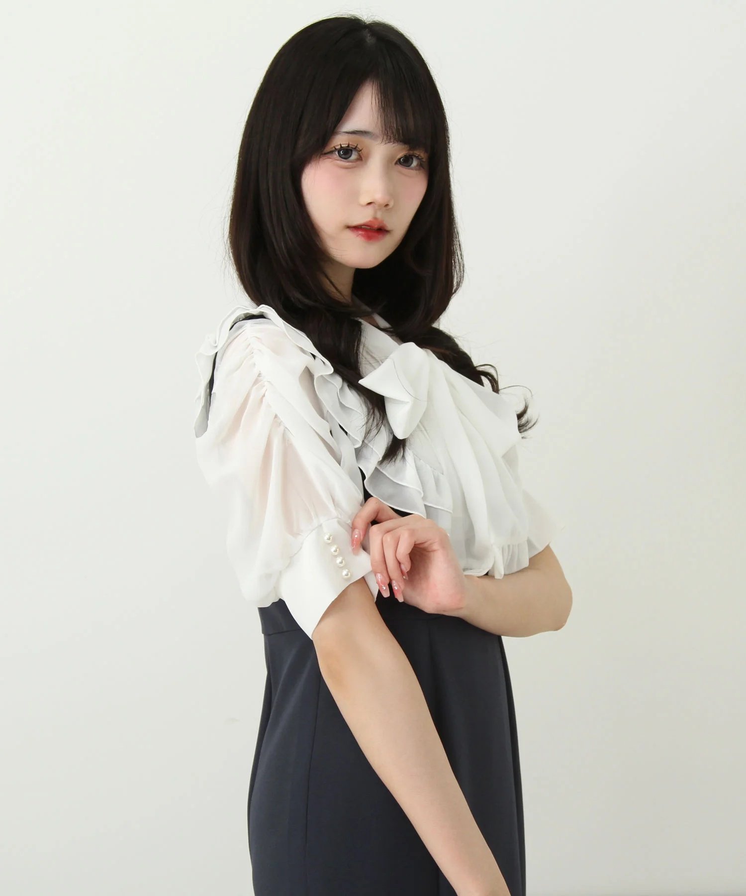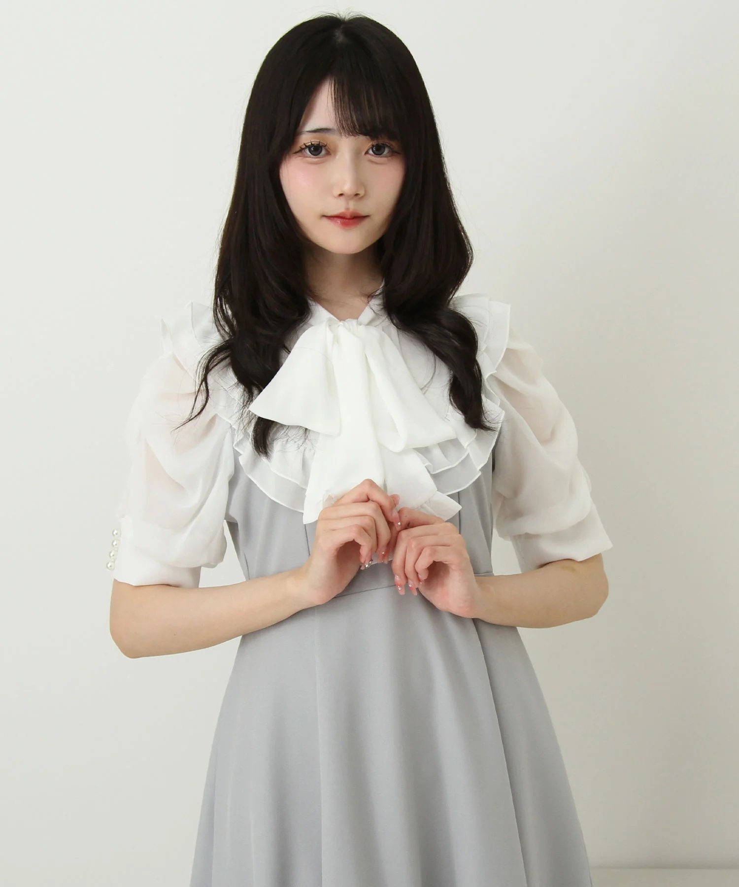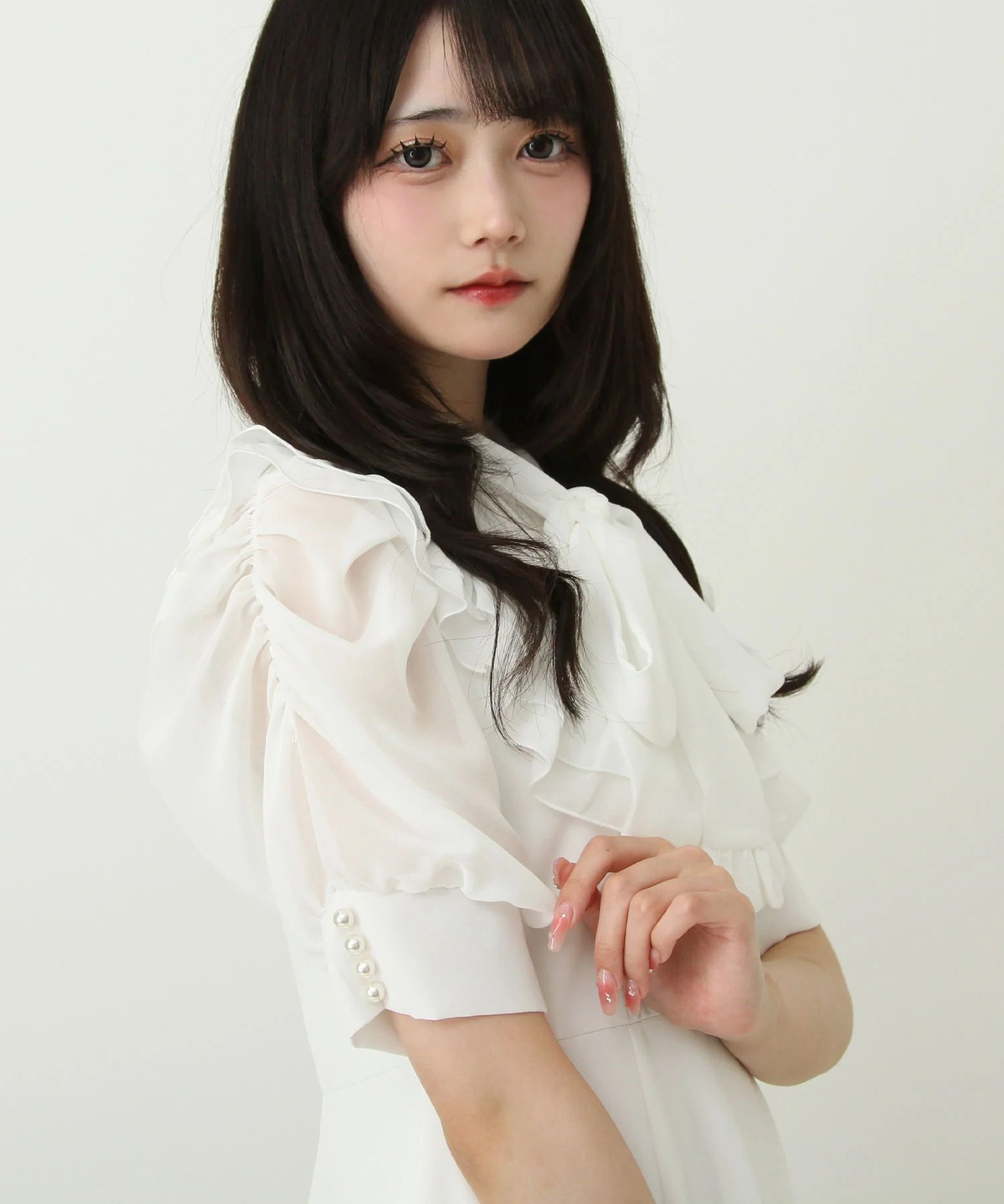 Japanese style new versatile and elegant dress with ruffled trim and large bow, mid-length fishtail dress.