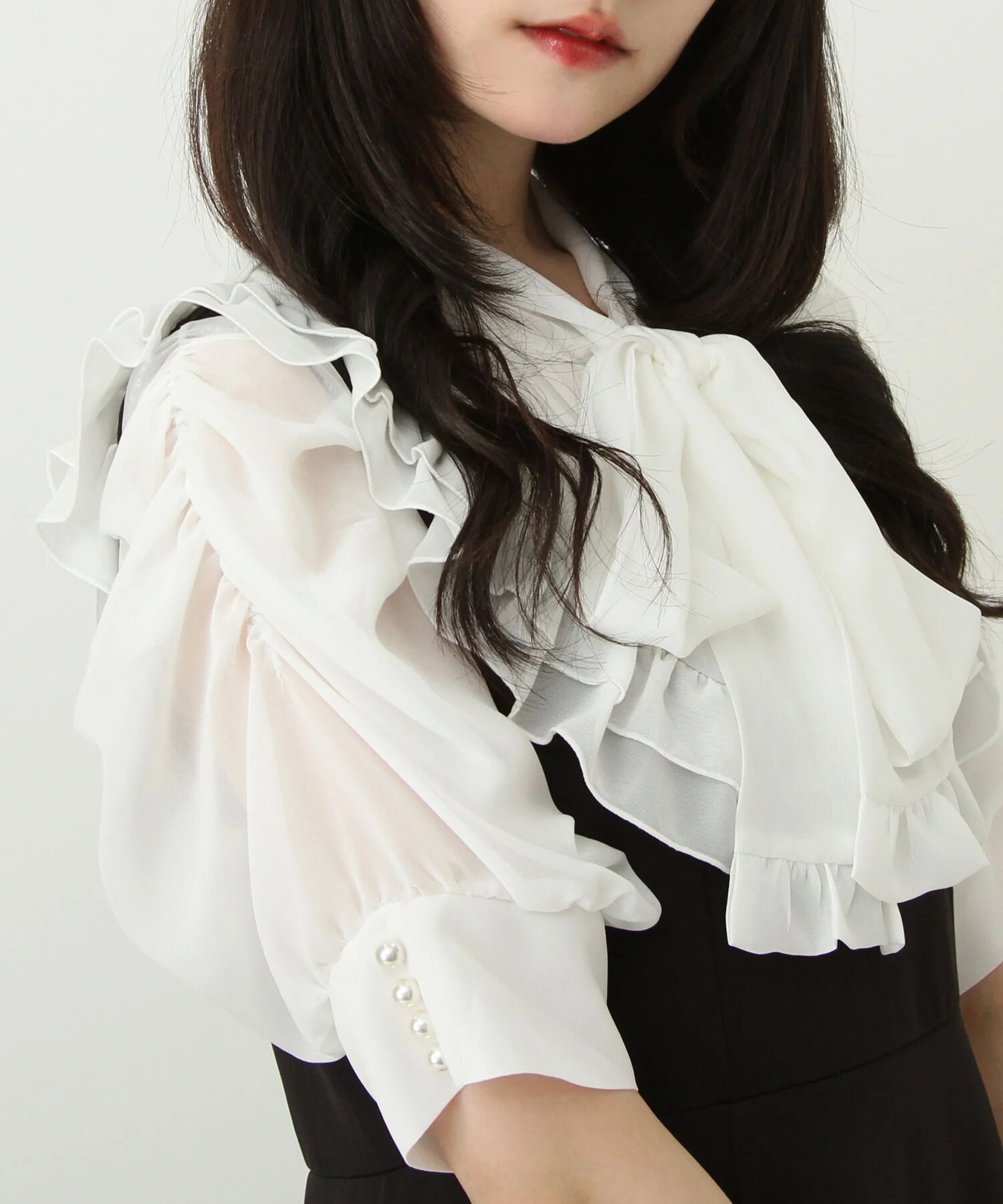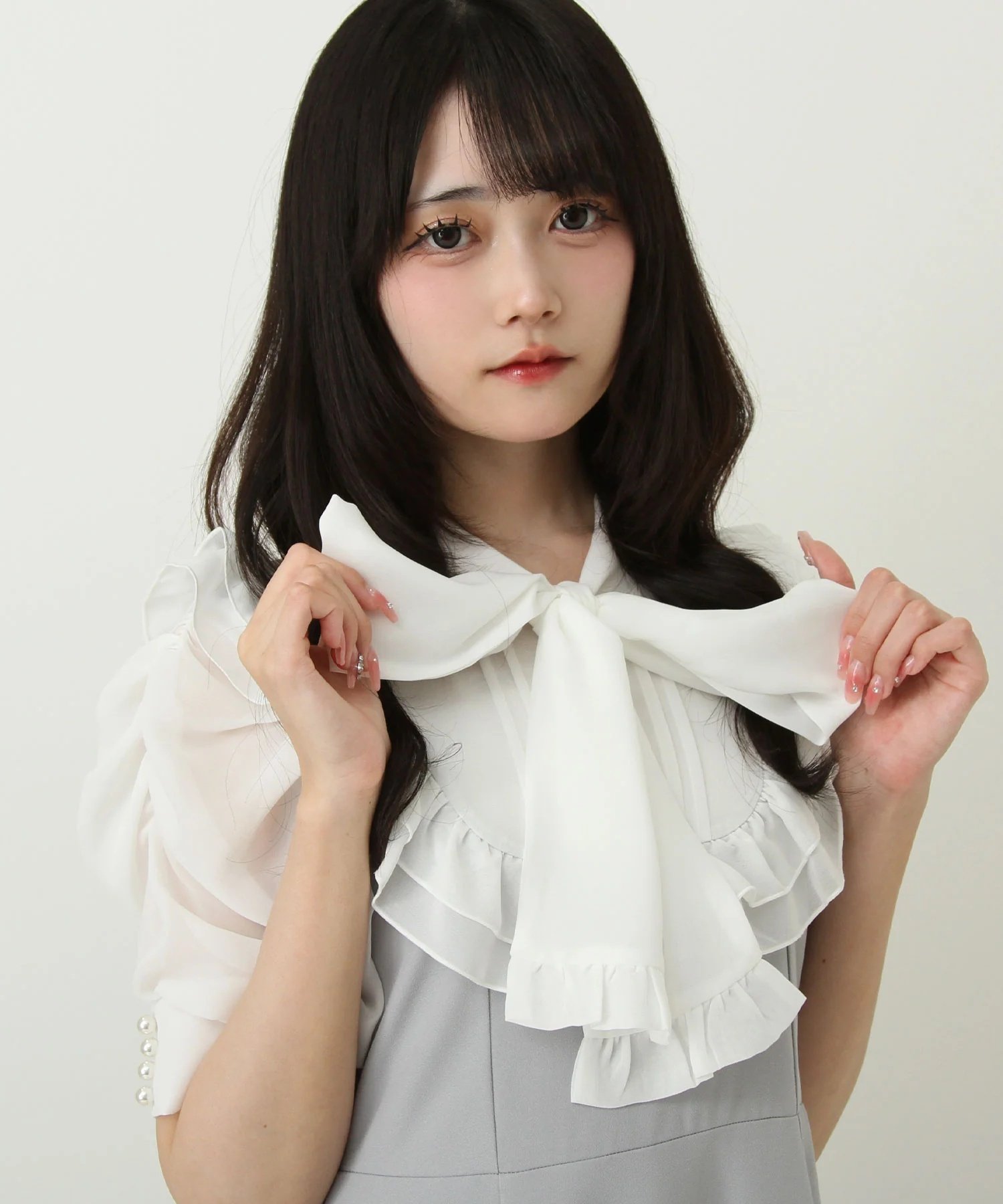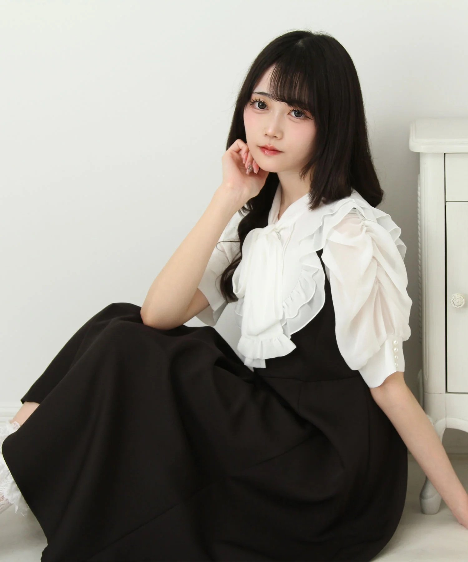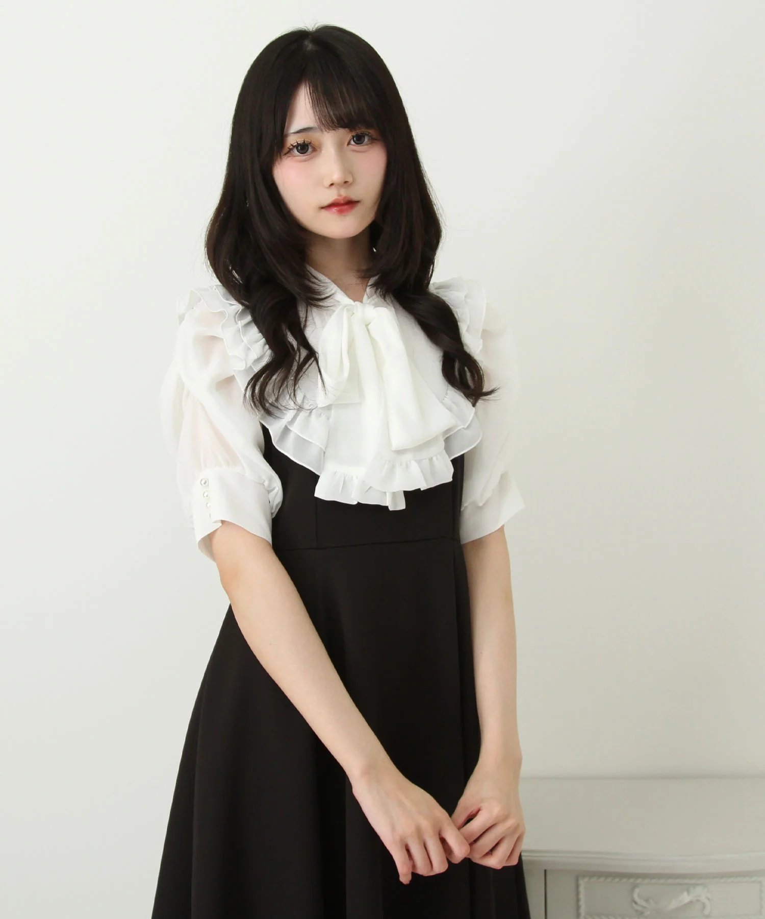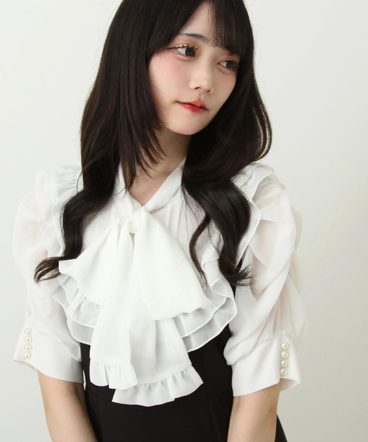 Japanese style new versatile and elegant dress with ruffled trim and large bow, mid-length fishtail dress.