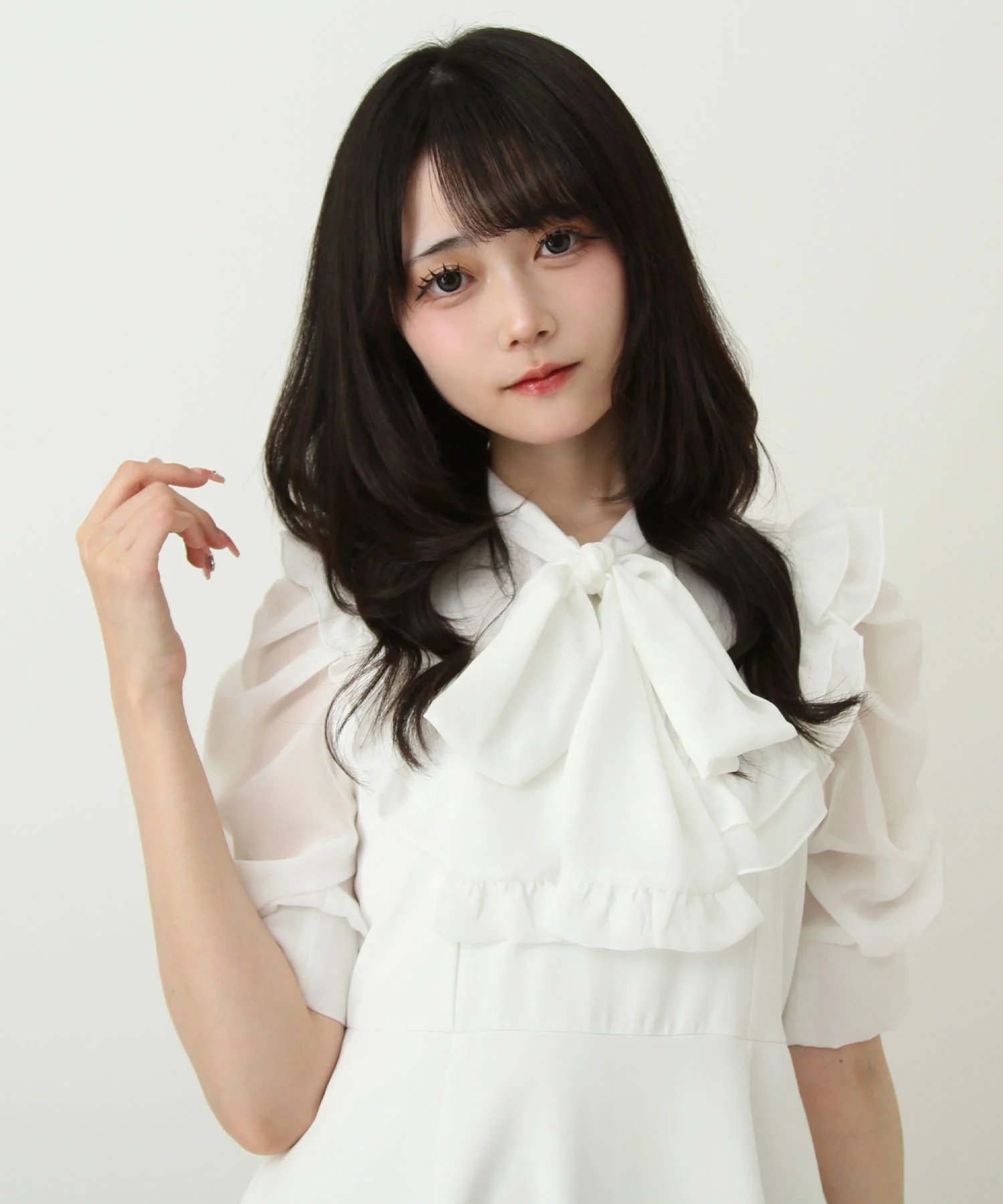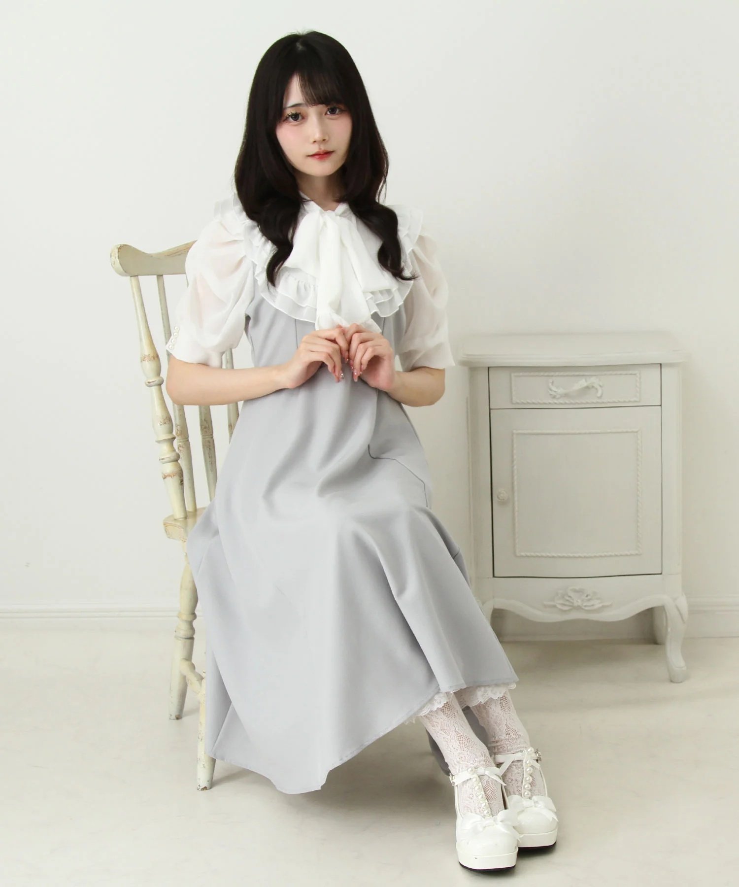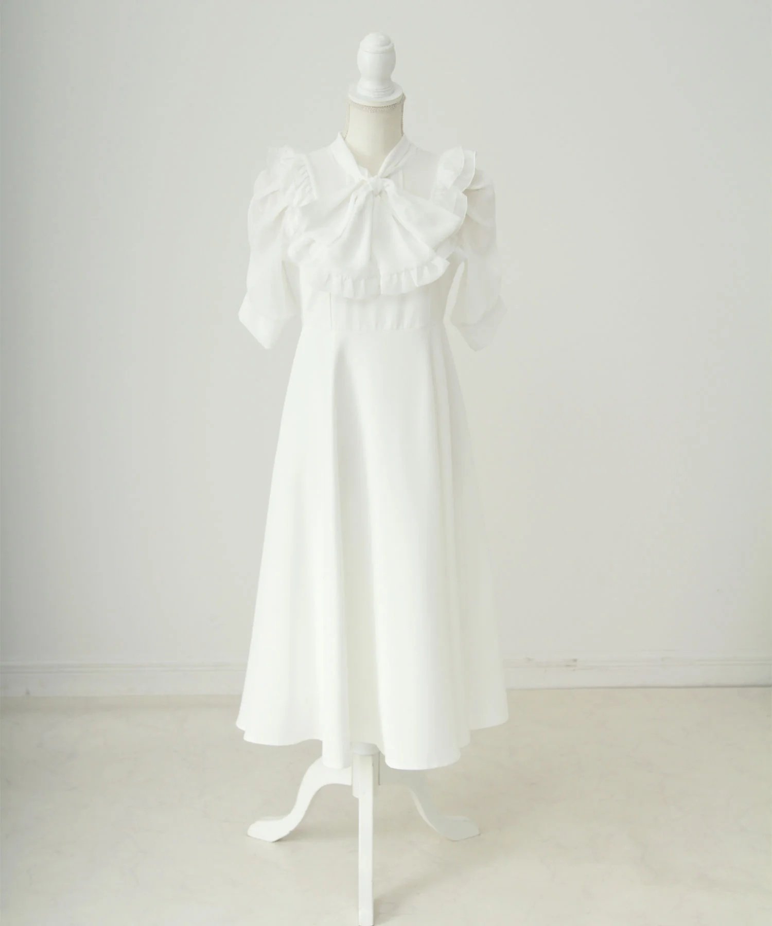 日系新款百搭气质款连衣裙木耳边大蝴蝶结中长款鱼尾连衣裙长裙 [Original Page Link]