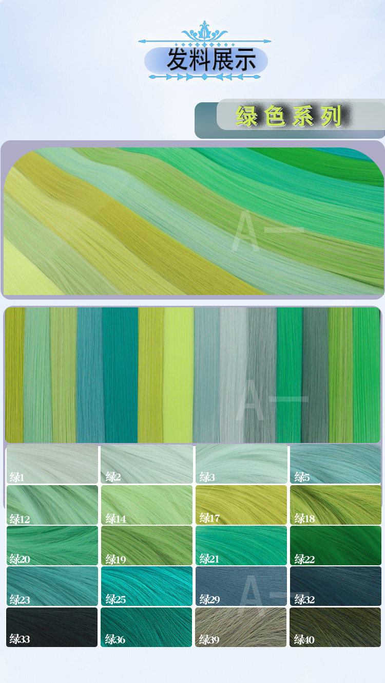 【A1】Green multi-purpose wig hair material for cosplay anime hair extensions, BJD hairpieces, high-temperature silky green and light green
