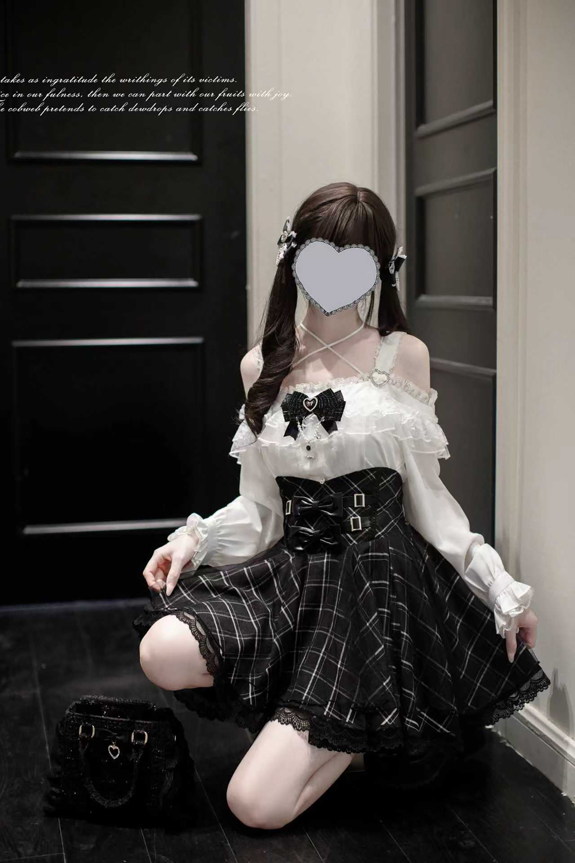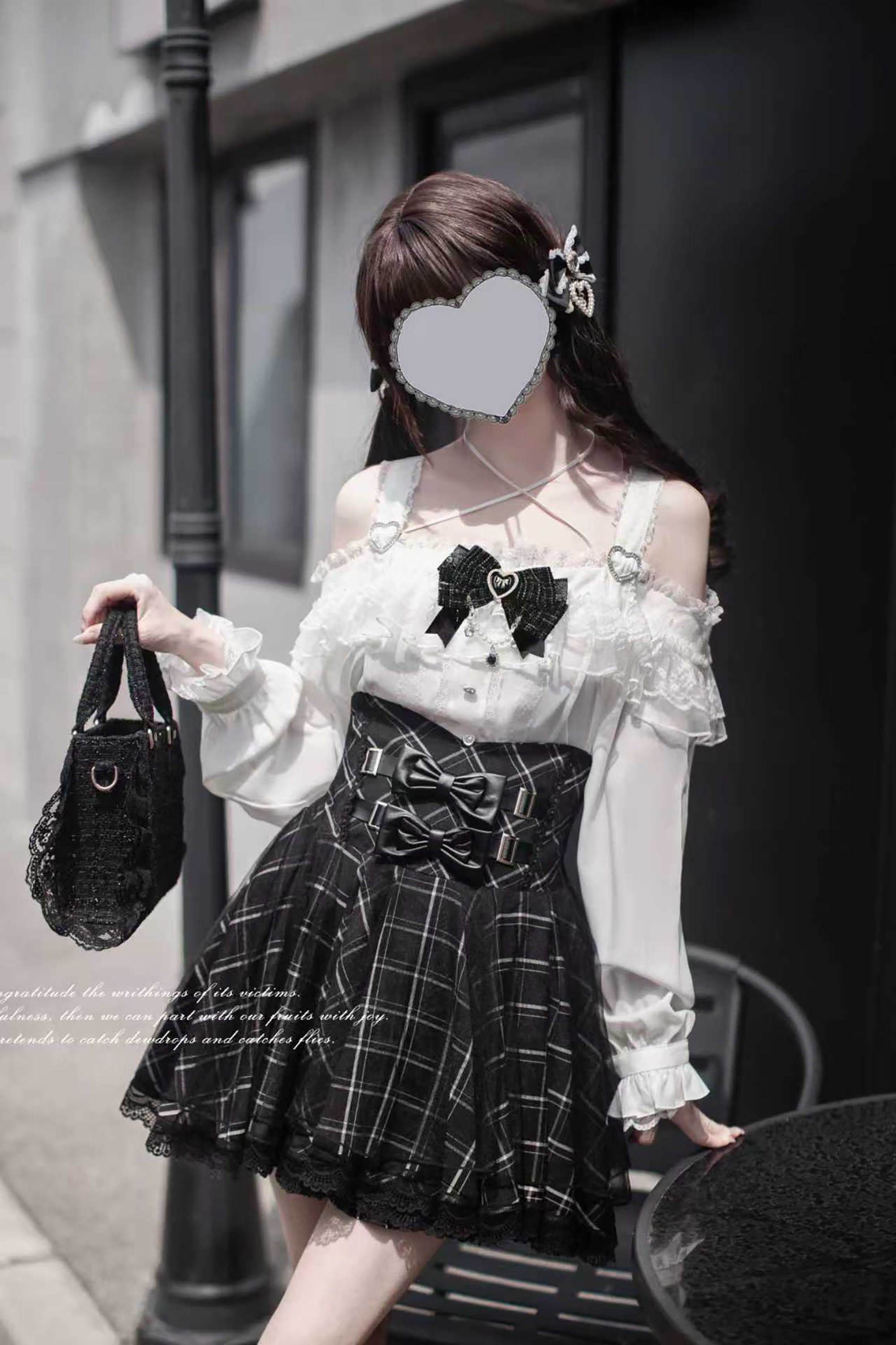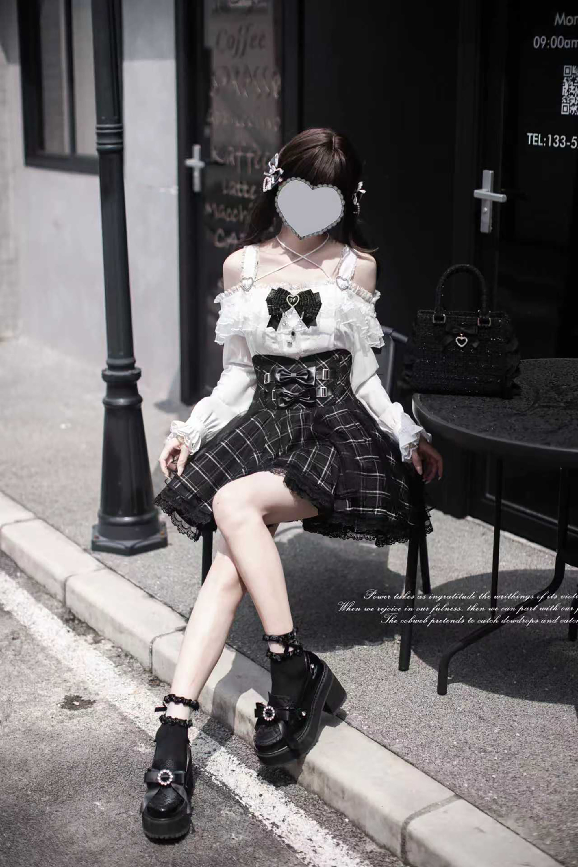 Walnut Wood JK [Sixteen Nights] Original Lace Outfit Mass Production Japanese Subculture Black and White Long-Sleeved Plaid Skirt