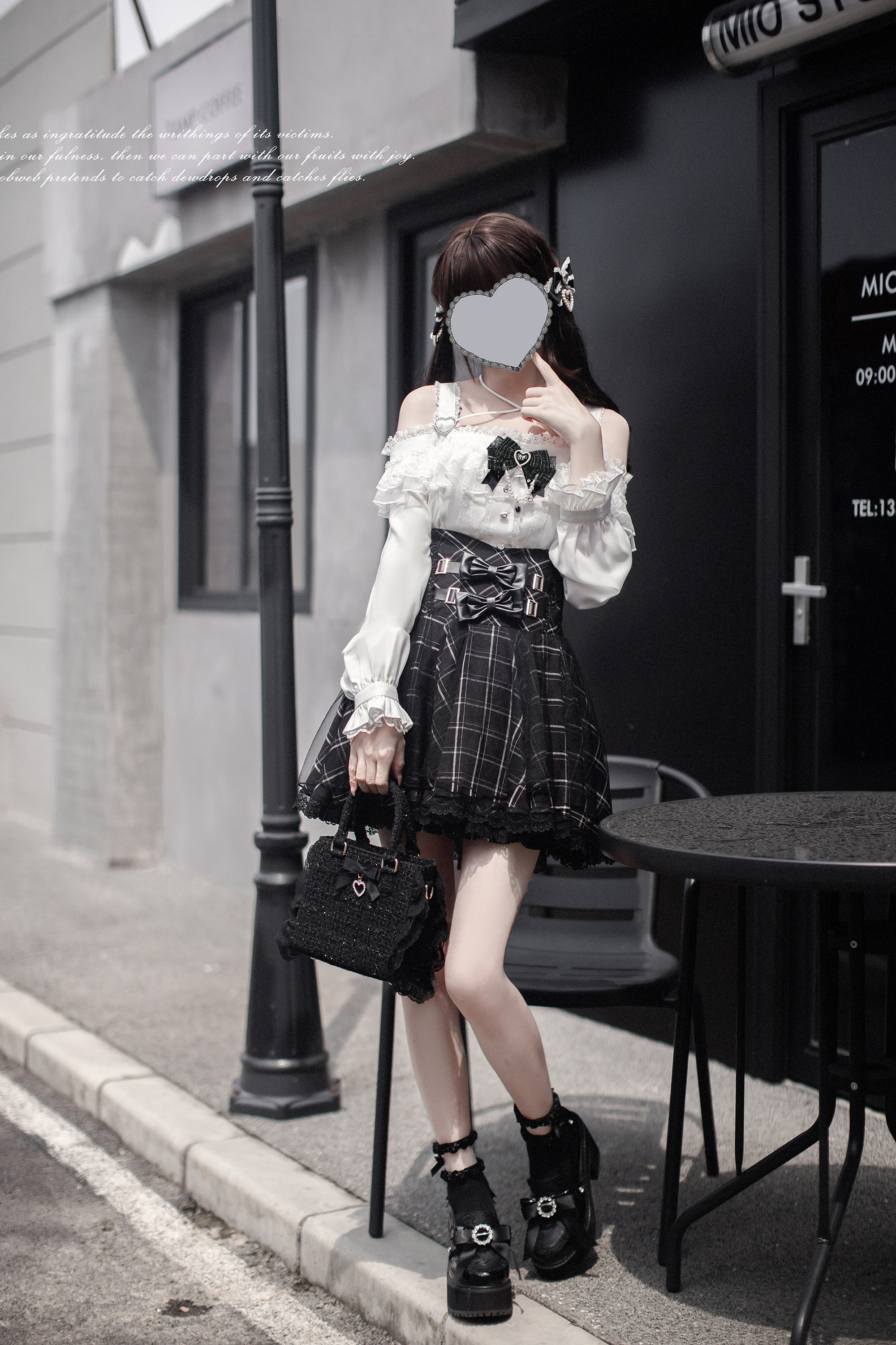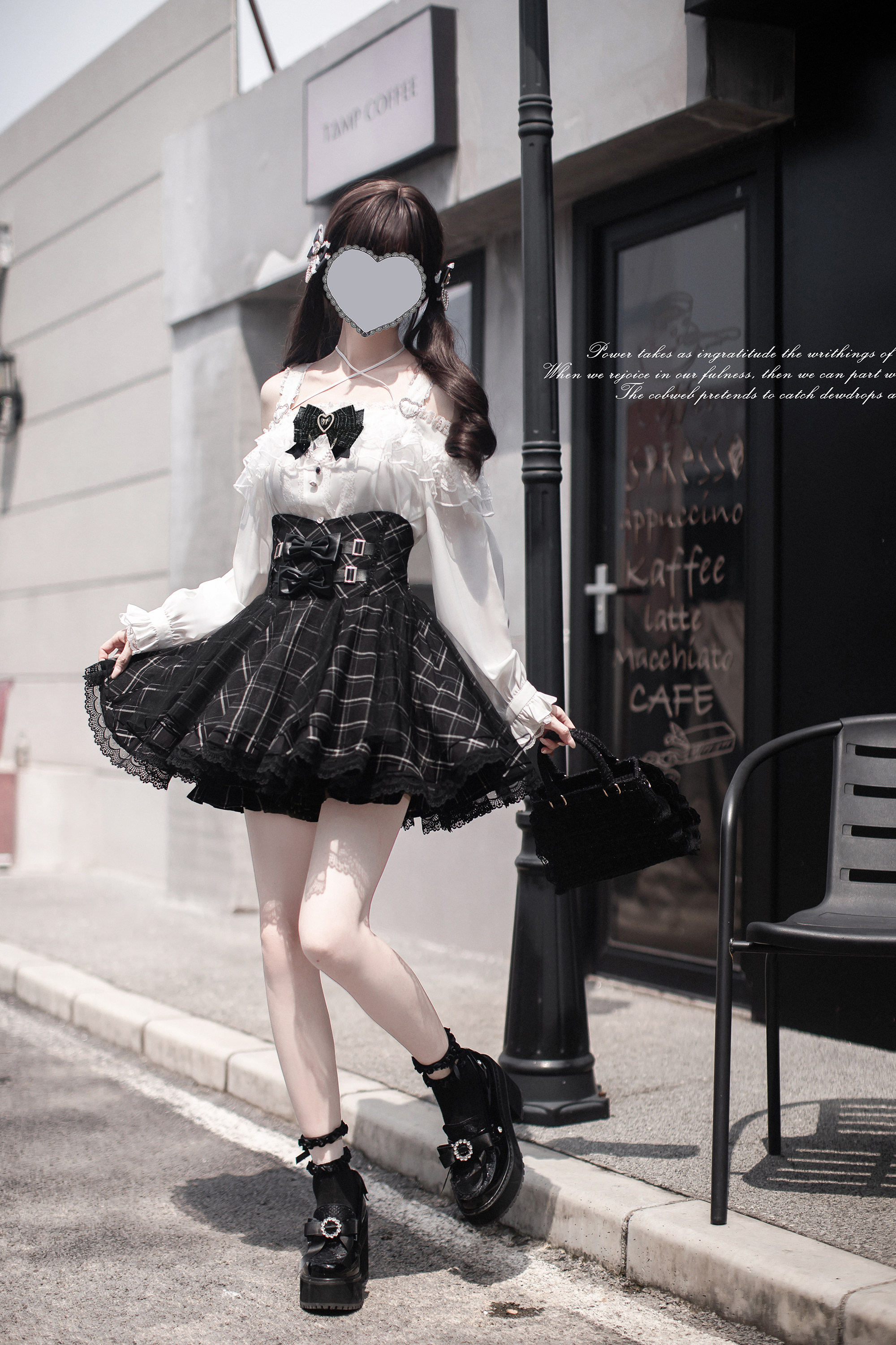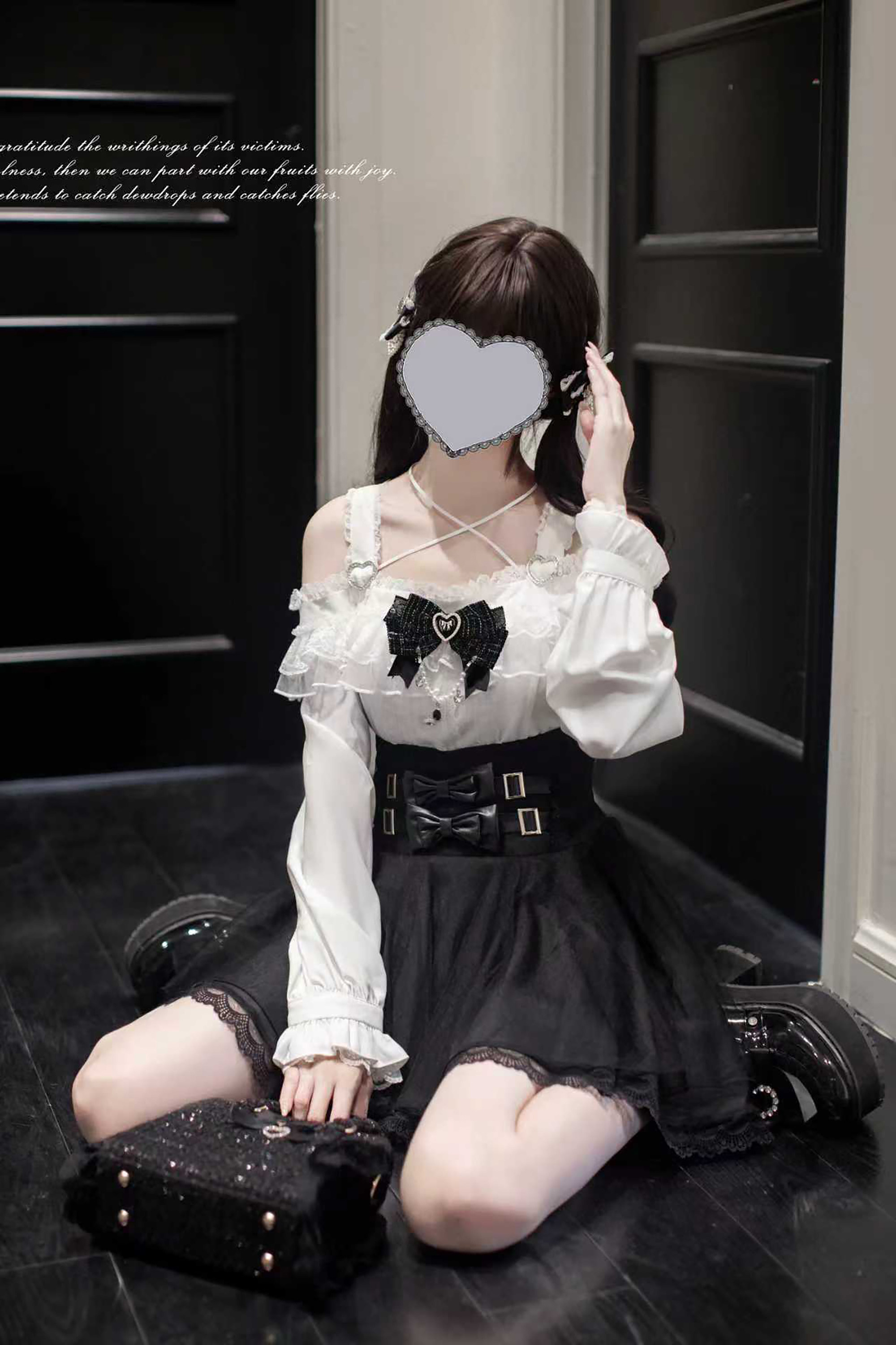 Walnut Wood JK [Sixteen Nights] Original Lace Outfit Mass Production Japanese Subculture Black and White Long-Sleeved Plaid Skirt