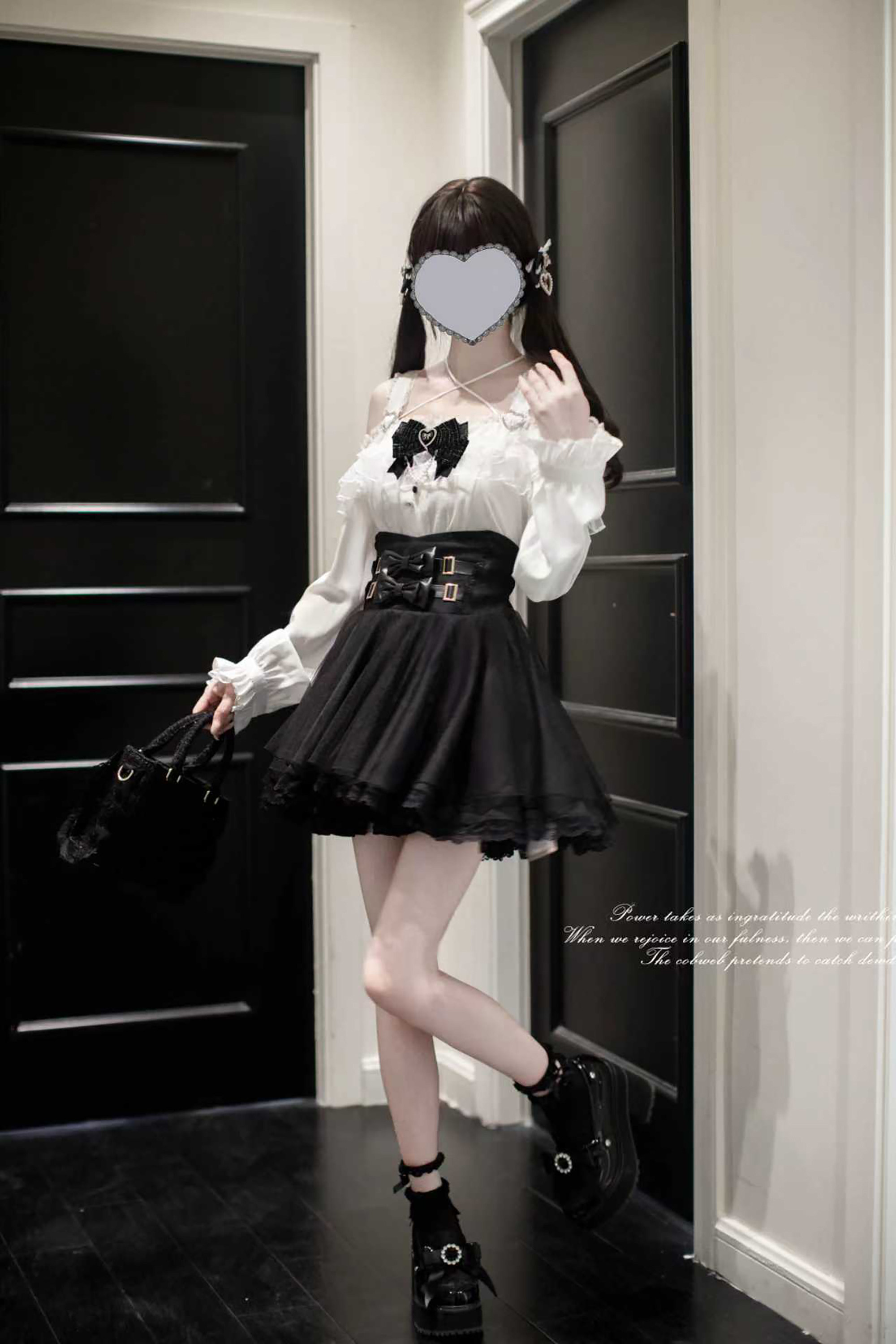 胡桃木JK【十六夜】原创蕾服量产型日系亚文化黑白长袖格子半裙 [Original Page Link]