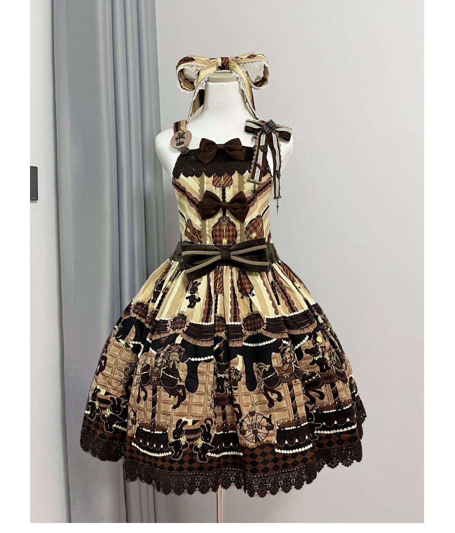 Infanta Lolita Chocolate Wooden Horse Pure Cotton Overall Dress Lolita Full Payment Available in Stock