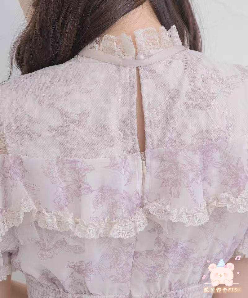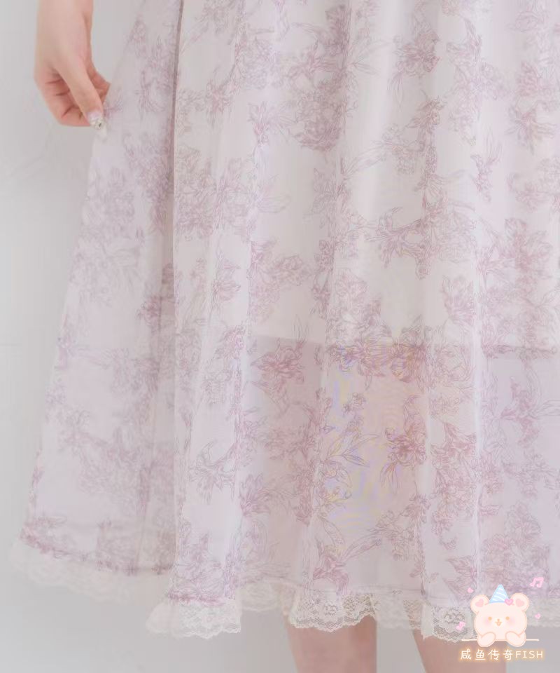 Salty Fish Legend RJ Original D Summer New Sweet Mass Production Clear Commuting Heiress Floral Print Long Dress