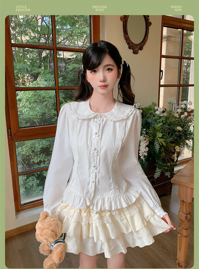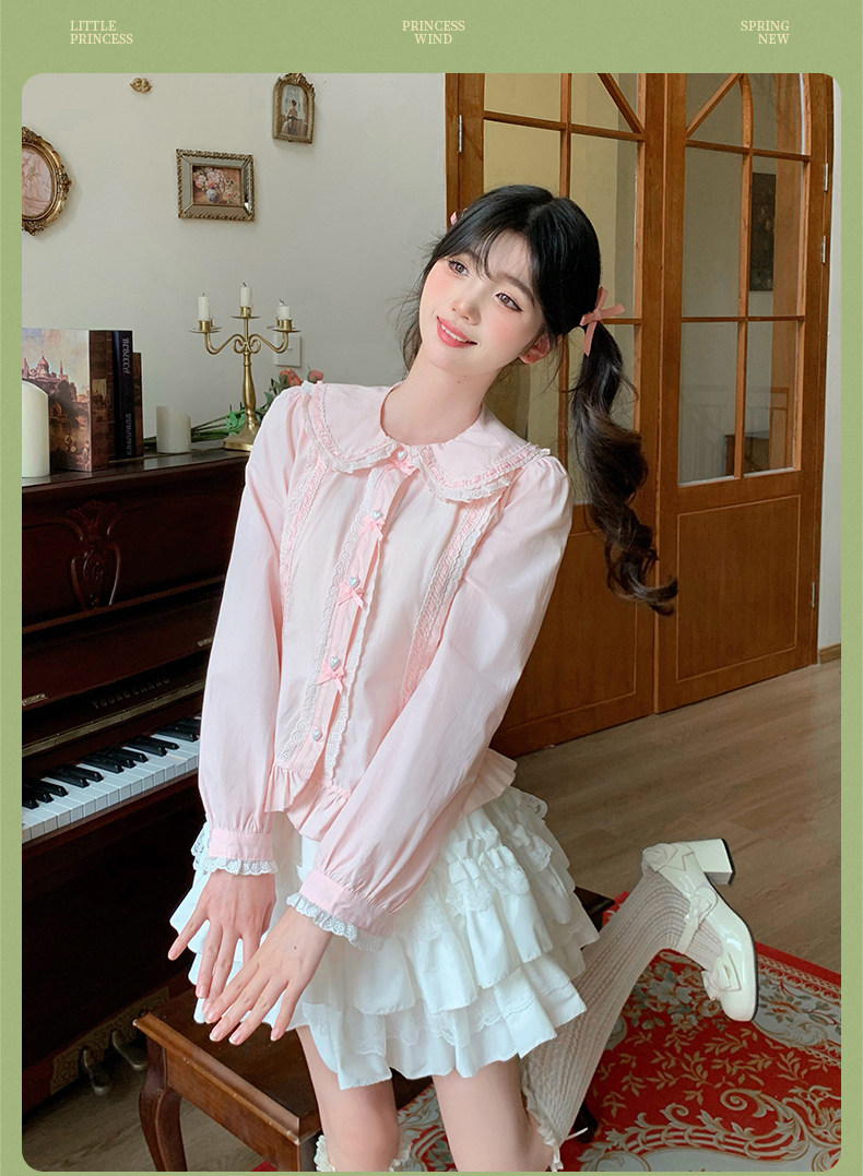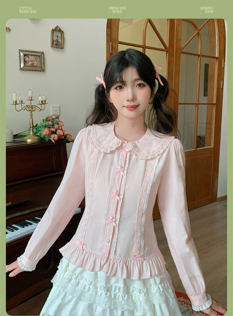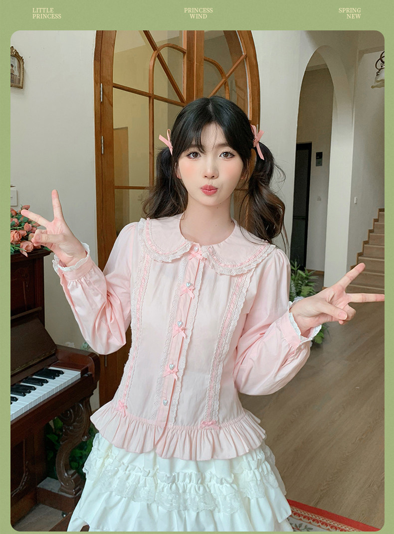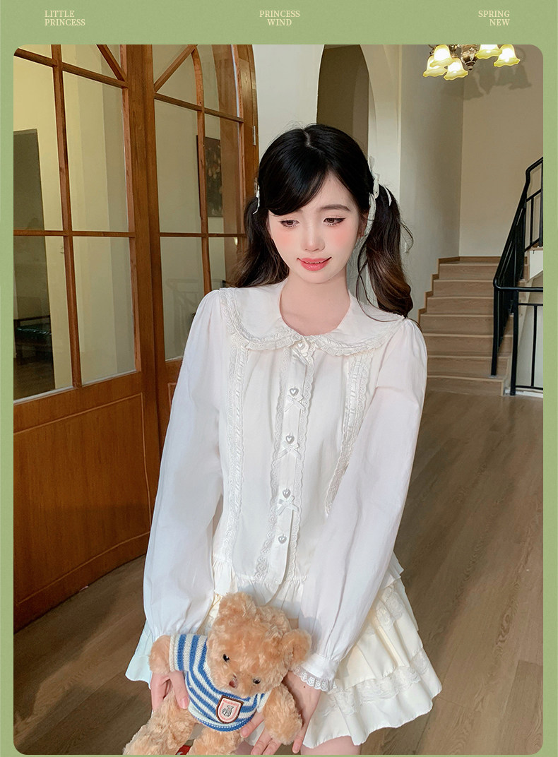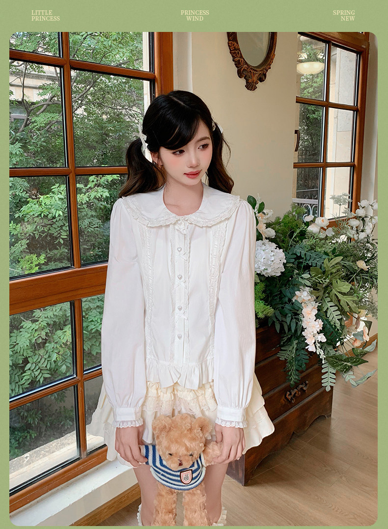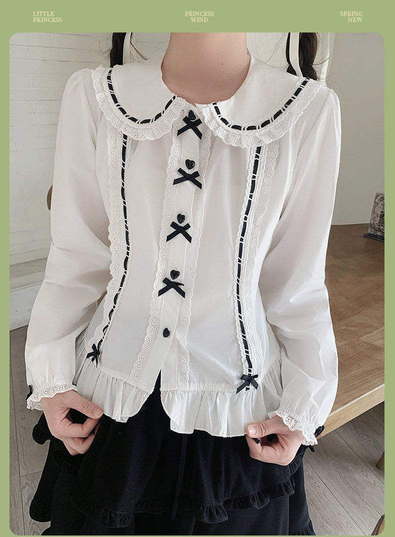 Japanese style soft girl Lolita shirt with Peter Pan collar, long sleeves, slim fit, inner layer puff sleeve top, women's autumn Lolita style.