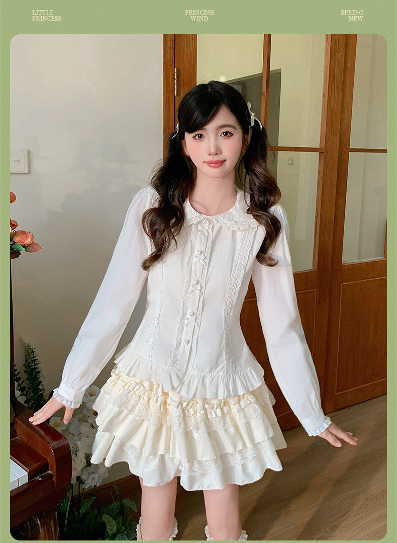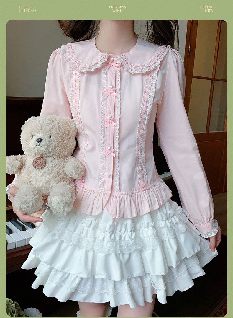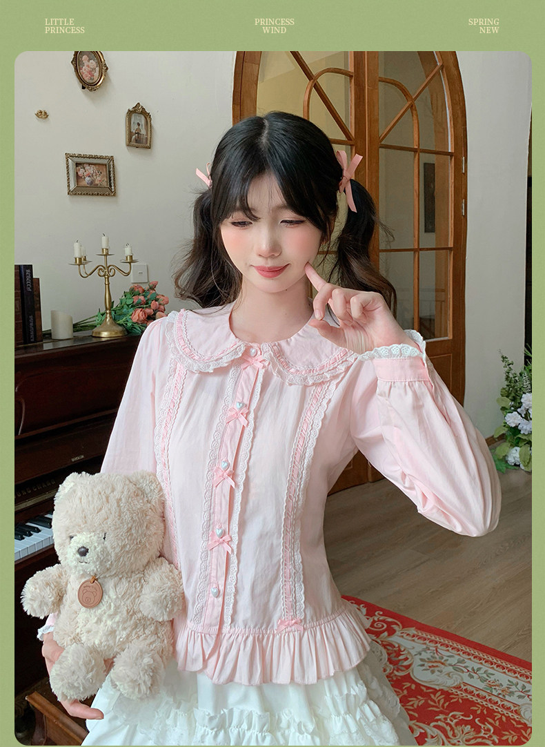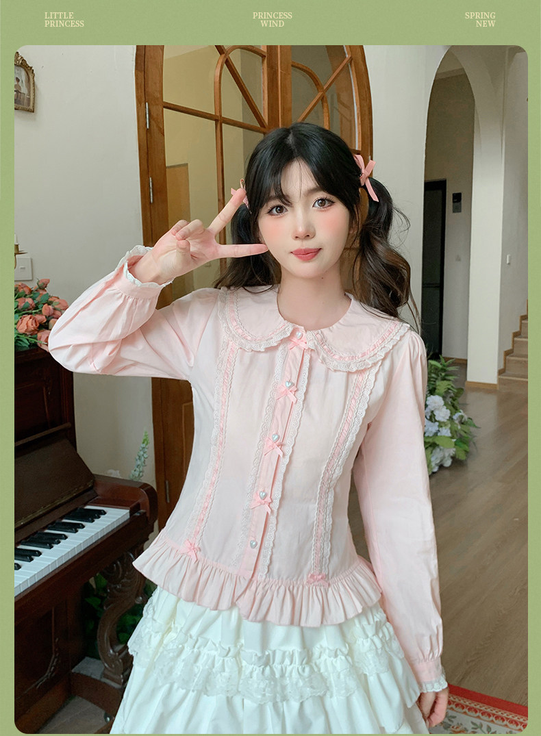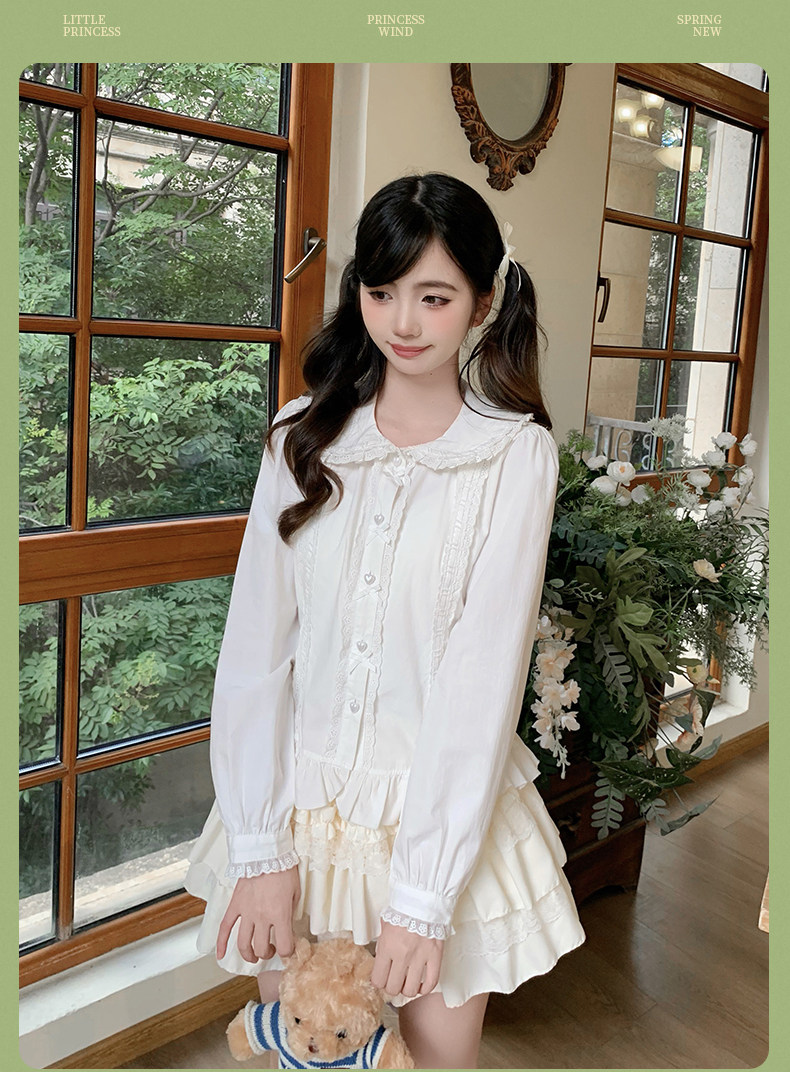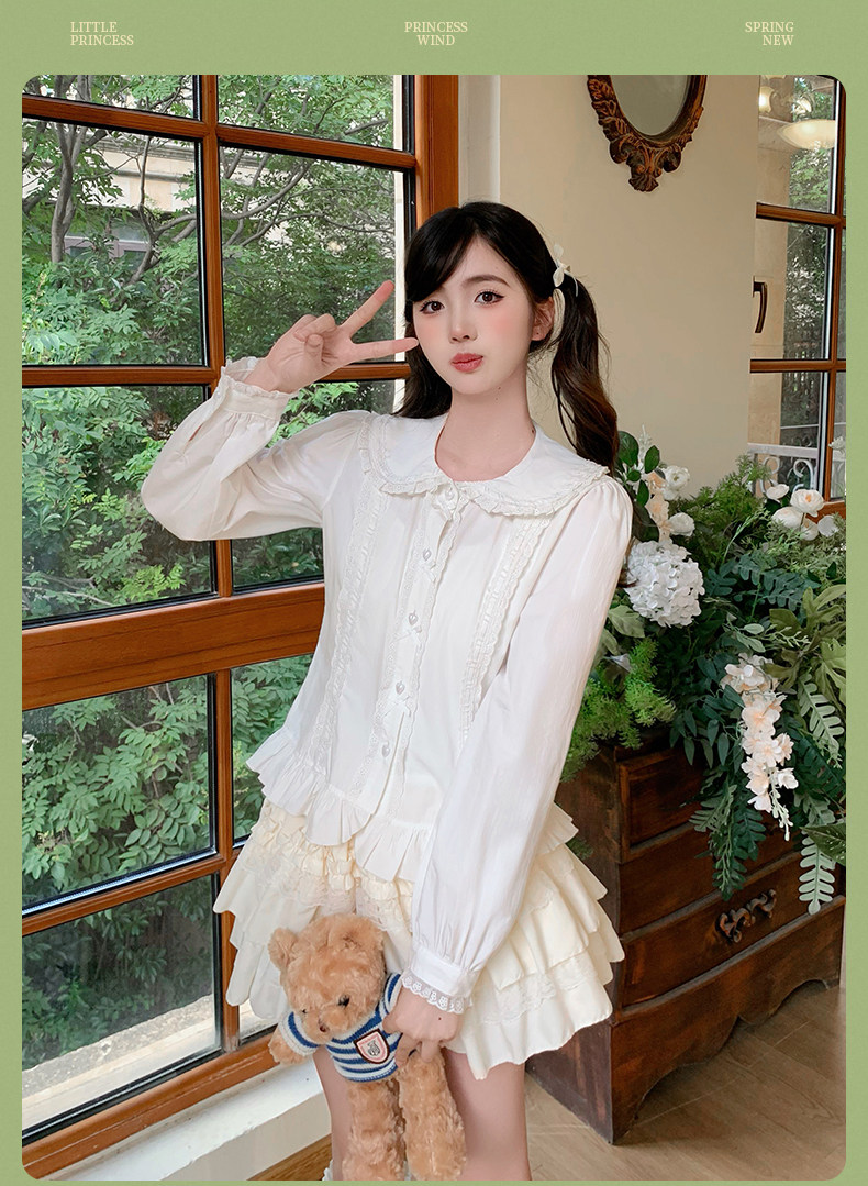 Japanese style soft girl Lolita shirt with Peter Pan collar, long sleeves, slim fit, inner layer puff sleeve top, women's autumn Lolita style.