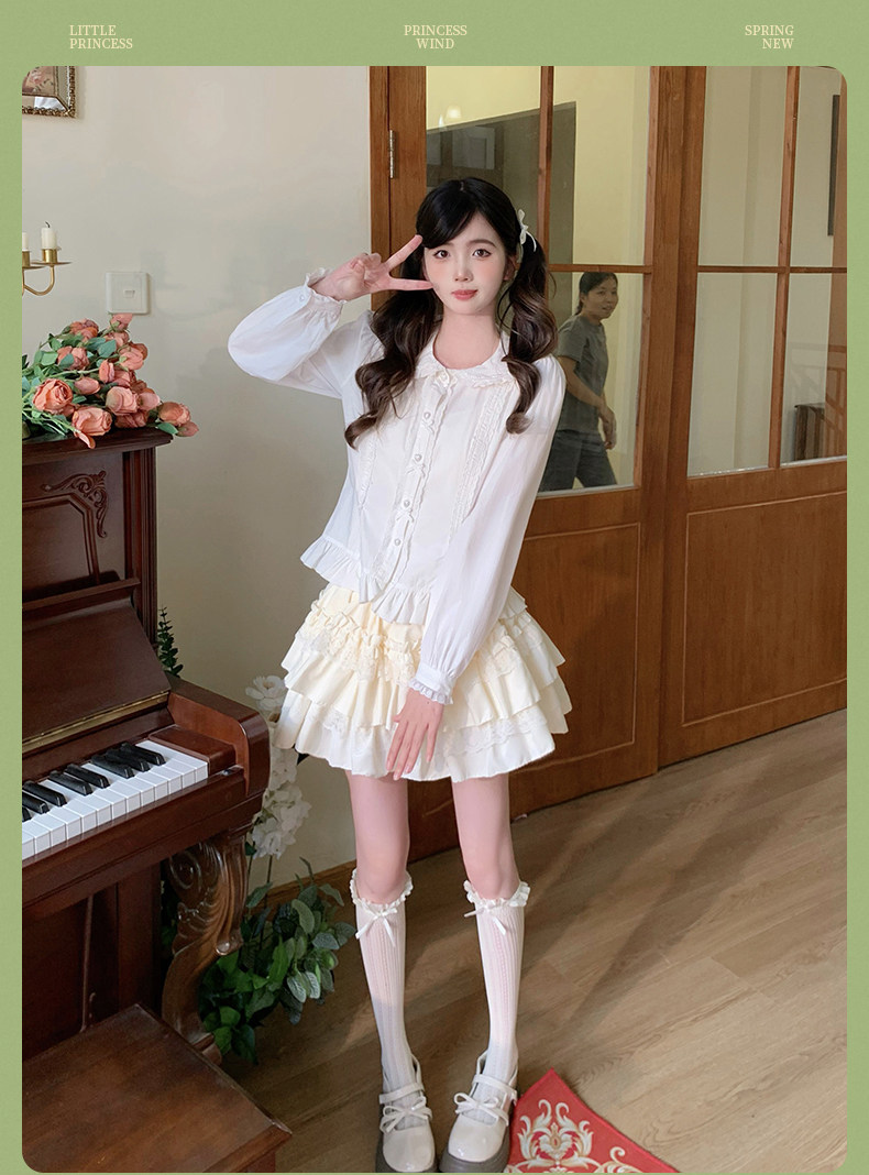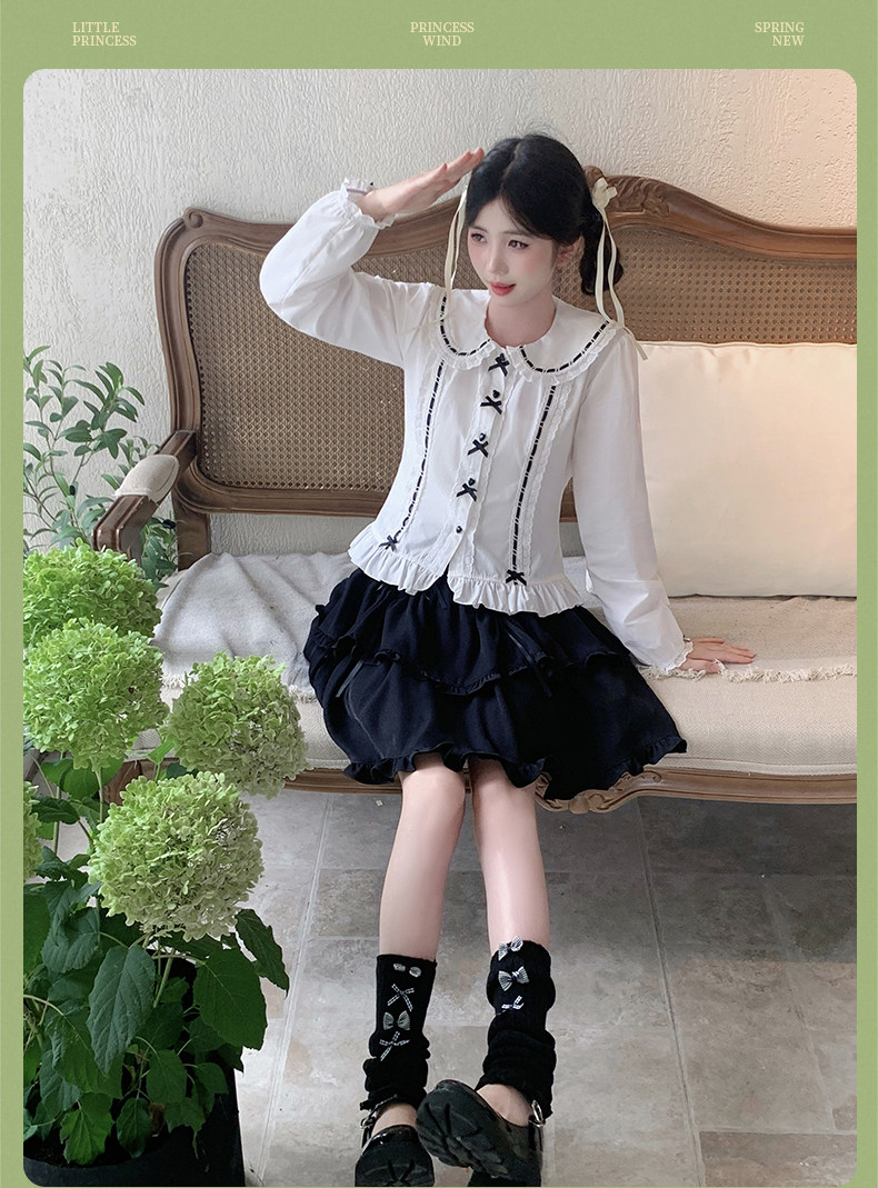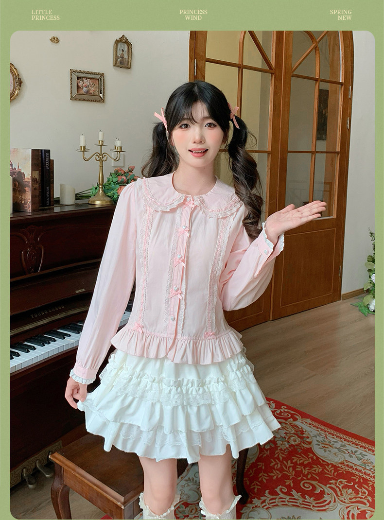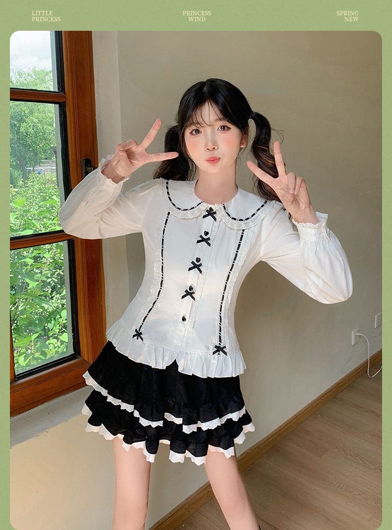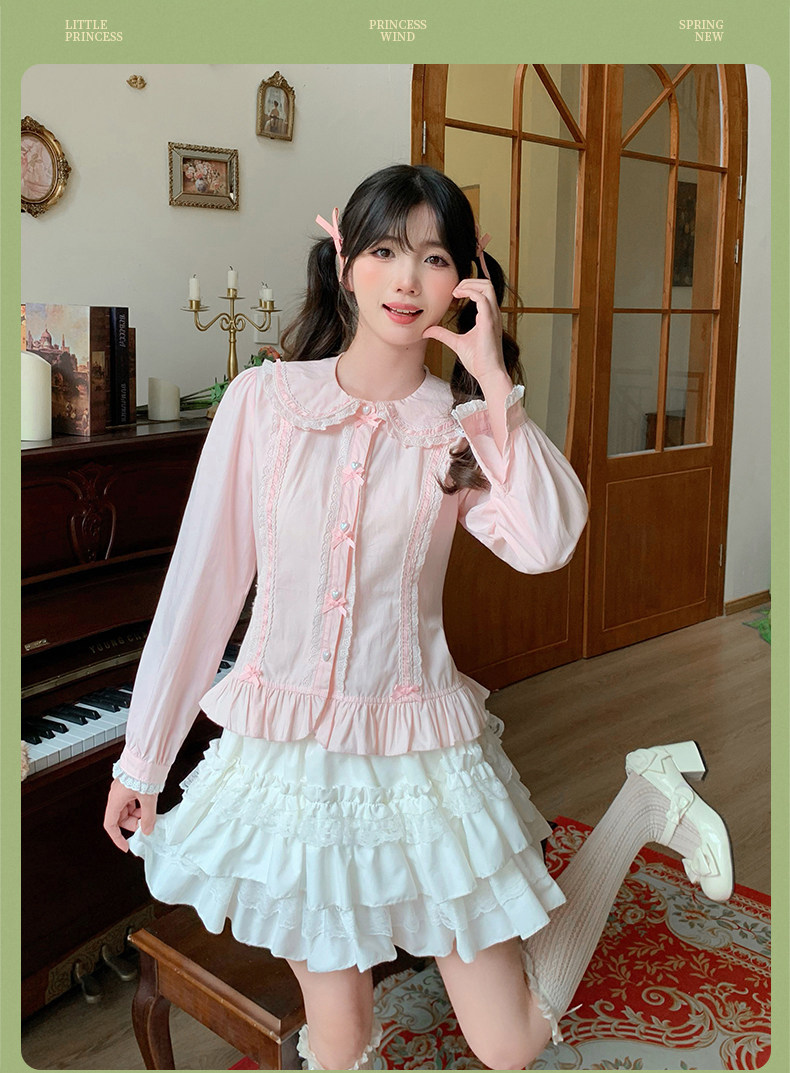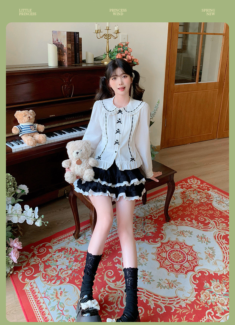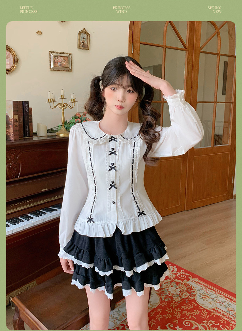 Japanese style soft girl Lolita shirt with Peter Pan collar, long sleeves, slim fit, inner layer puff sleeve top, women's autumn Lolita style.