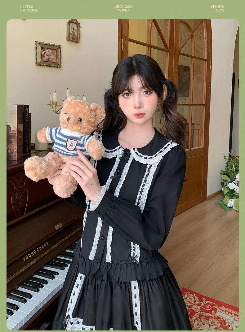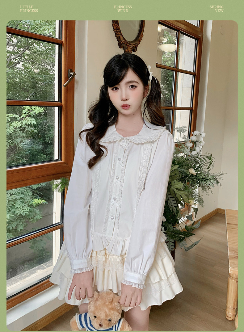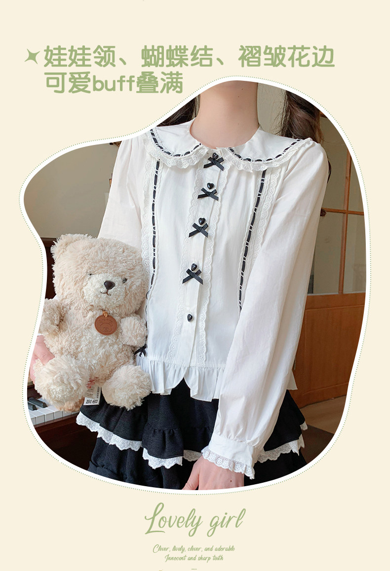 日系软妹lolita衬衫娃娃领长袖修身洋装内搭泡泡袖上衣女秋洛丽塔 [Original Page Link]