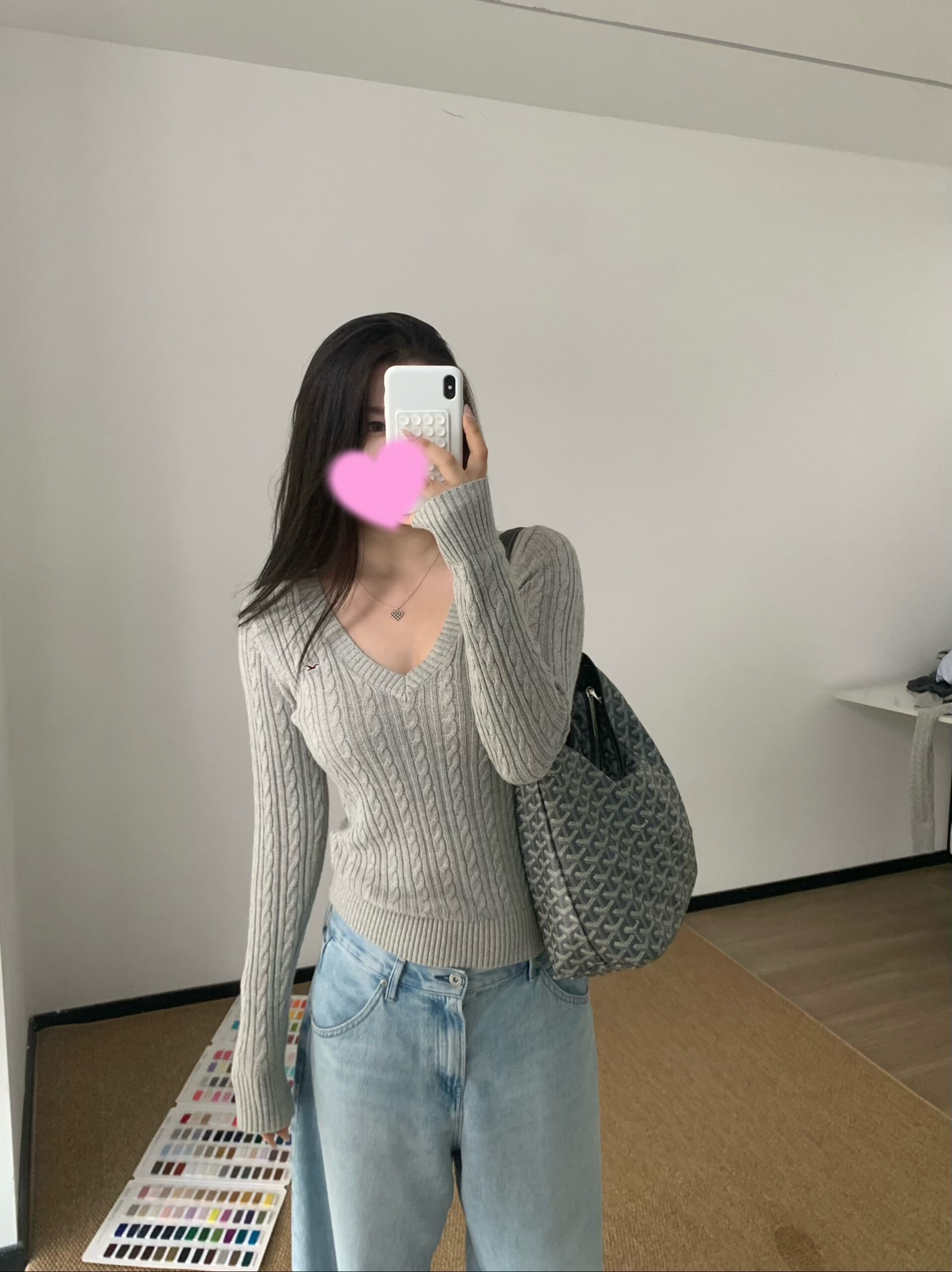 withtong_小海鸥麻花针织v领修身上衣早秋新款 [Original Page Link]