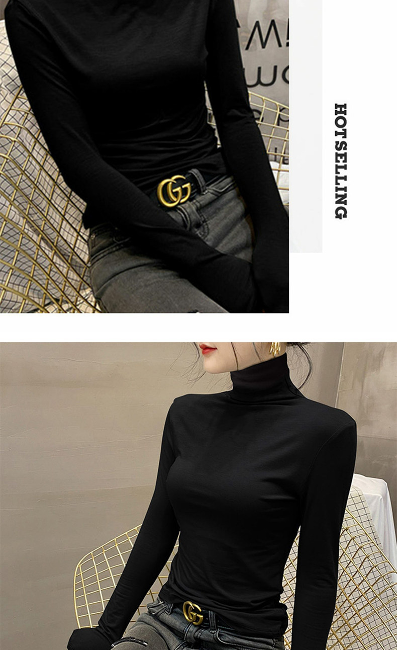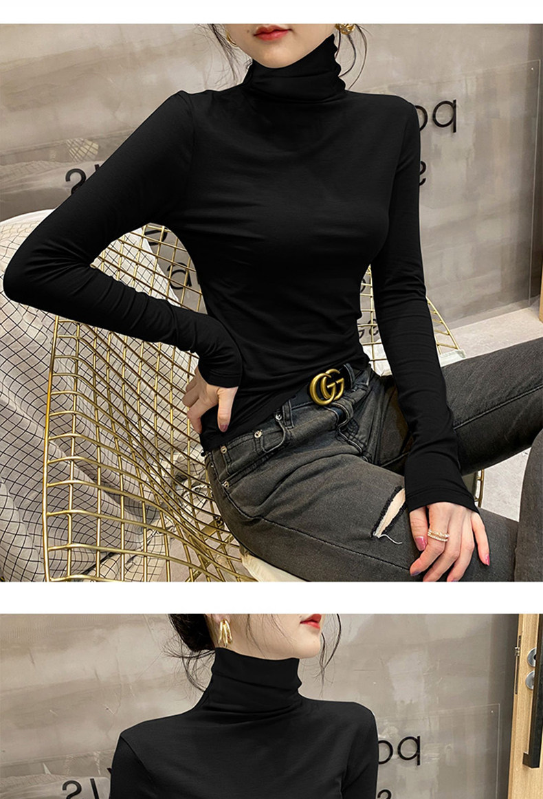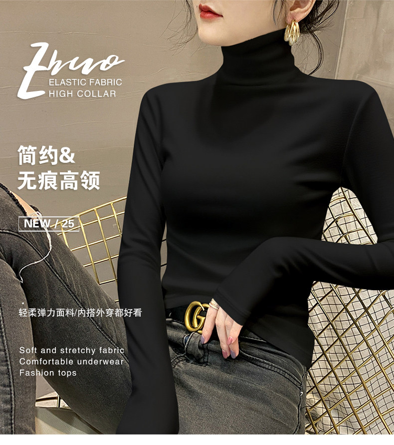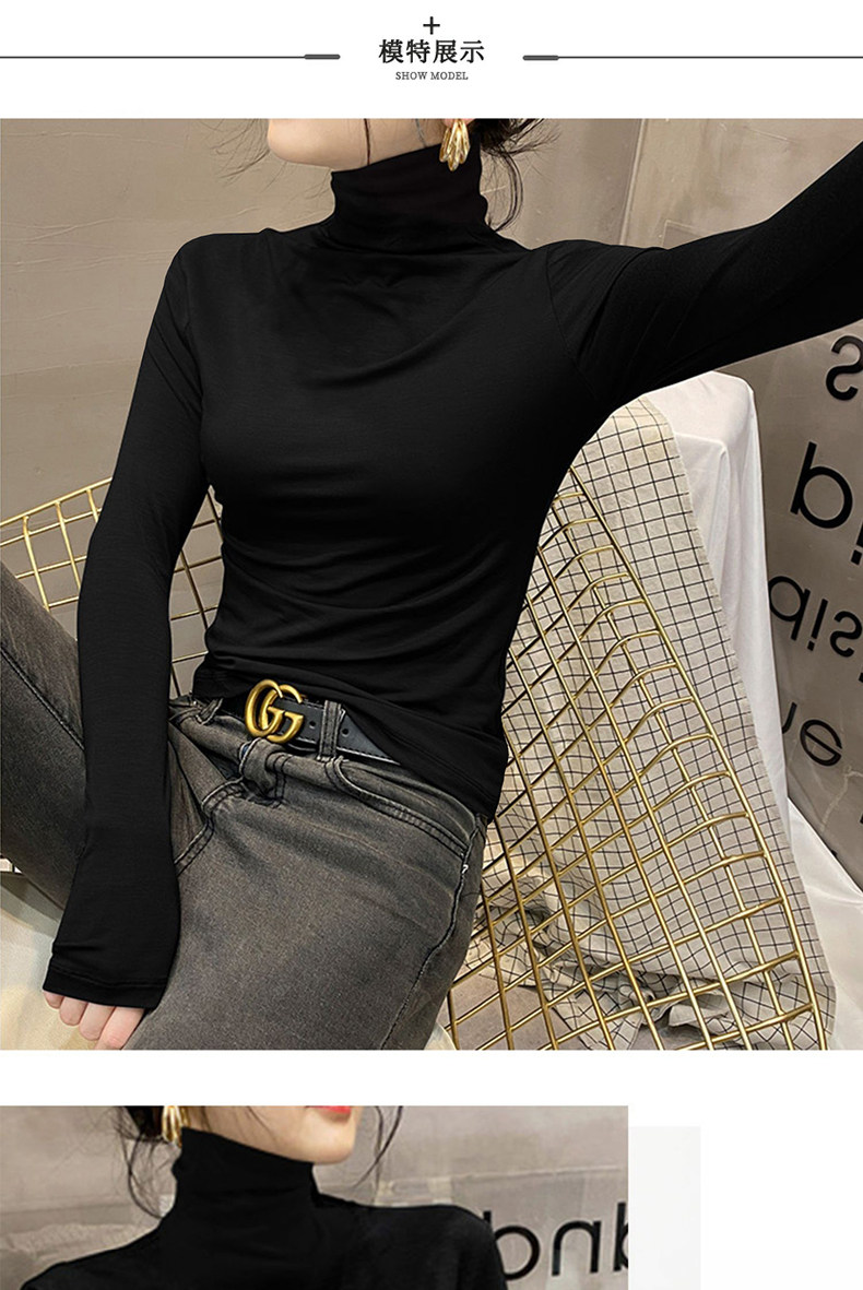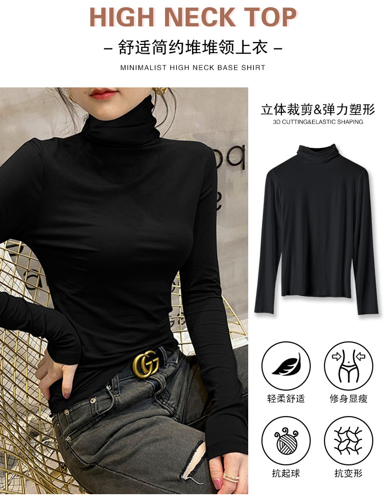 莫代尔高领打底衫女2025新款春秋冬内搭堆领长袖T恤爆款黑色上衣 [Original Page Link]