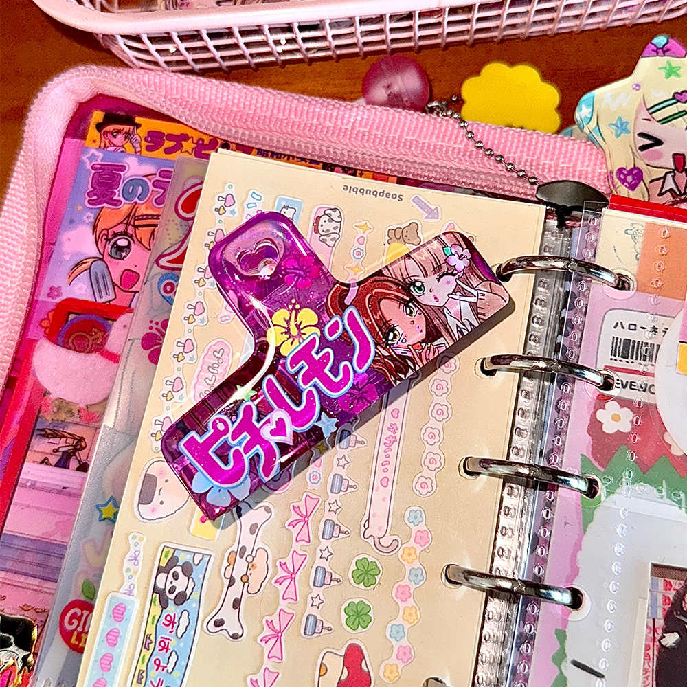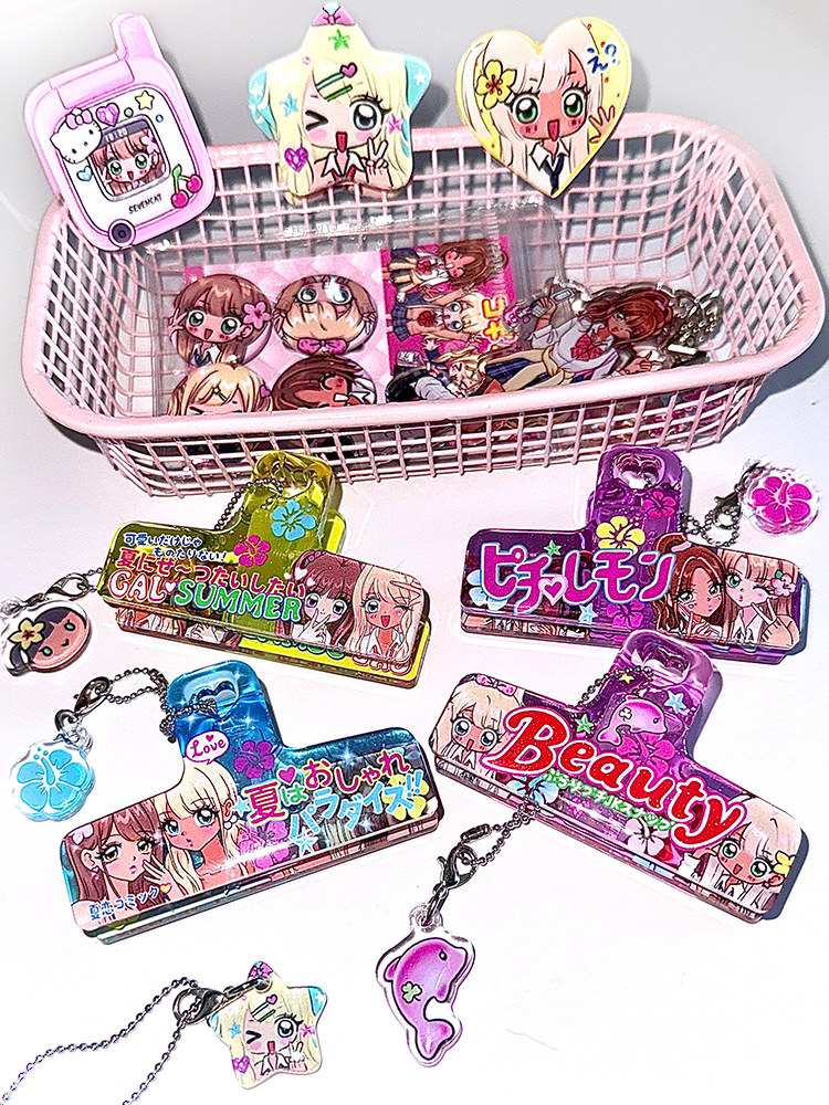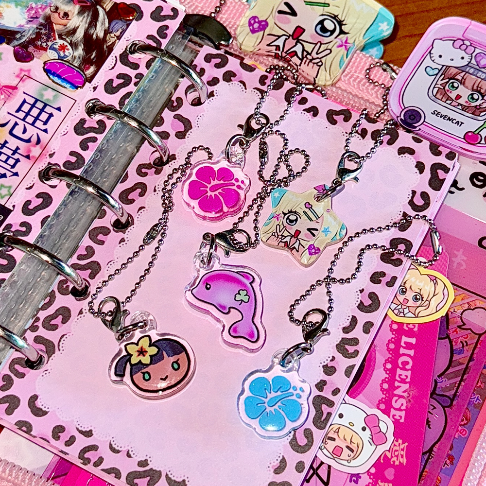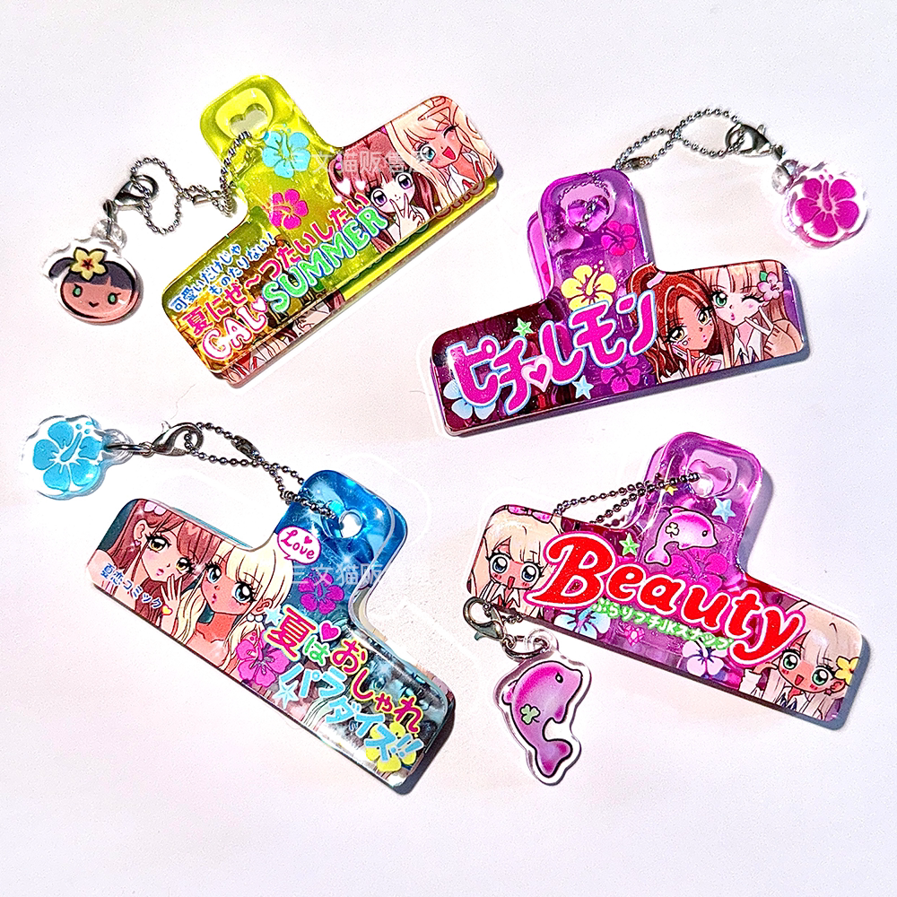 三文猫原创可爱古早夏威夷辣妹风格闪粉滴胶亚克力PP夹小挂坠挂件 [Original Page Link]
