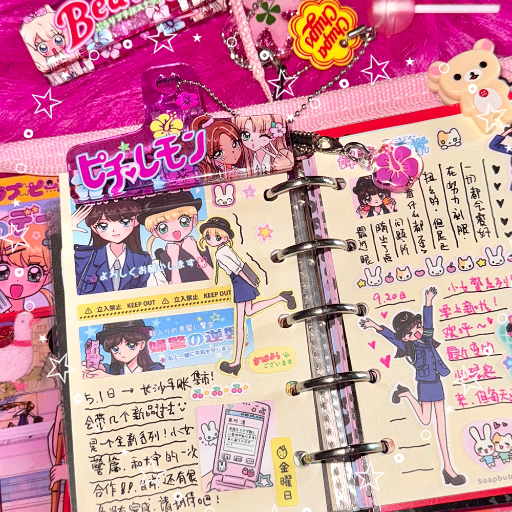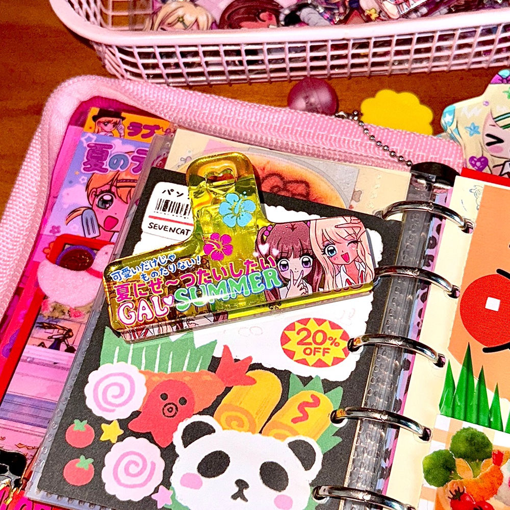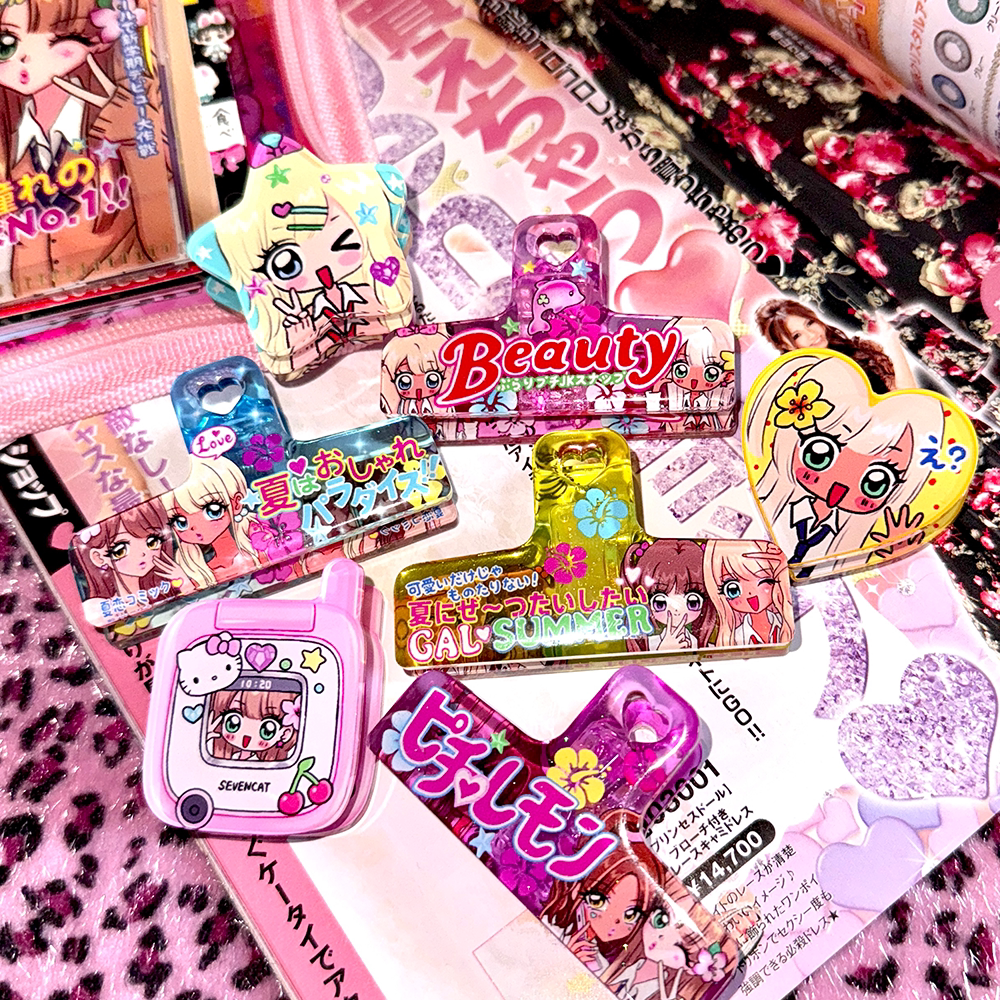 三文猫原创可爱古早夏威夷辣妹风格闪粉滴胶亚克力PP夹小挂坠挂件 [Original Page Link]