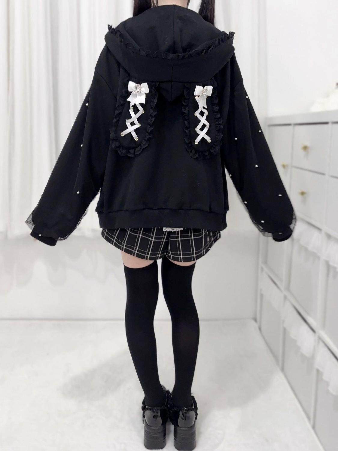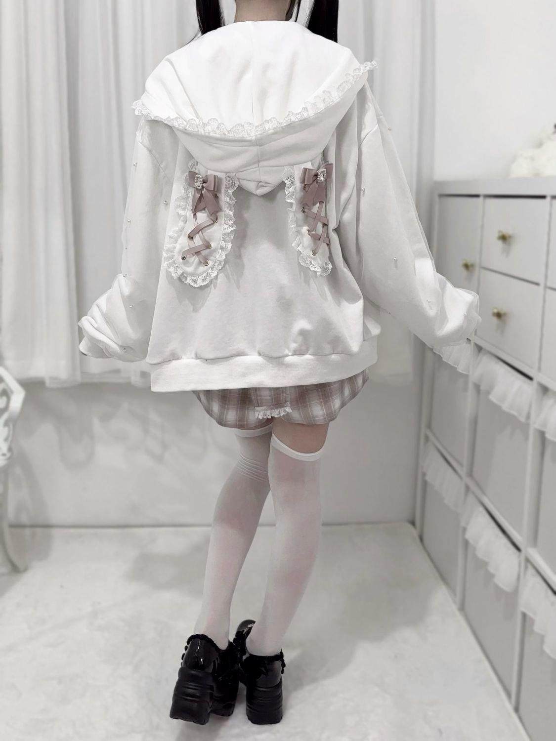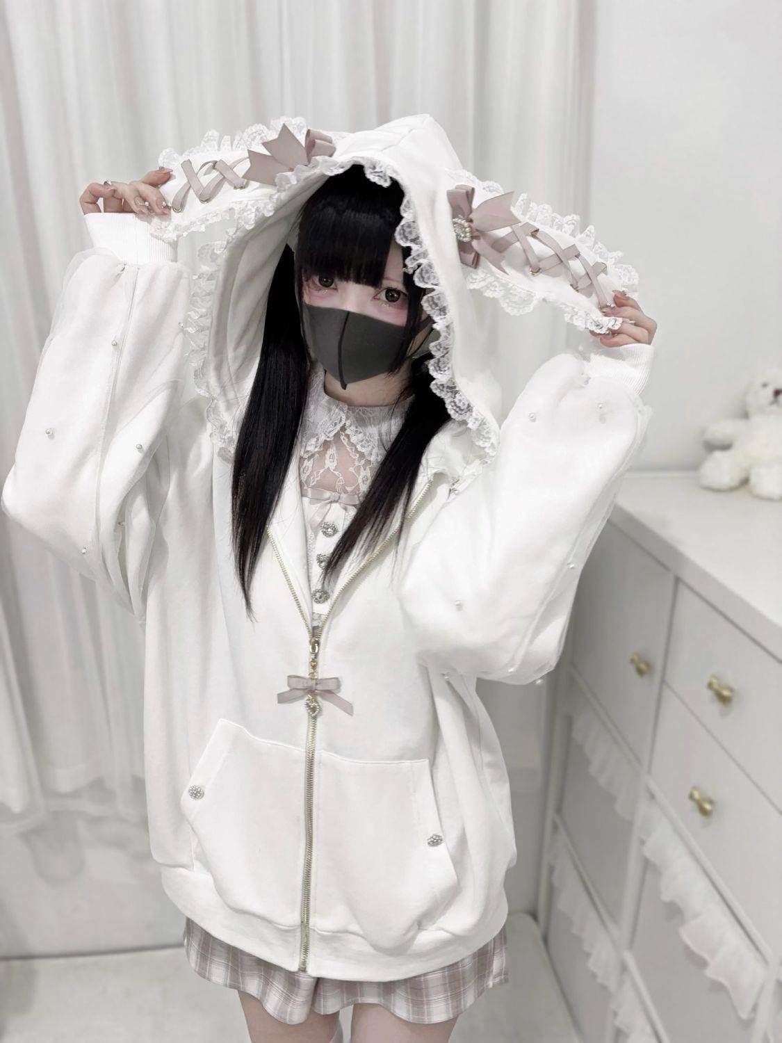 Girls' Japanese subculture anime tie-up bunny ear hooded cardigan, autumn 2025 new style.