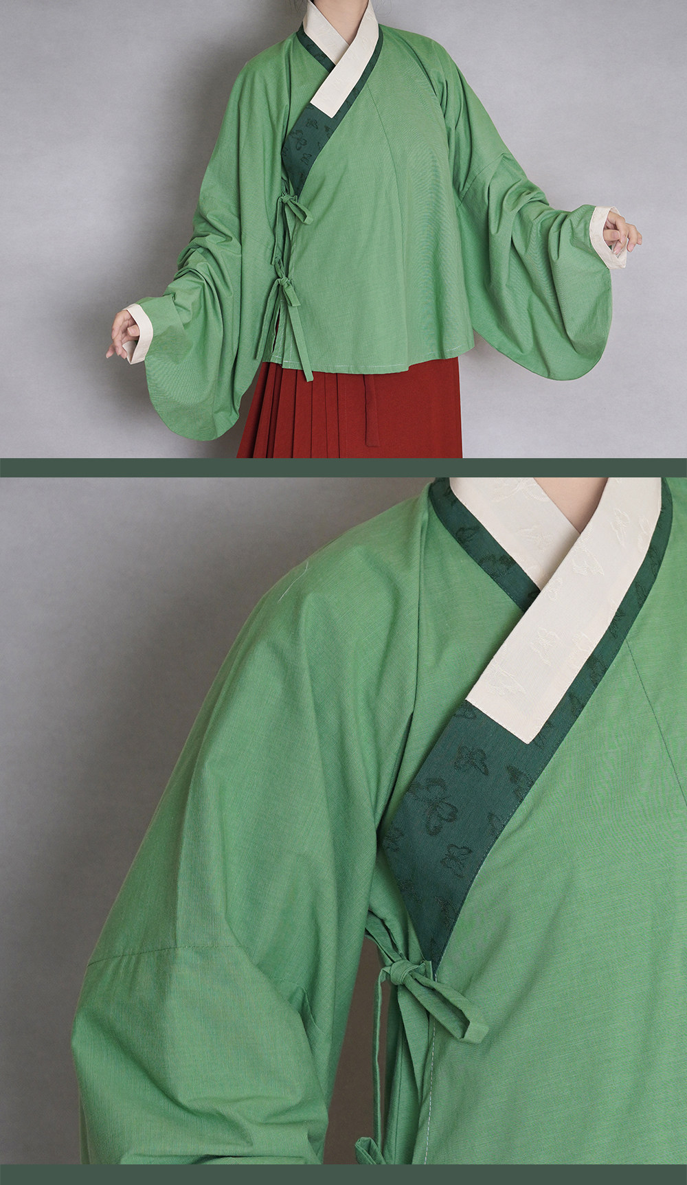 漫春雪汉服【莫轻】明制交领琵琶袖 对穿交弓袋袖 提花领纯棉春秋 [Original Page Link]