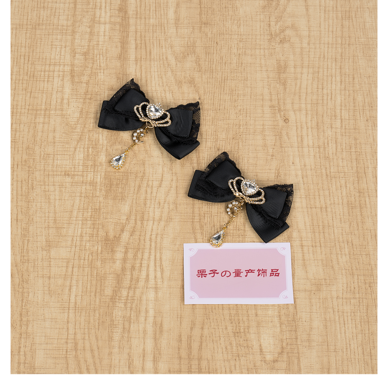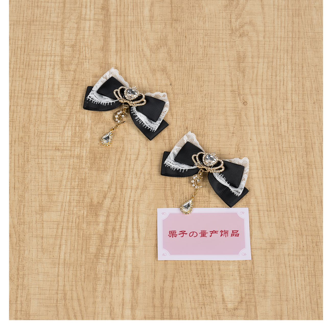 栗子家星月系列皇冠水钻abs珍珠发夹蝴蝶结边夹量产型魔童lolita [Original Page Link]