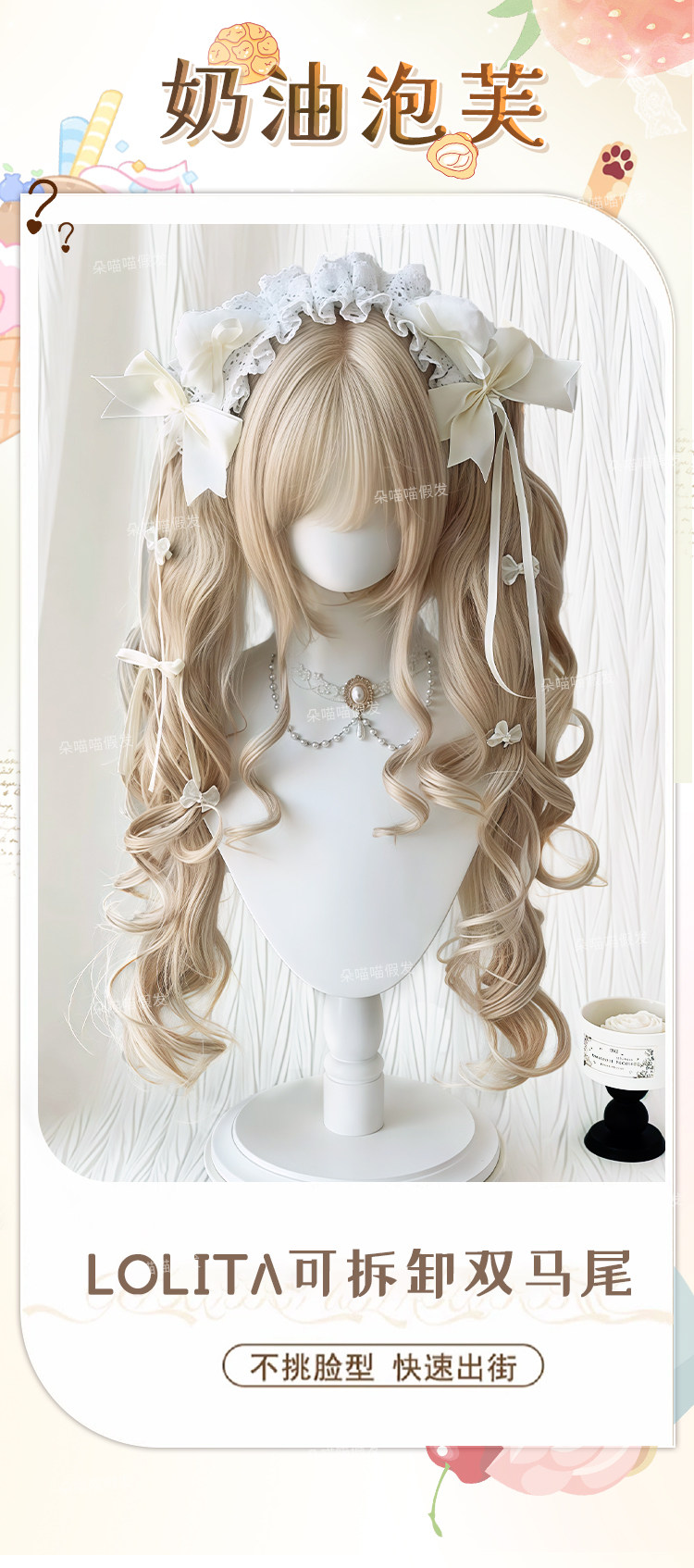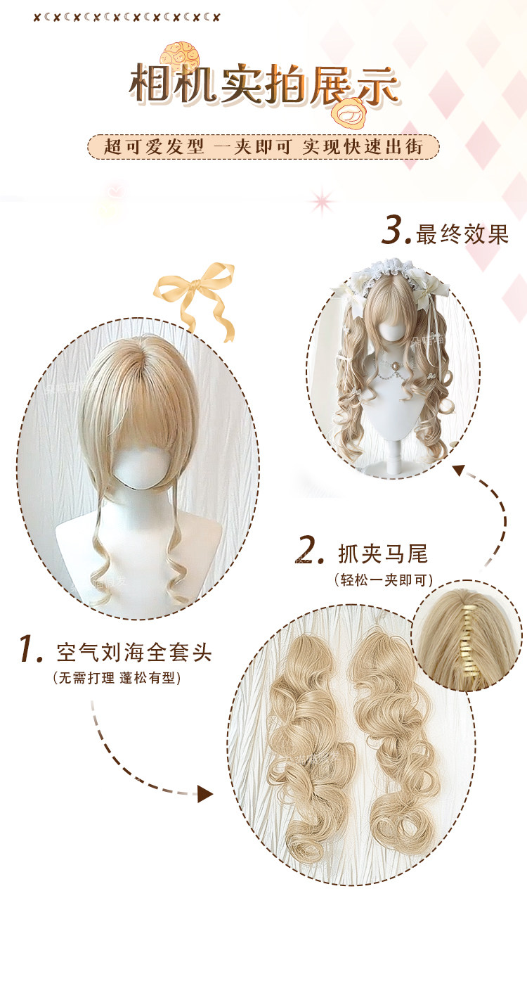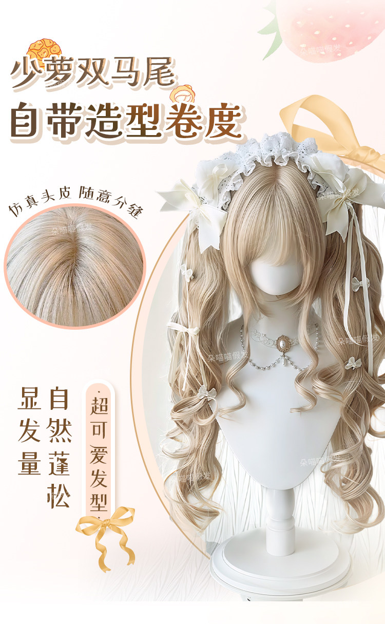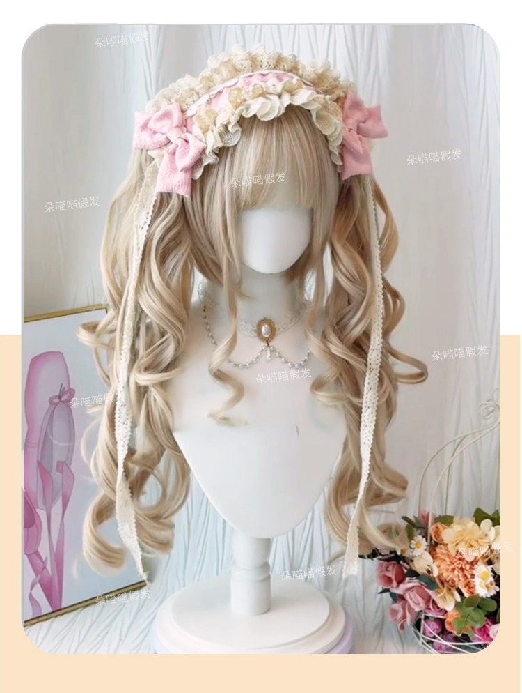 【奶油泡芙】Lolita假发女双马尾洋娃娃金色罗马卷抓夹自然全头套 [Original Page Link]