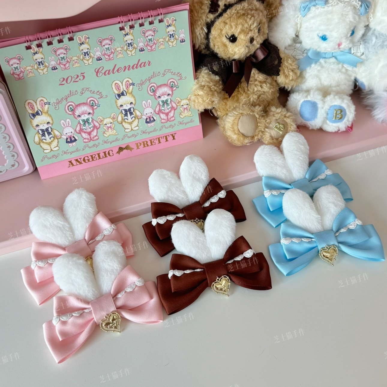【芝士猫手作】纯色蝴蝶结小兔花匣可爱lolita小物手袖边夹头饰 [Original Page Link]