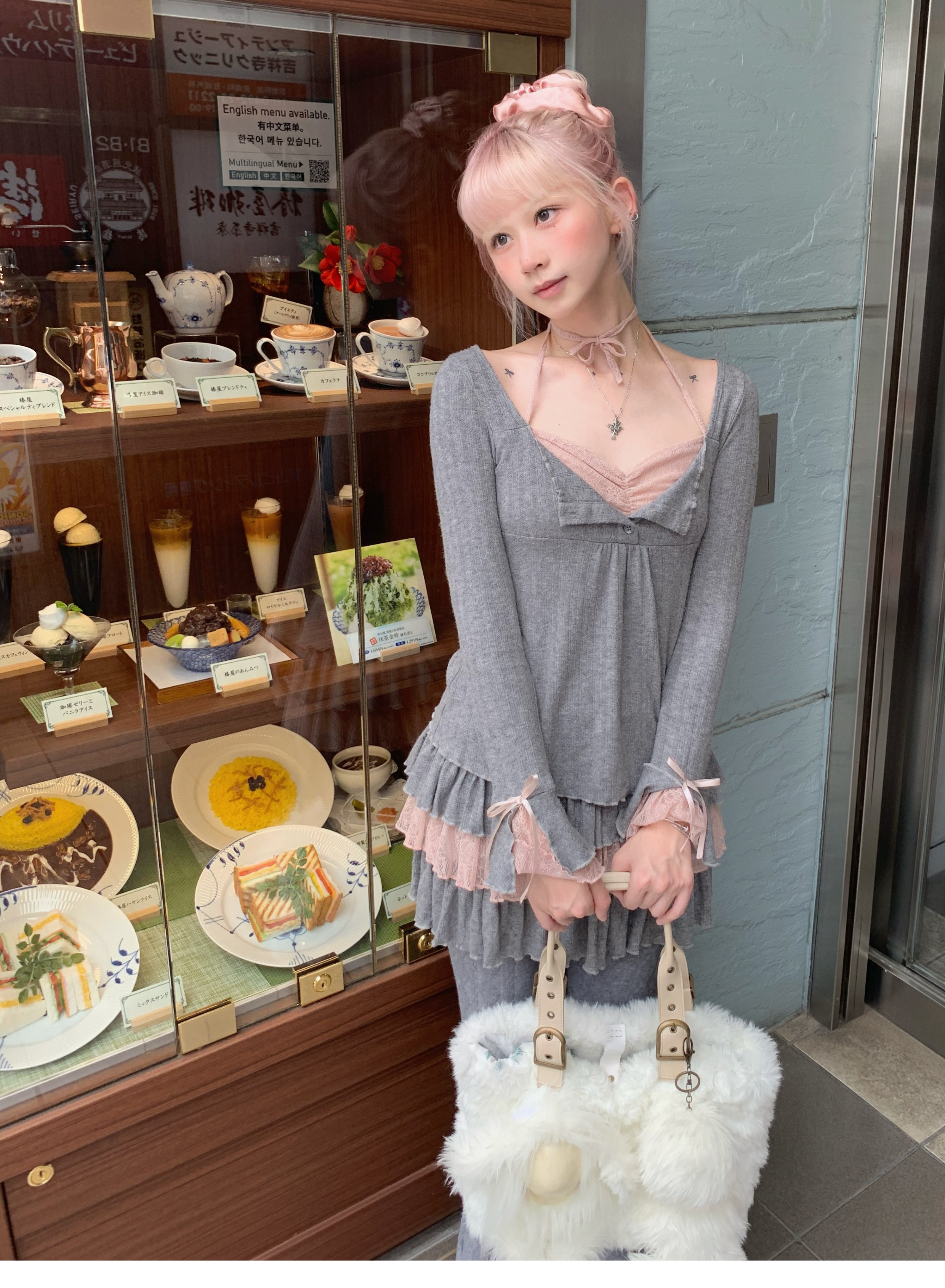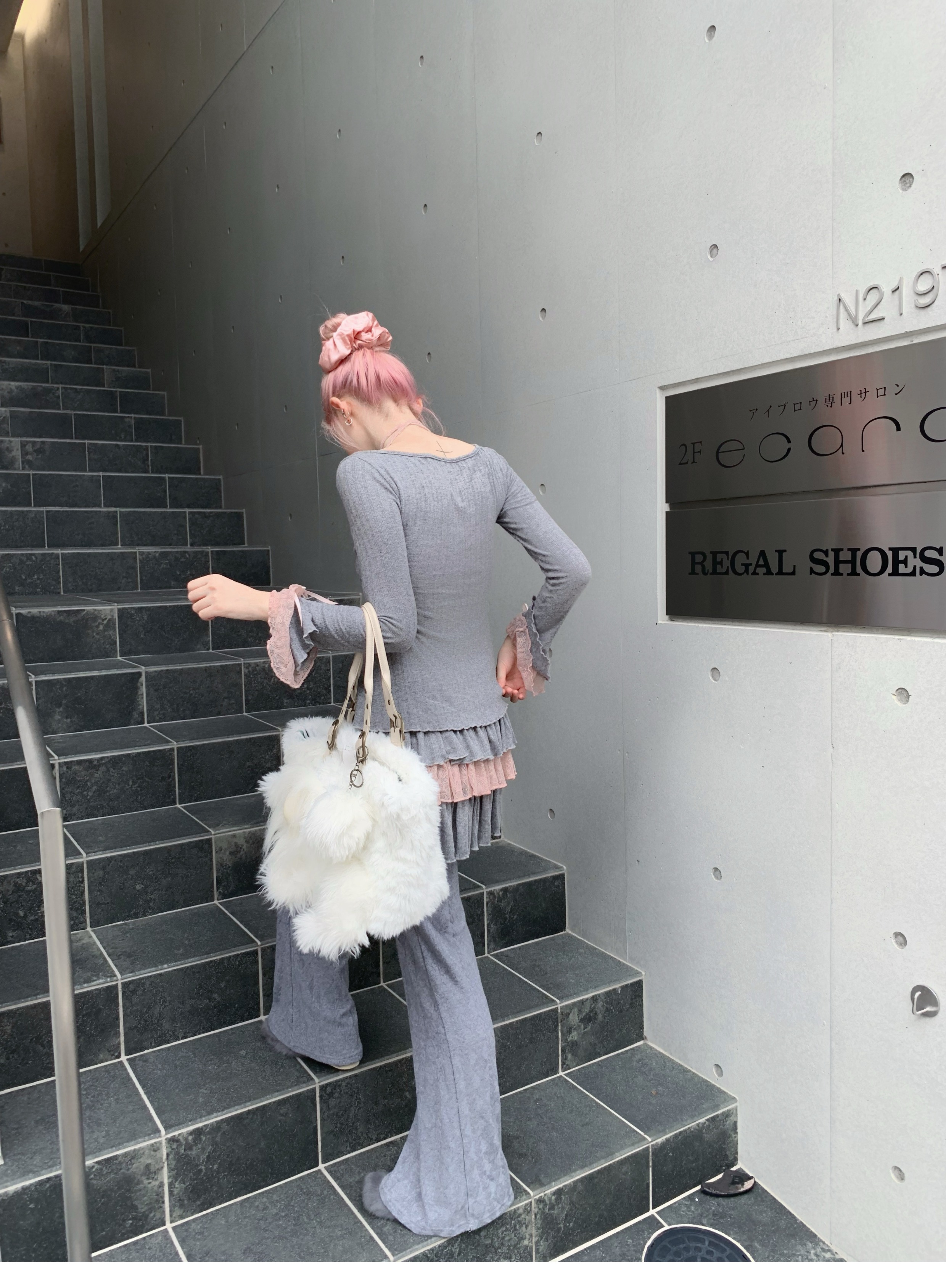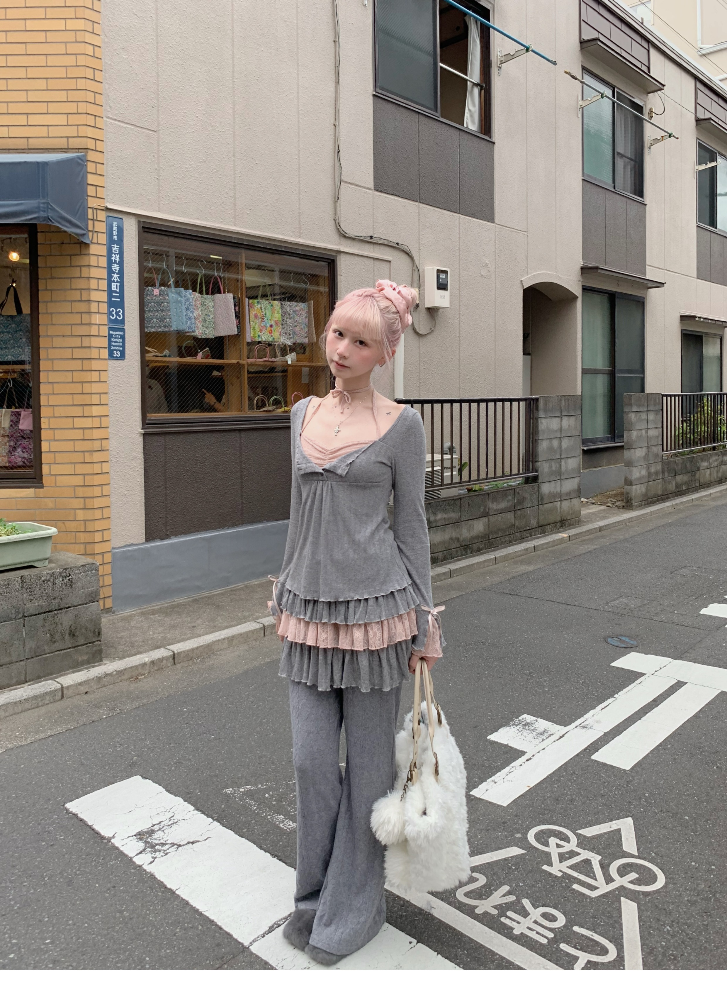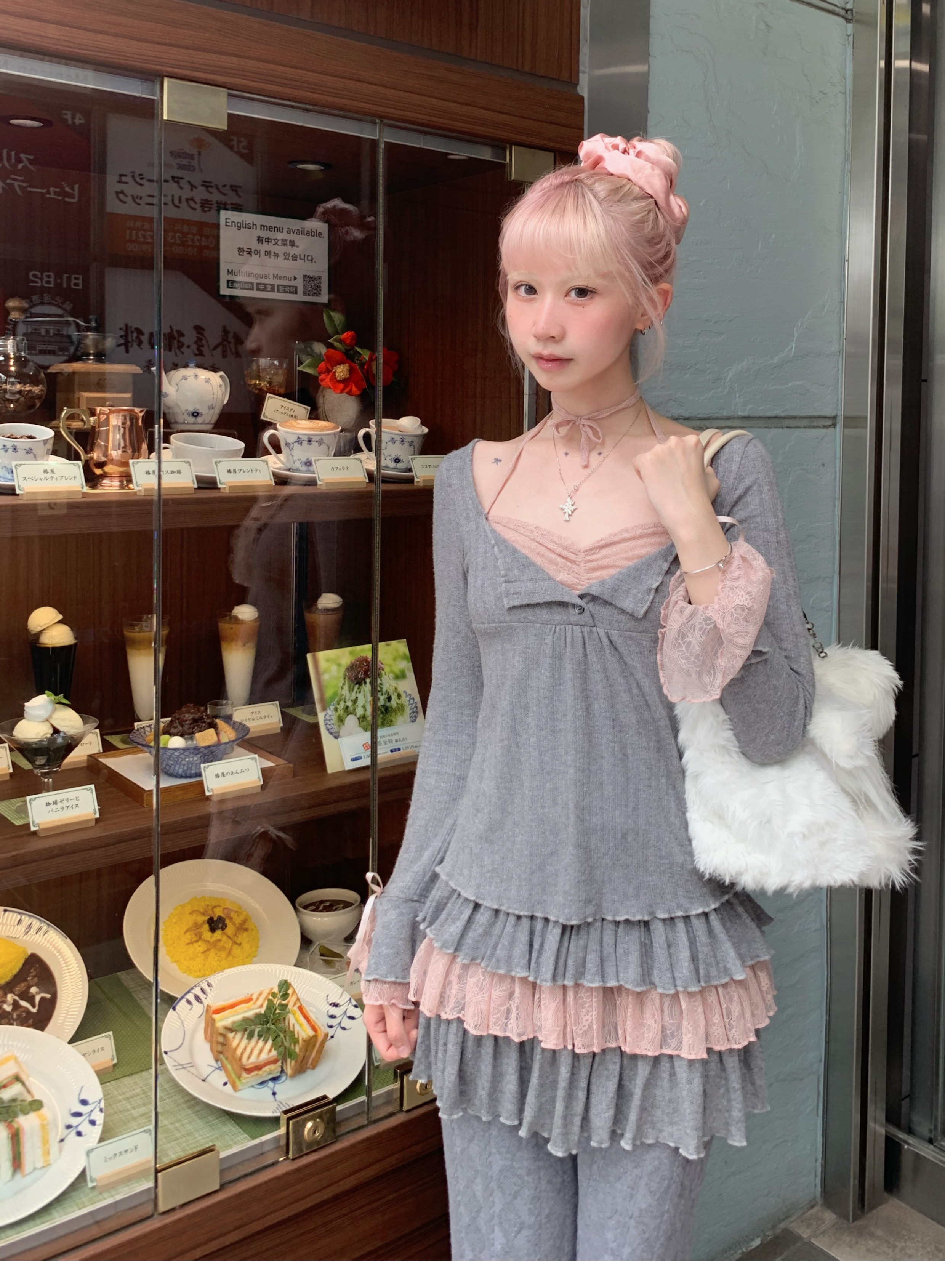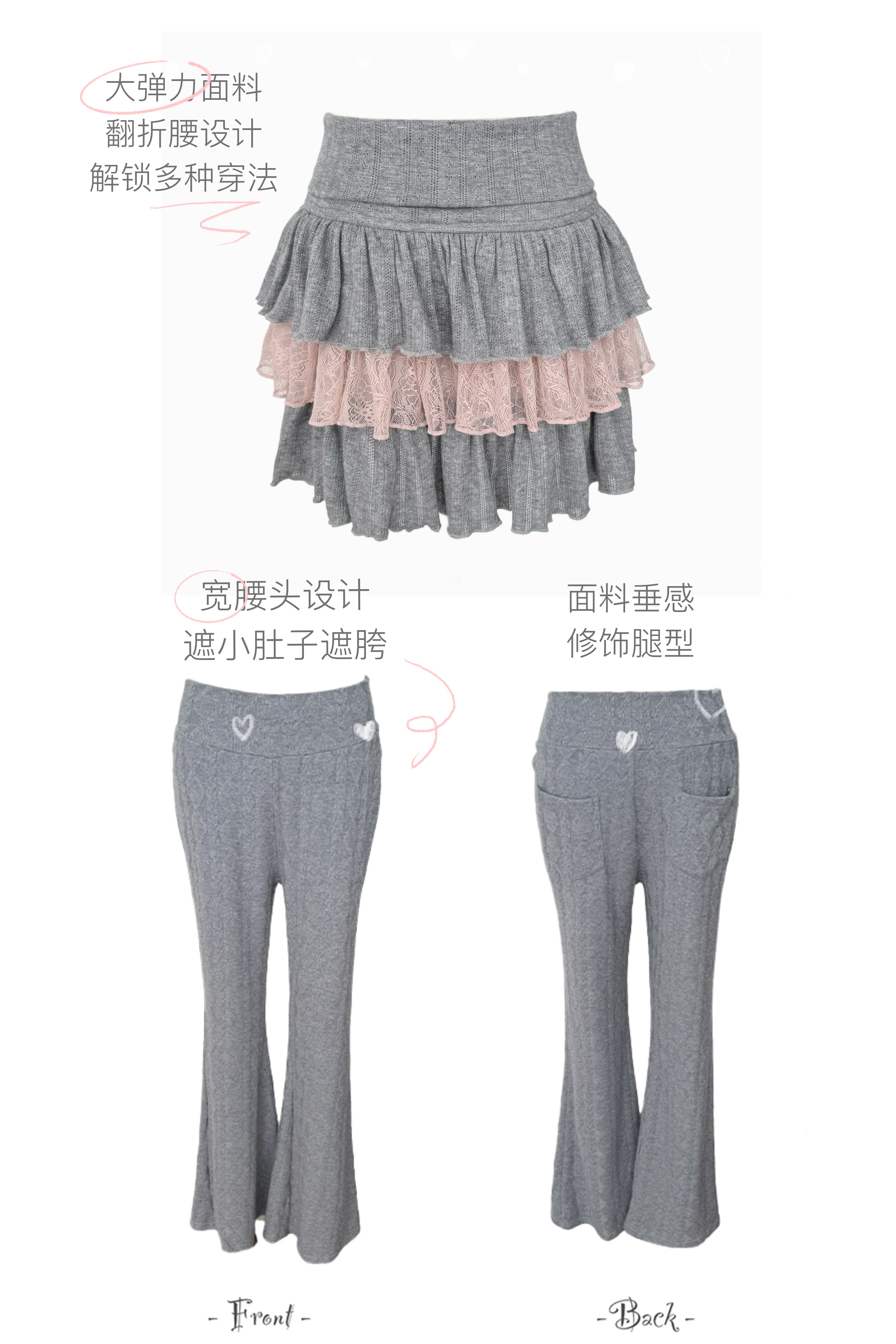 MonddoM•原创灰色针织显瘦百搭休闲长裤可爱蕾丝蓬蓬蛋糕短裙 [Original Page Link]