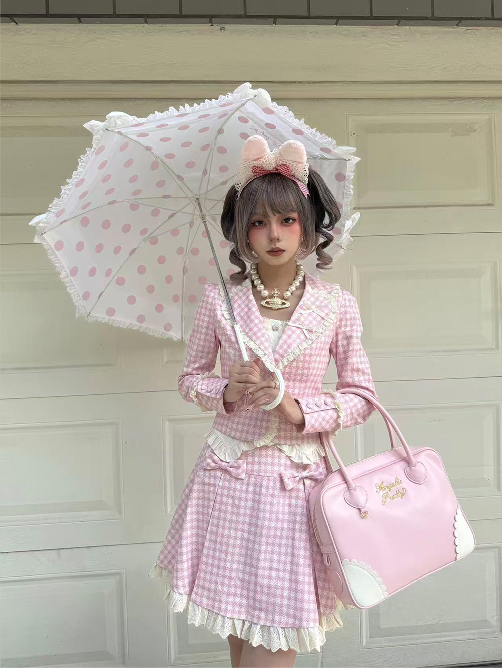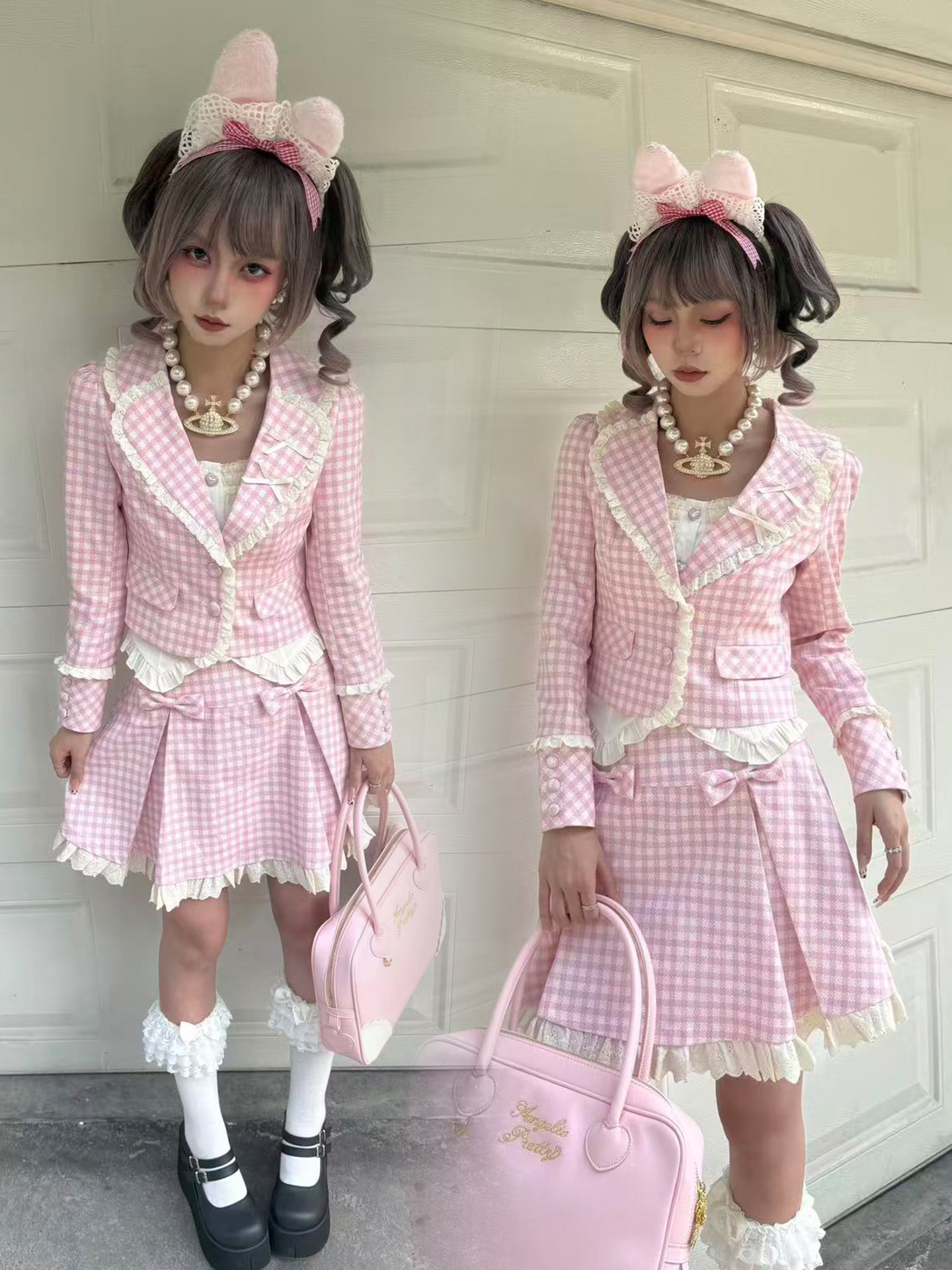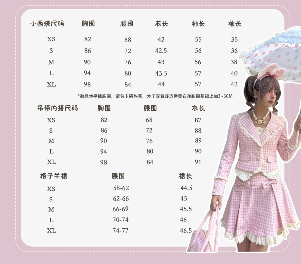 奈奈千金套装粉色格纹复古小西装秋季学院风套装三件套设计感外套 [Original Page Link]