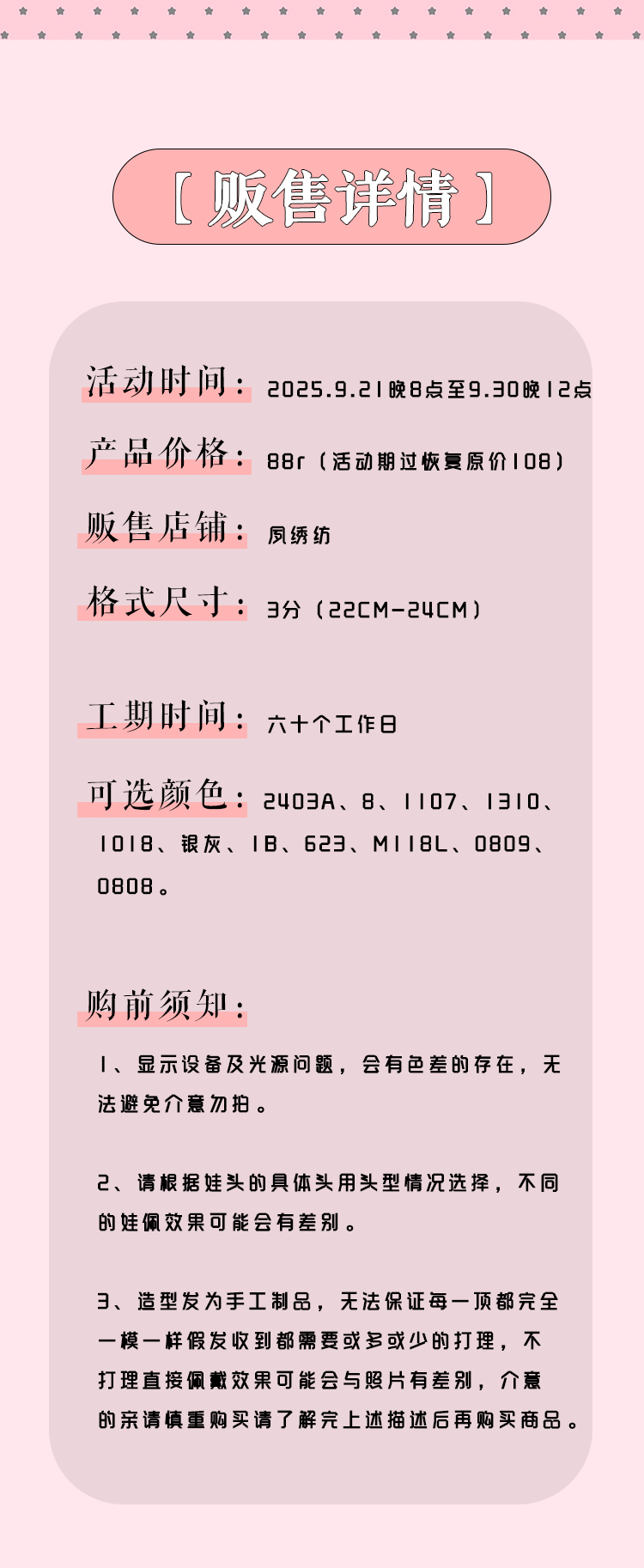 夙绣纺 夙秀坊bjd假发三分 软桃啾 造型发bjd手改毛假毛 预售 [Original Page Link]
