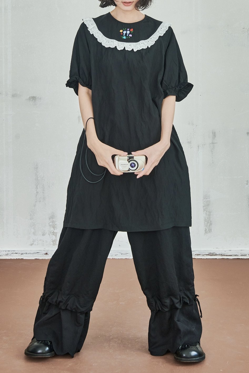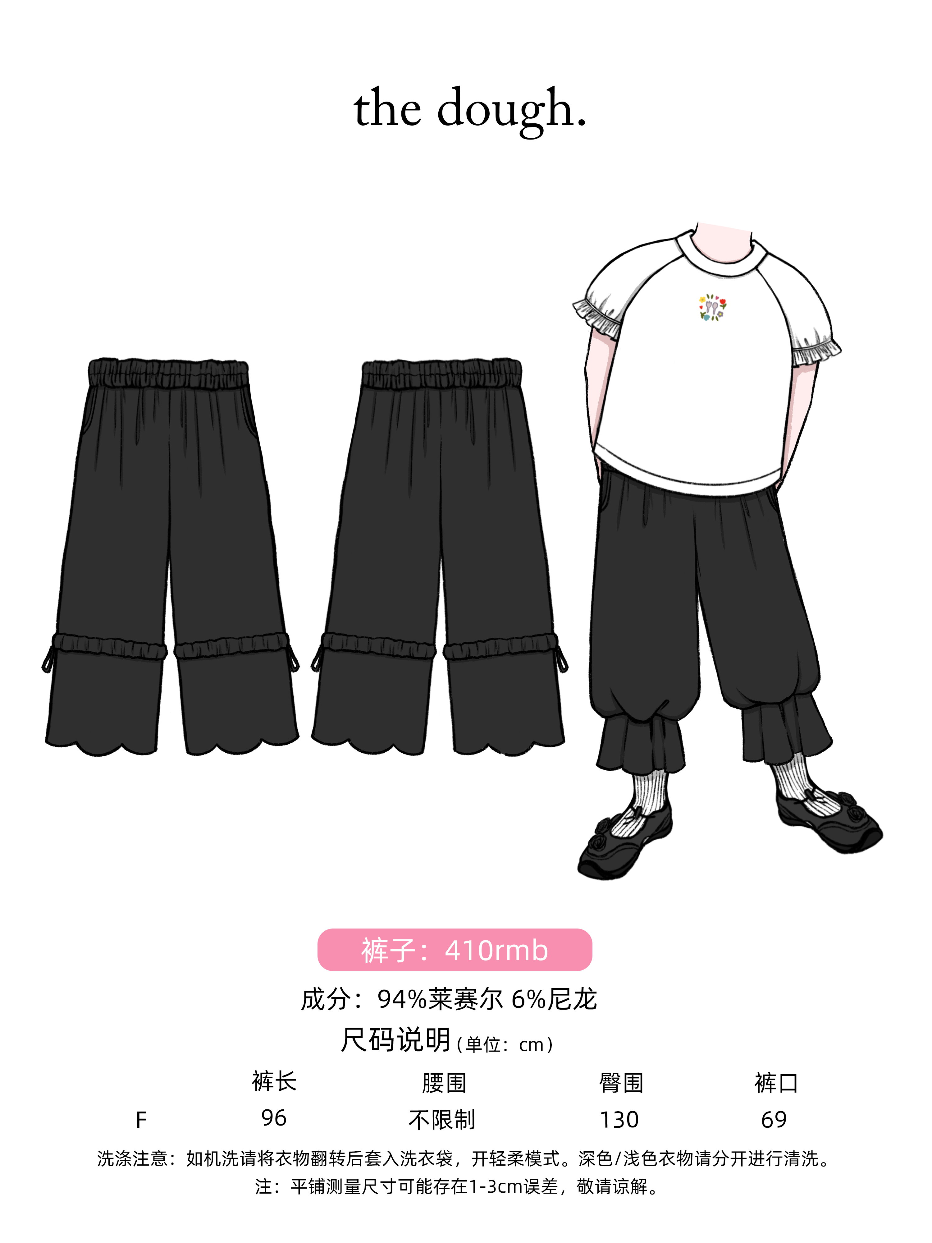 the dough|花瓣下摆可调节黑色百搭休闲裤 松紧抽绳 秋冬款 [Original Page Link]