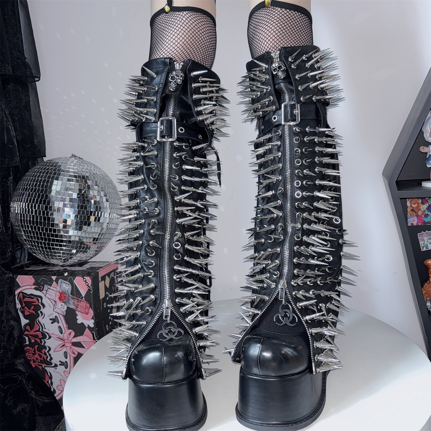 重金属朋克!Y2K辣妹亚比文化铆钉摇滚重工暗黑PU皮腿套中筒袜套 [Original Page Link]