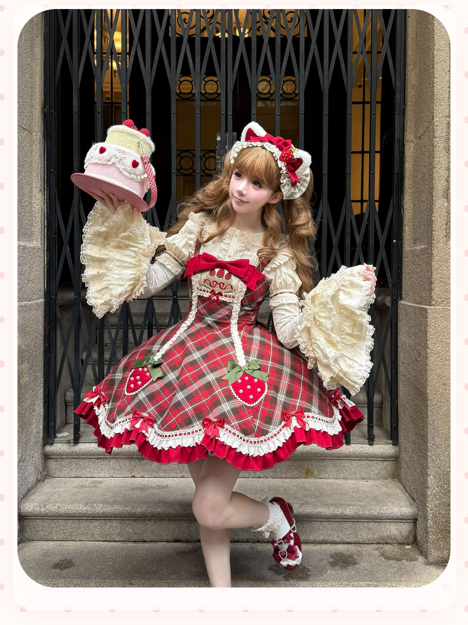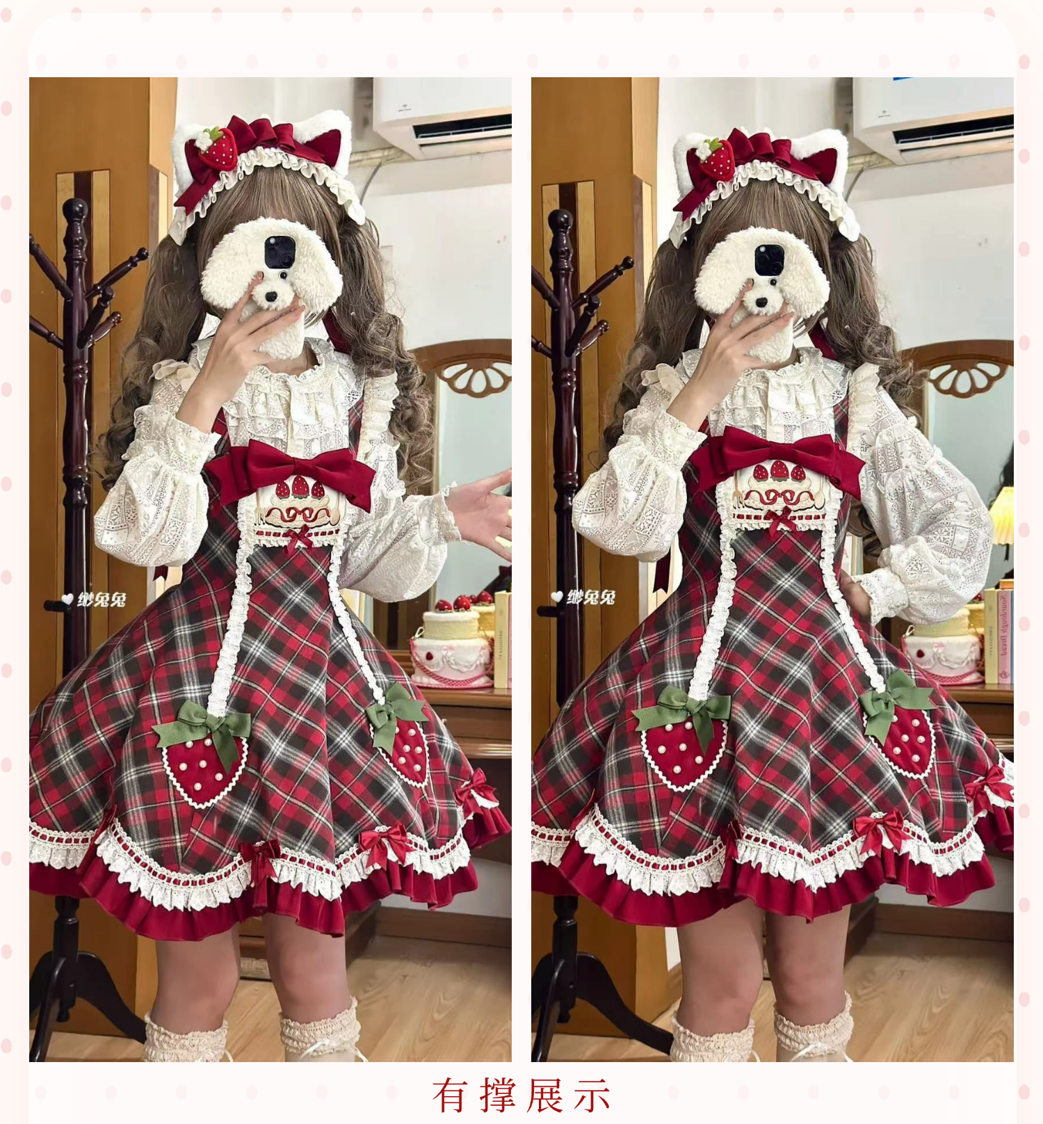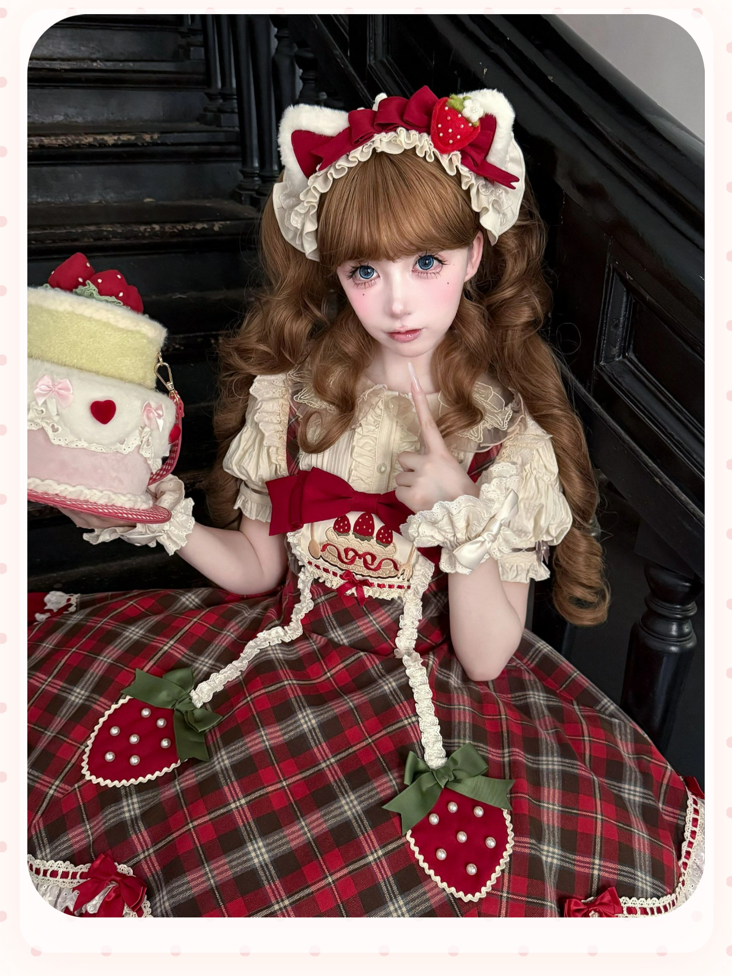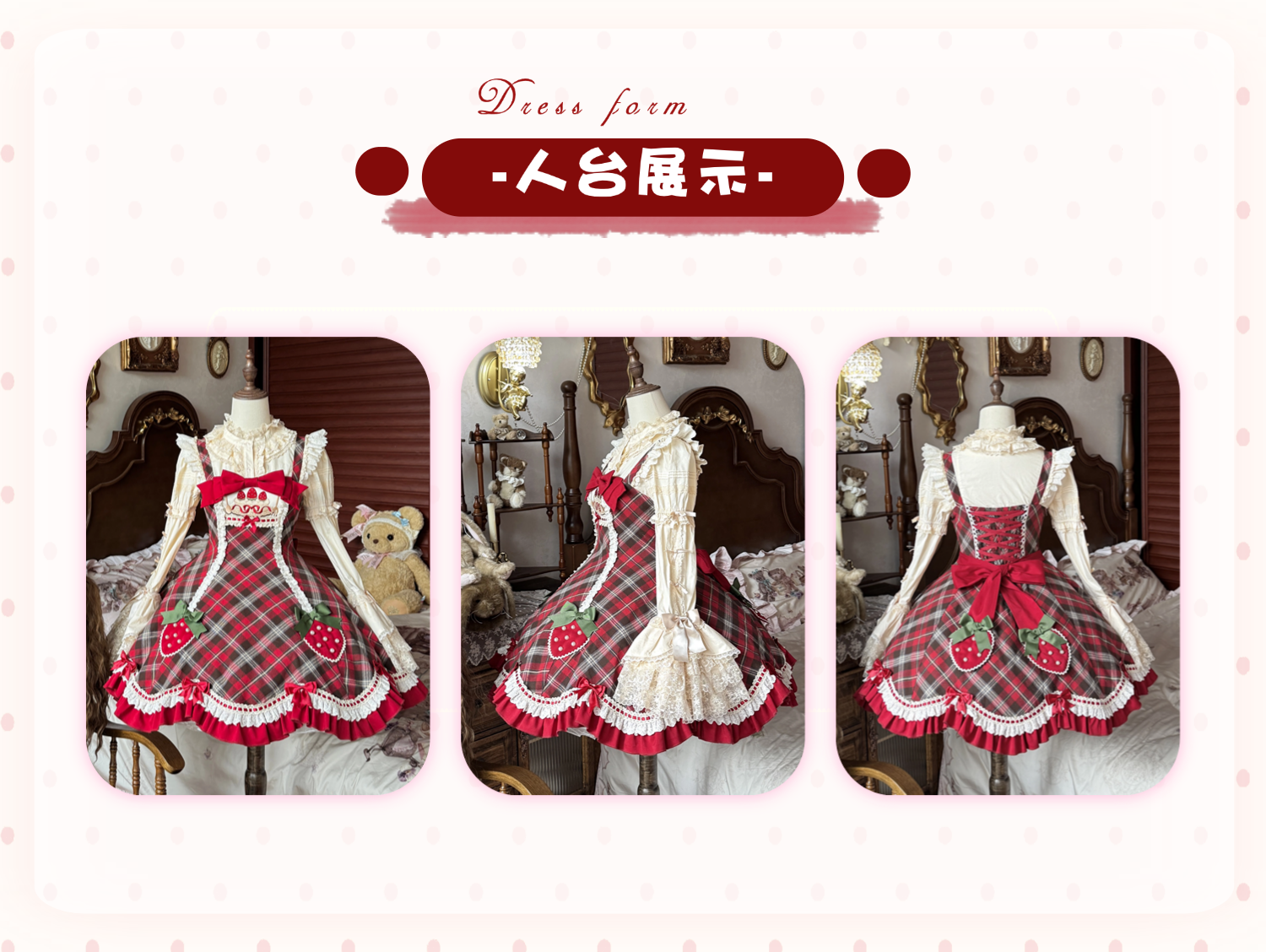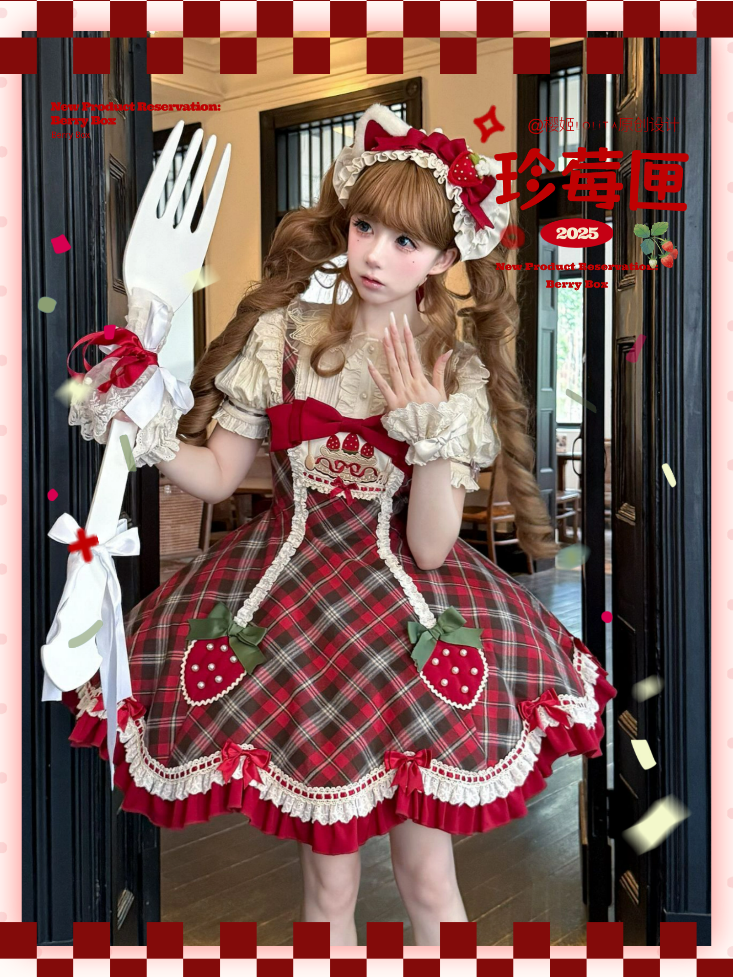 定金】珍莓匣 樱姬lolita原创设计 格纹草莓钉珠片裁设计lolita [Original Page Link]